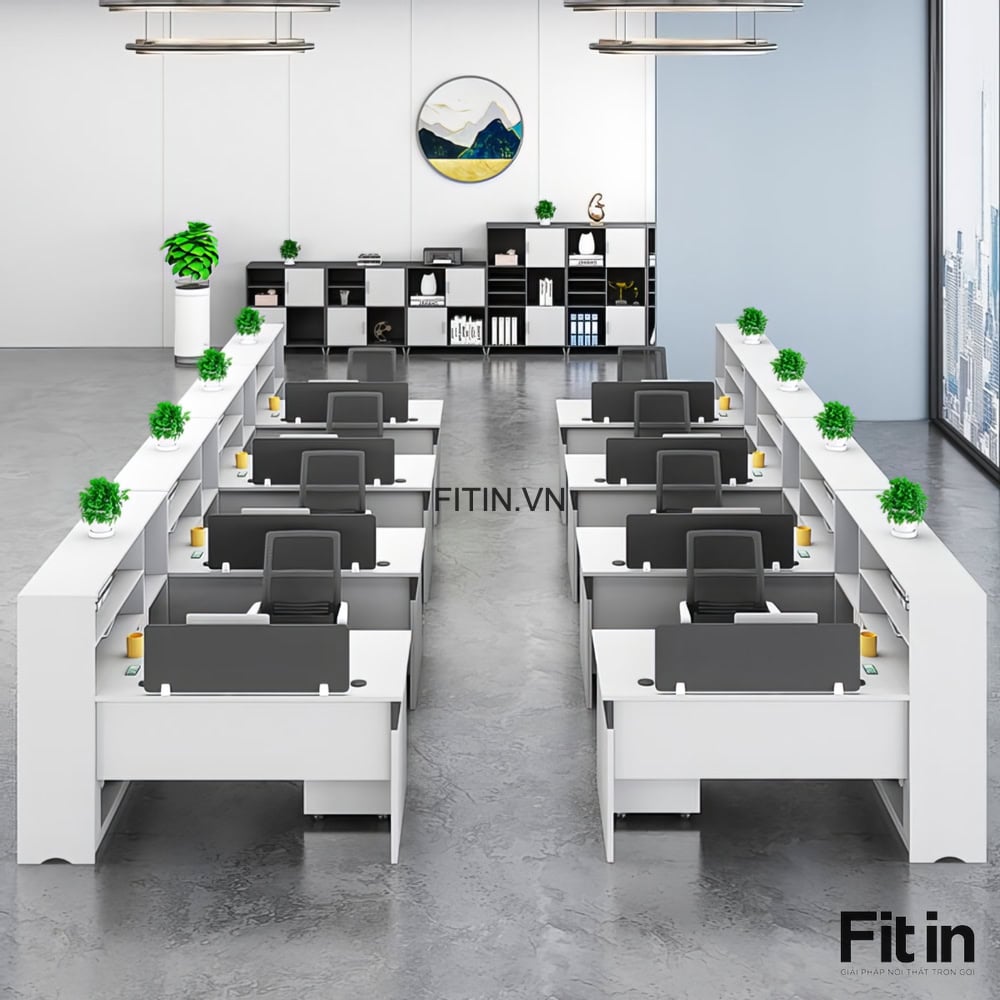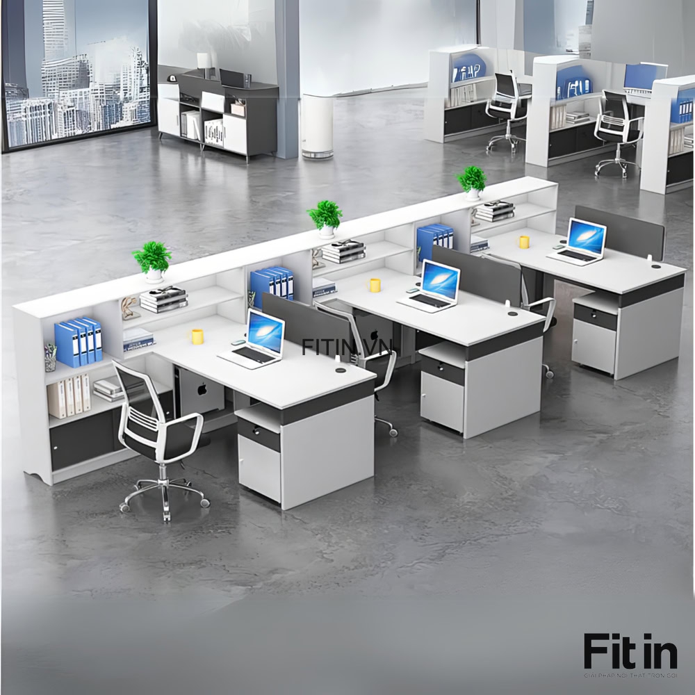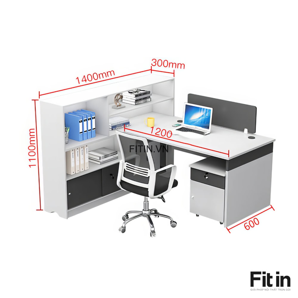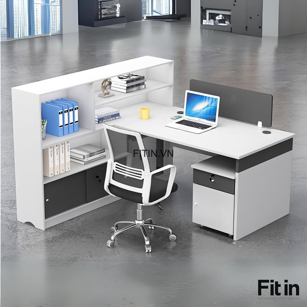 Bàn Gỗ Làm Việc Văn Phòng Liền Tủ Để Tài Liệu Gỗ MDF