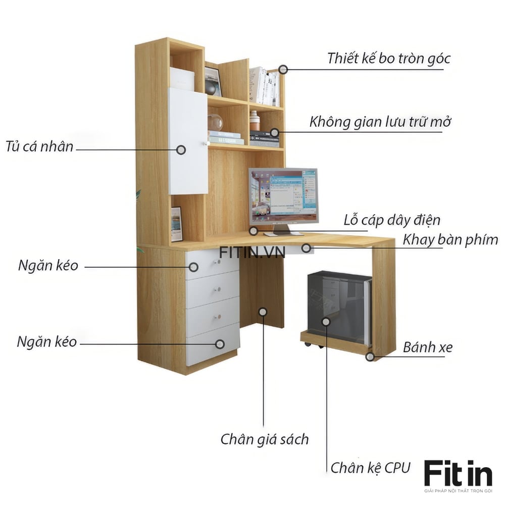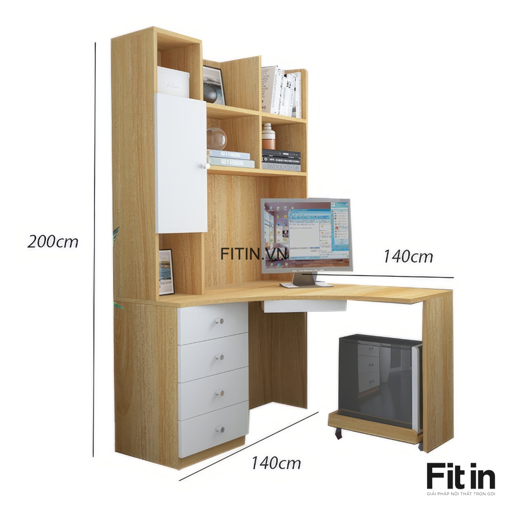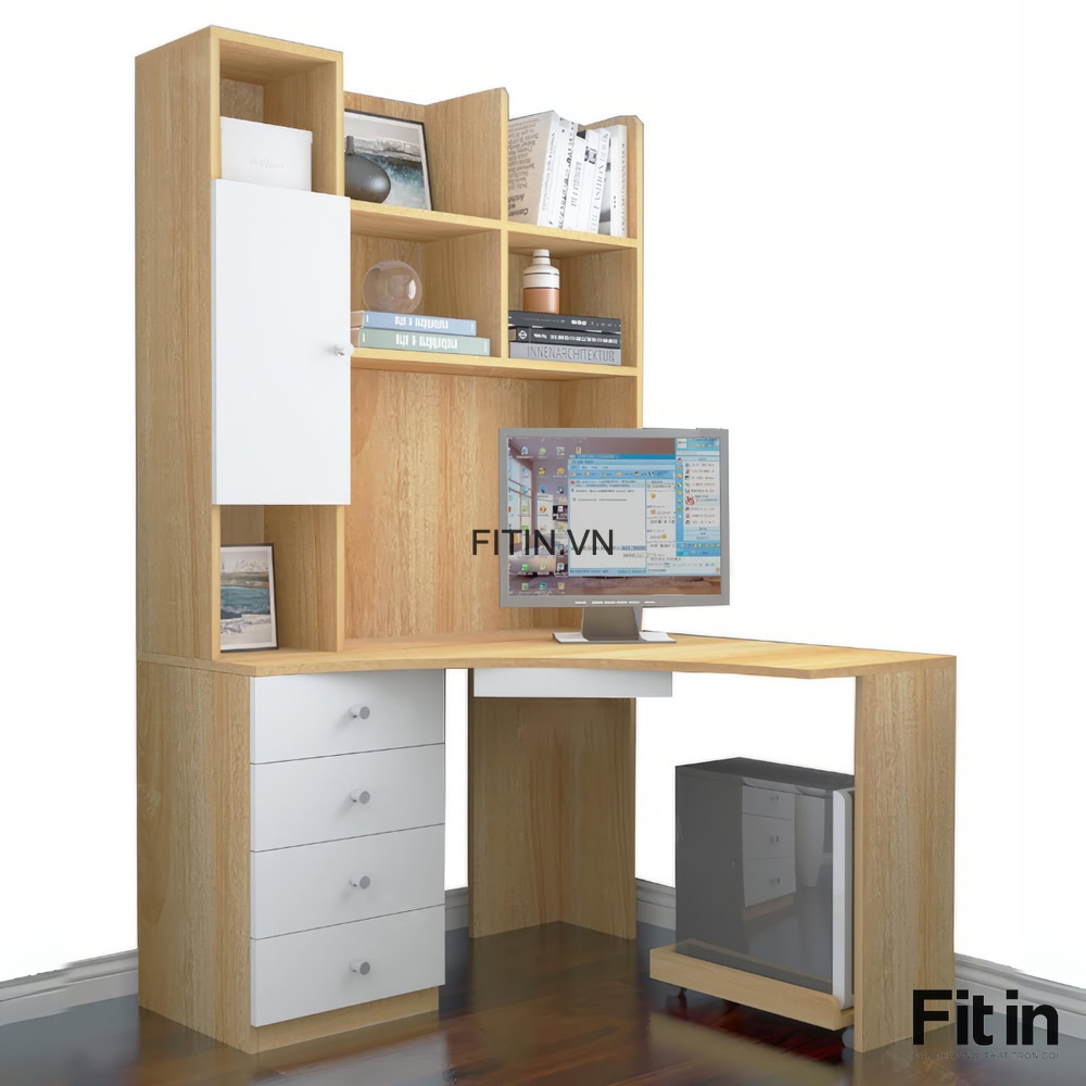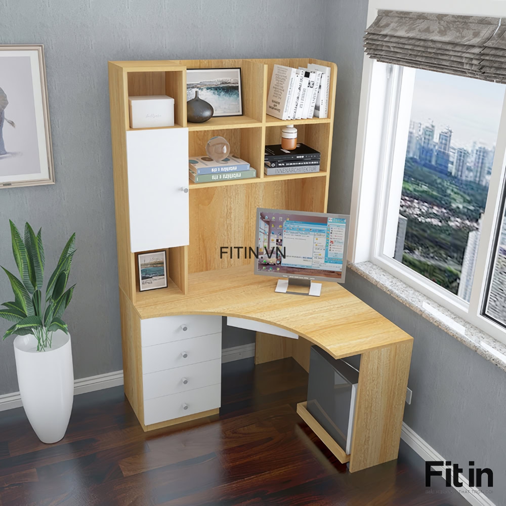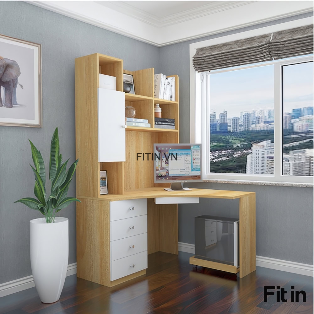 Bàn Hình Chữ L Làm Việc Góc Tường Gỗ Công Nghiệp Tối Ưu