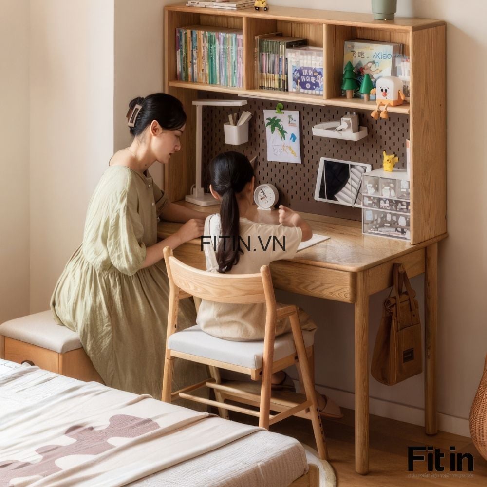 Bàn Học Sinh Gỗ Tự Nhiên Vân Gỗ Rõ Nét Tích Hợp Học Kéo Tiện Ích