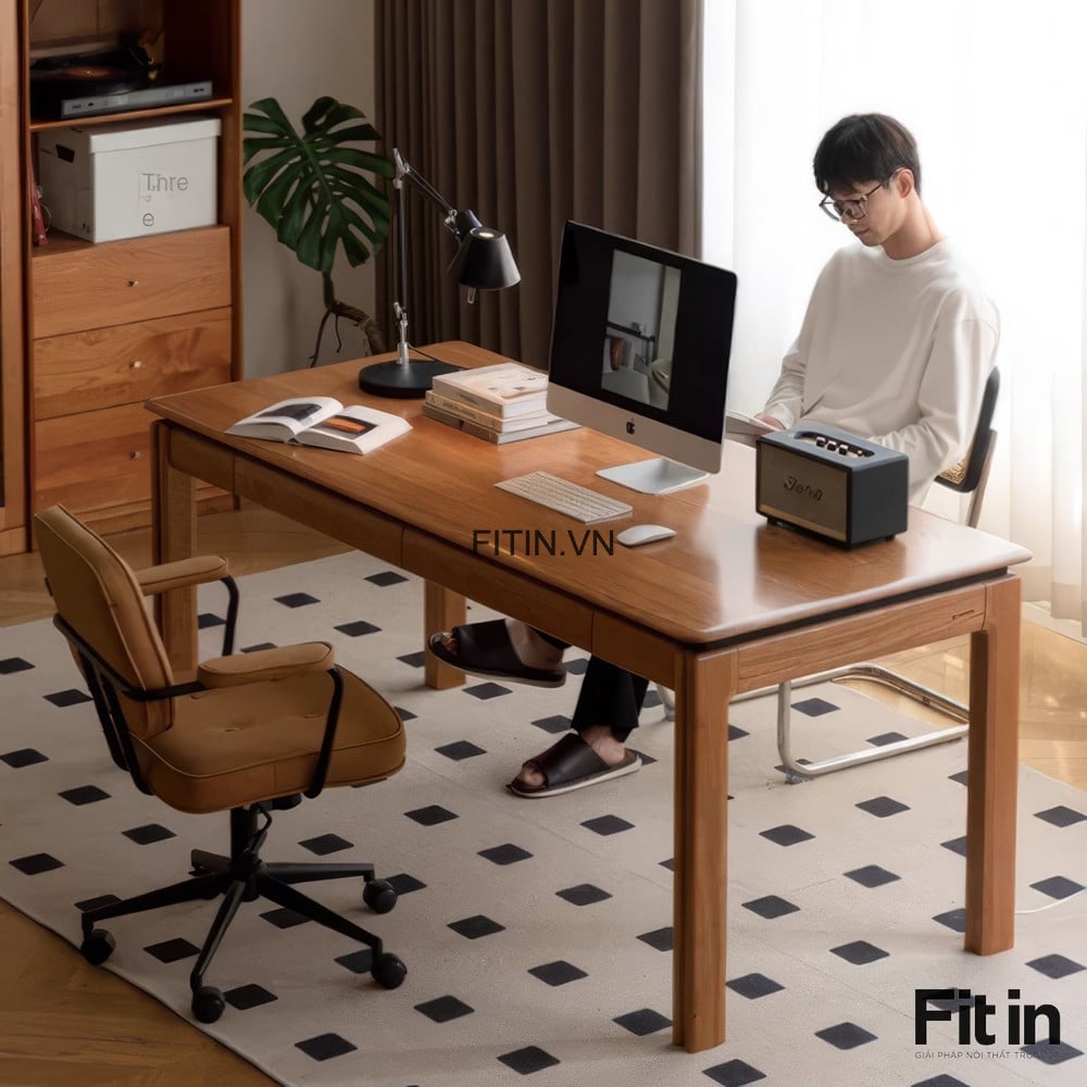 Bàn Làm Việc 2 Người Gỗ Sồi Tự Nhiên Phong Cách Tối Giản