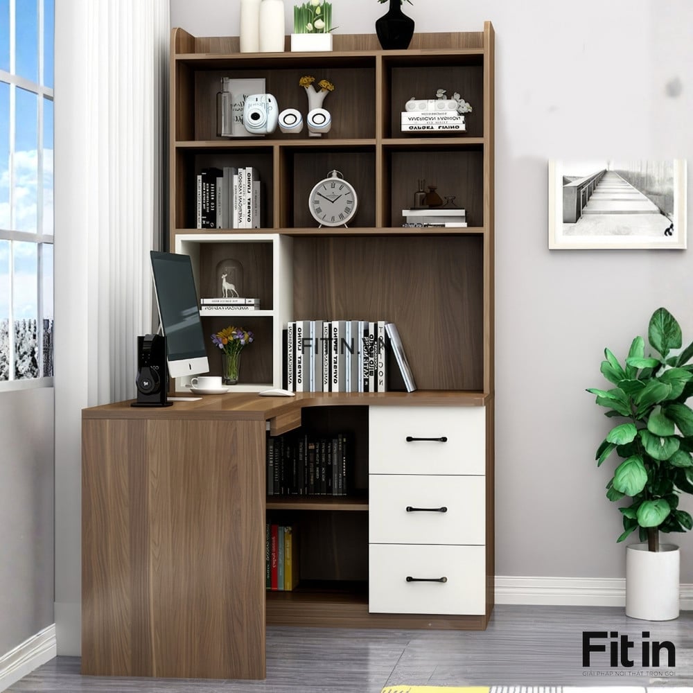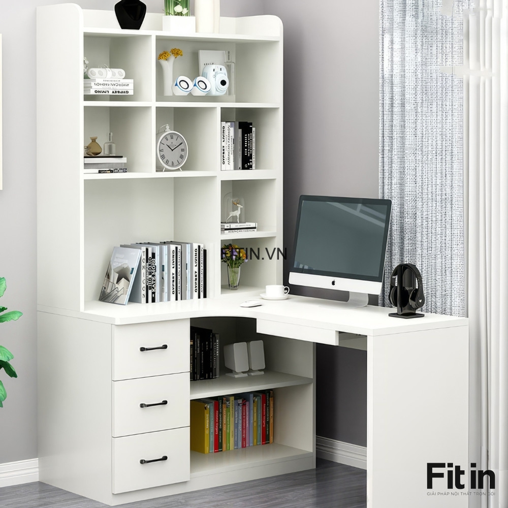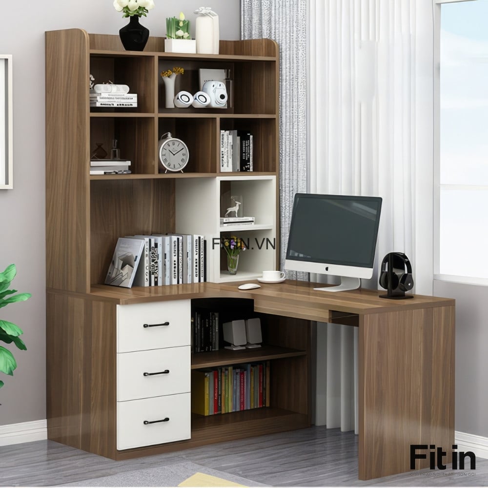 Bàn Làm Việc Chữ L Kèm Giá Sách Gỗ Công Nghiệp Tối Ưu