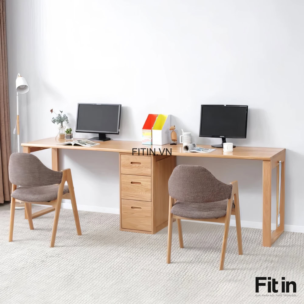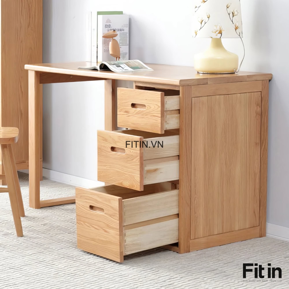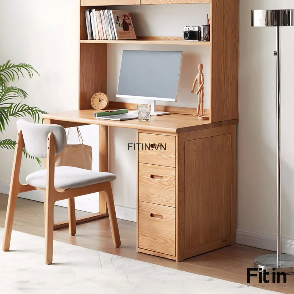 Bàn Làm Việc Có Hộc Tủ Và Kệ Sách Gỗ Sồi Tự Nhiên Tiện Ích