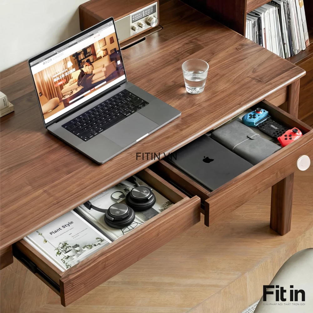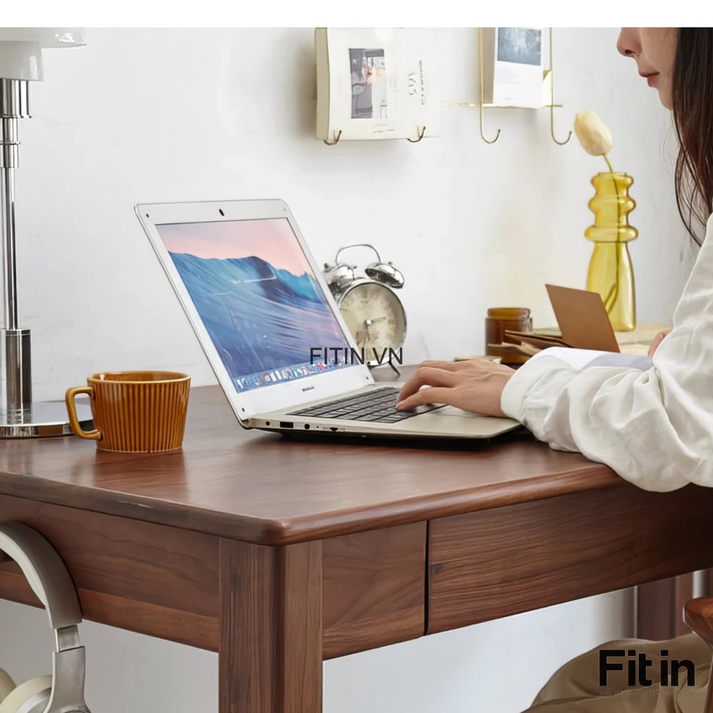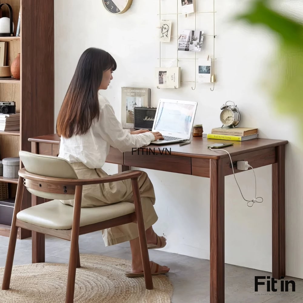 Bàn Làm Việc Đơn Giản Gỗ Sồi Có Ngăn Kéo Để Đồ Hiện Đại