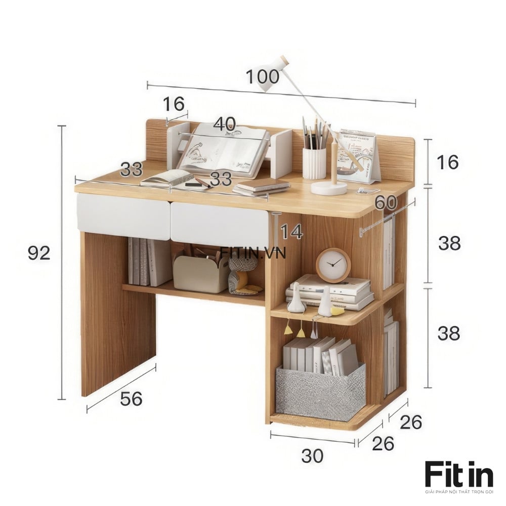 Bàn Làm Việc Gỗ Ép Công Nghiệp Kèm Kệ Để Sách Vở Tiện Ích