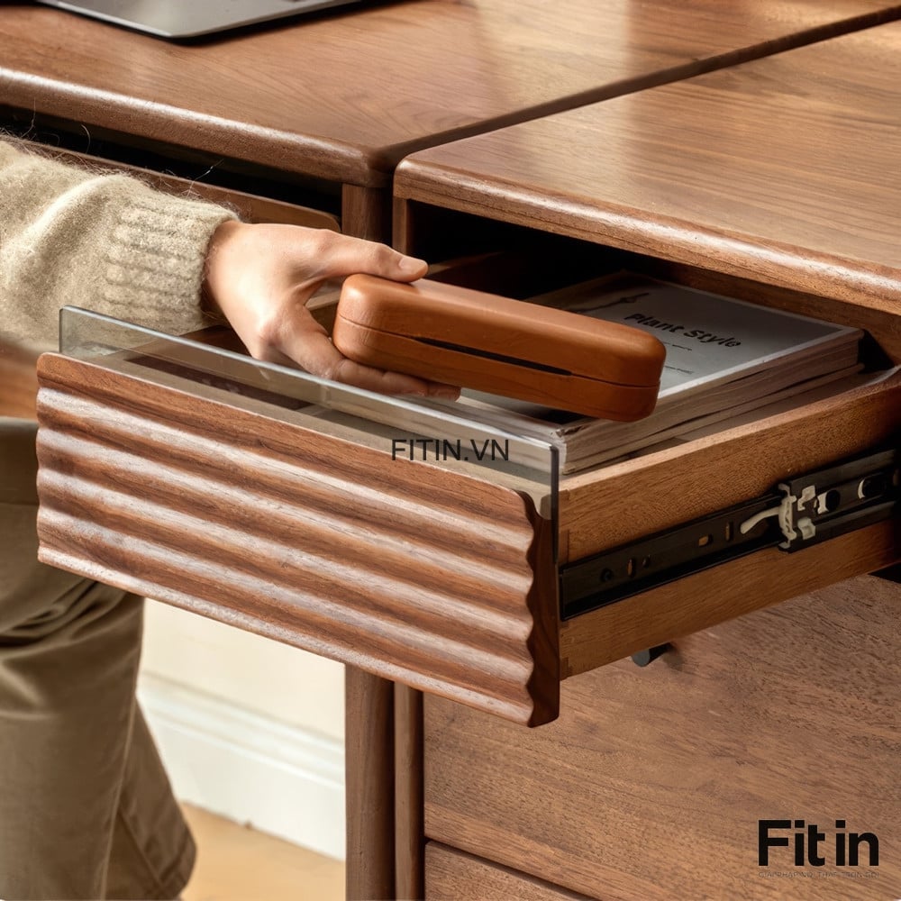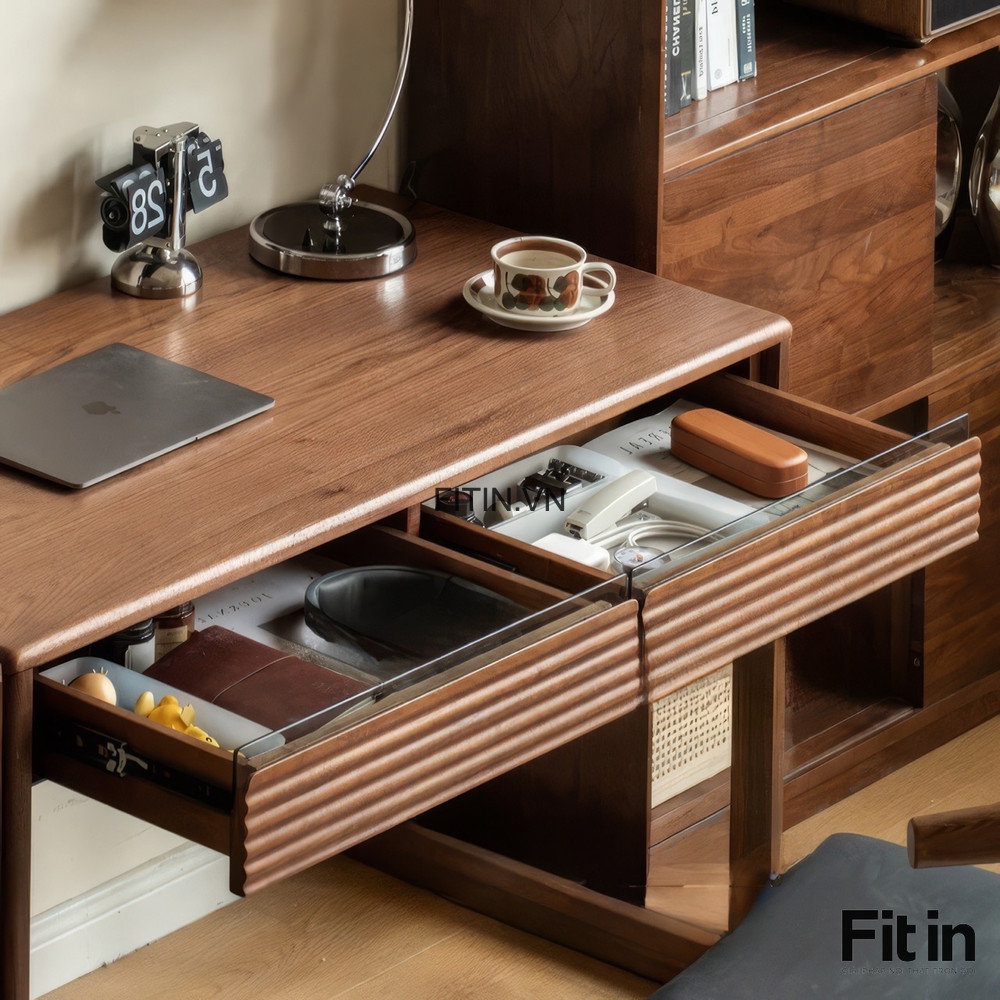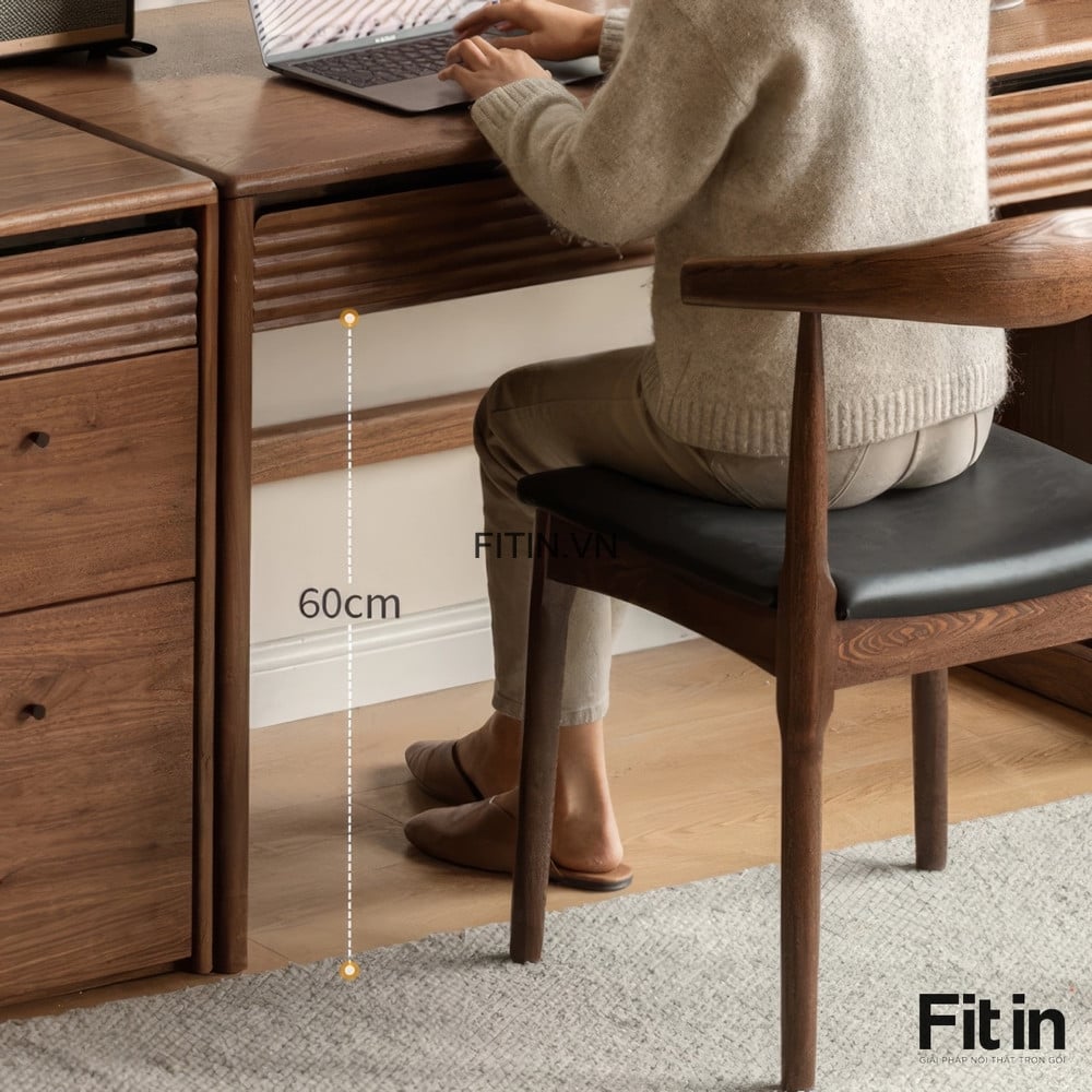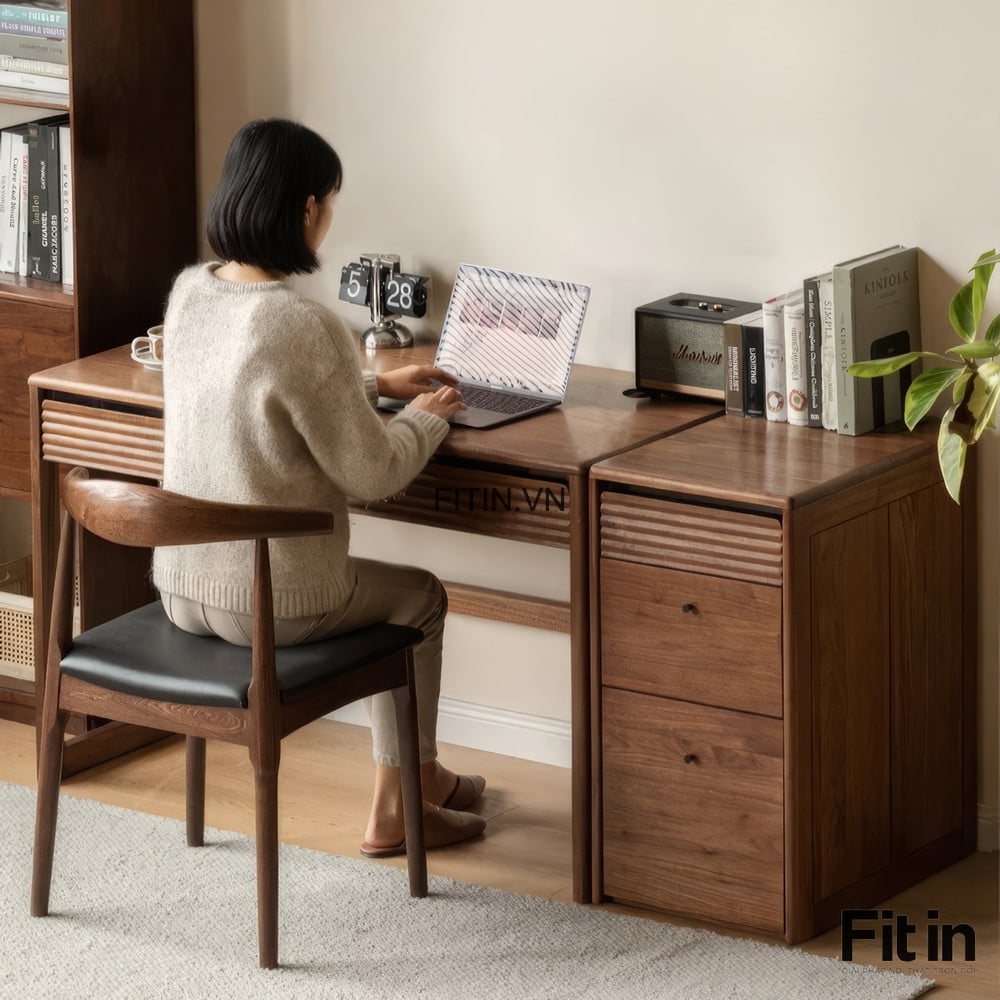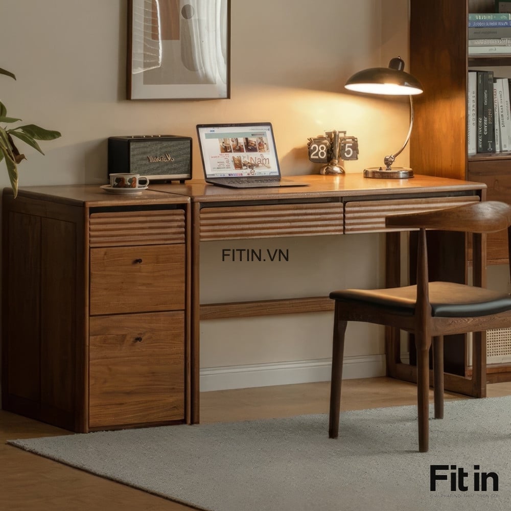 Bàn Làm Việc Gỗ Thịt Kèm Tủ Để Đồ Phong Cách Bắc Âu
