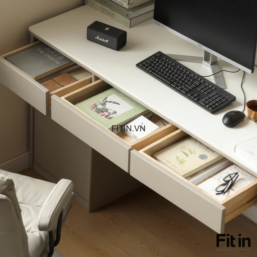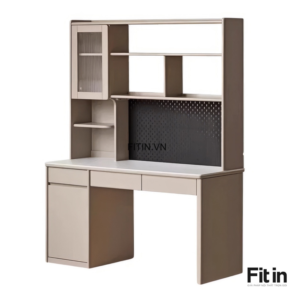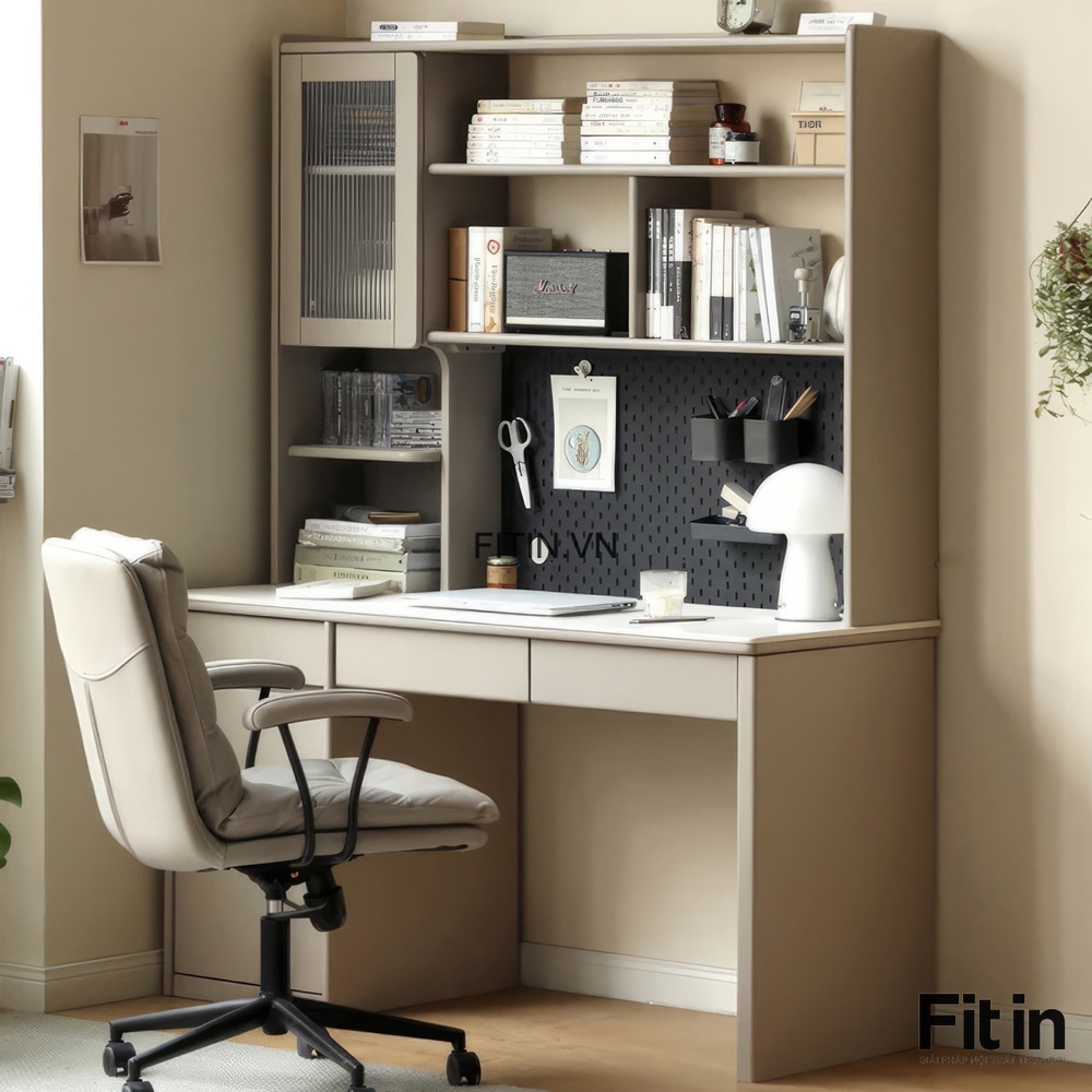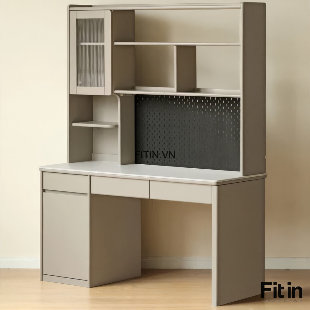 Bàn Làm Việc Gỗ Tự Nhiên Cao Cấp Kèm Giá Sách Sơn Màu Xám