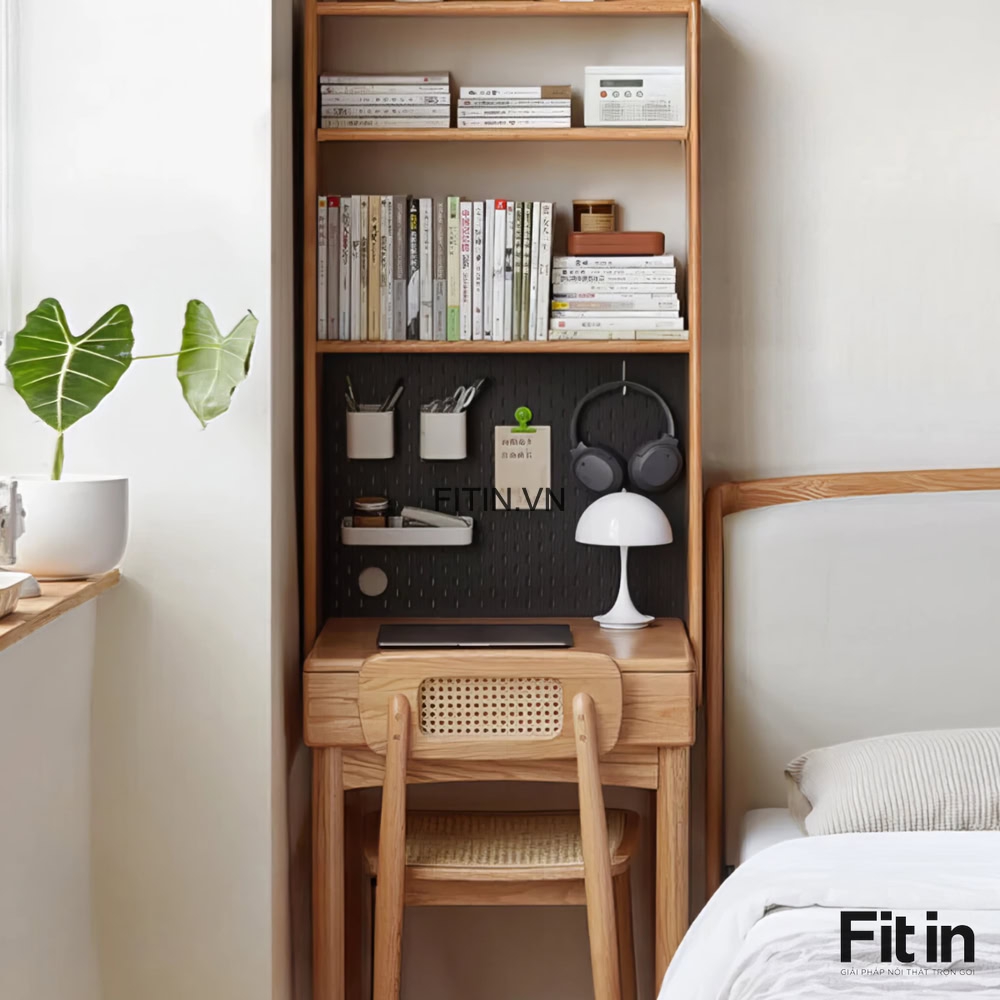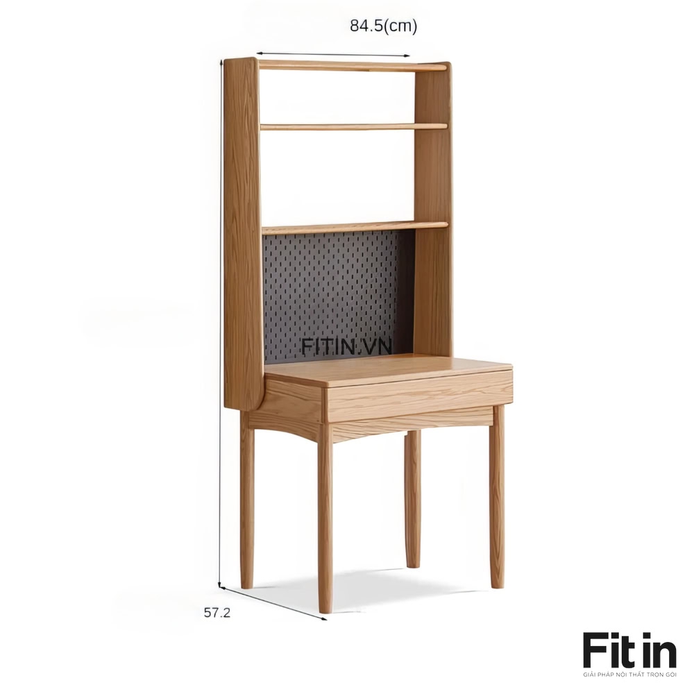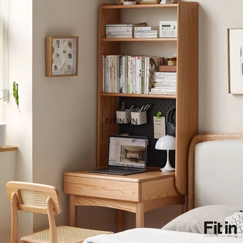 Bàn Làm Việc Góc Tường Nhỏ Gọn Kết Hợp Kệ Sách Gỗ Sồi