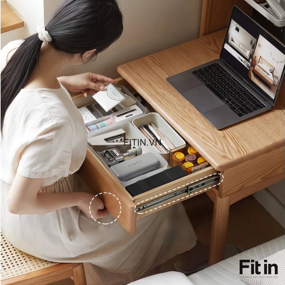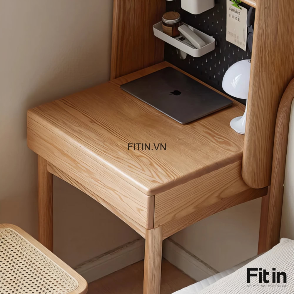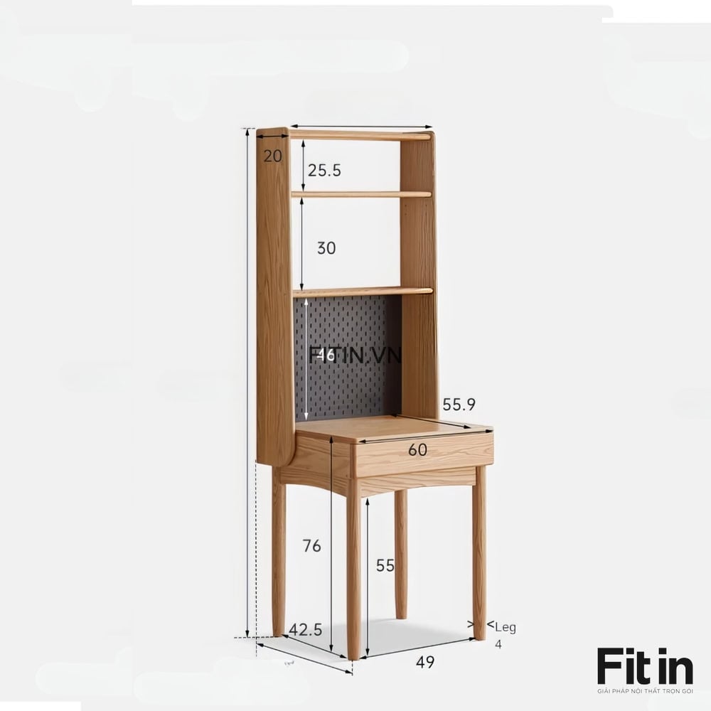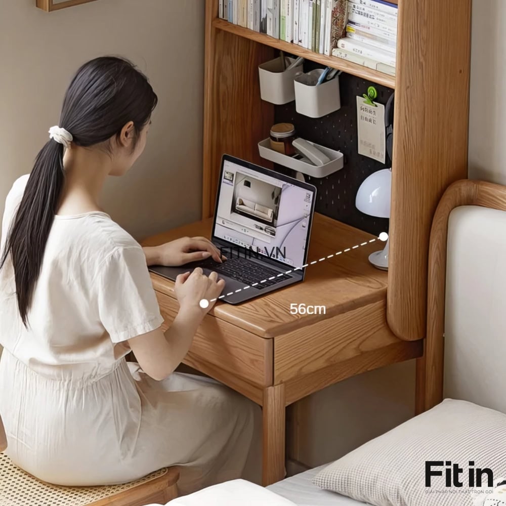 Bàn Làm Việc Góc Tường Nhỏ Gọn Kết Hợp Kệ Sách Gỗ Sồi