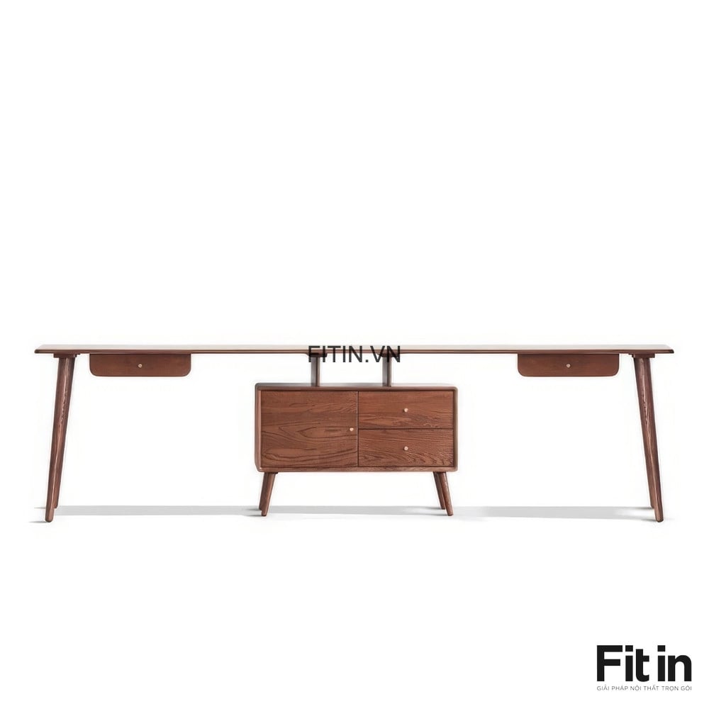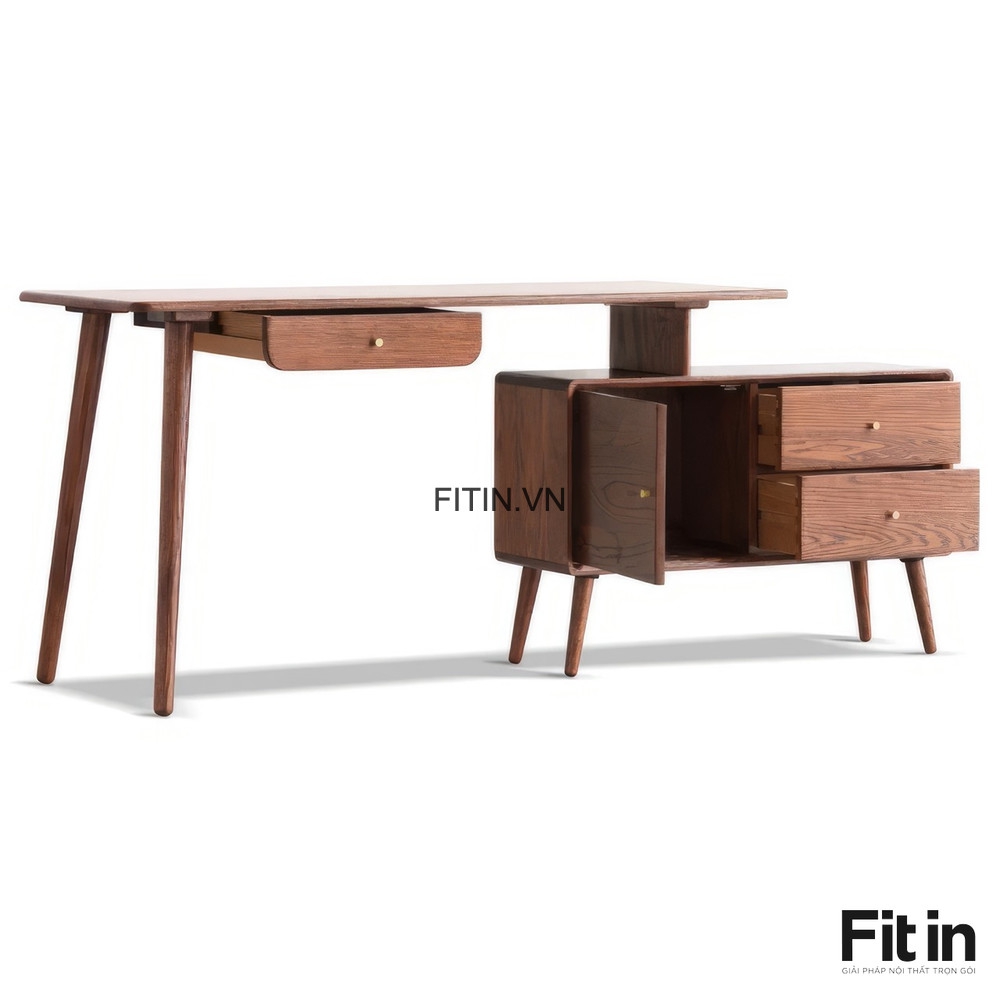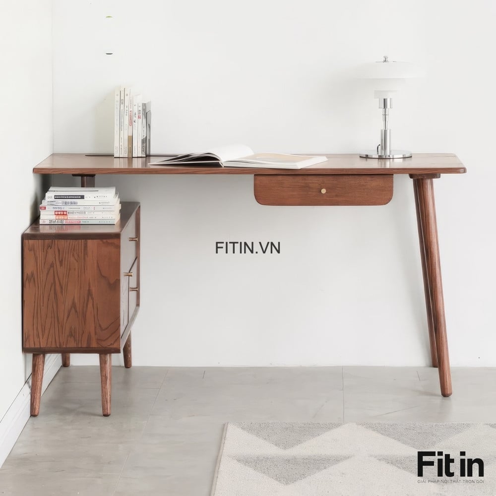 Bàn Làm Việc Máy Tính Kèm Tủ Để Đồ Gỗ Sồi Hiện Đại