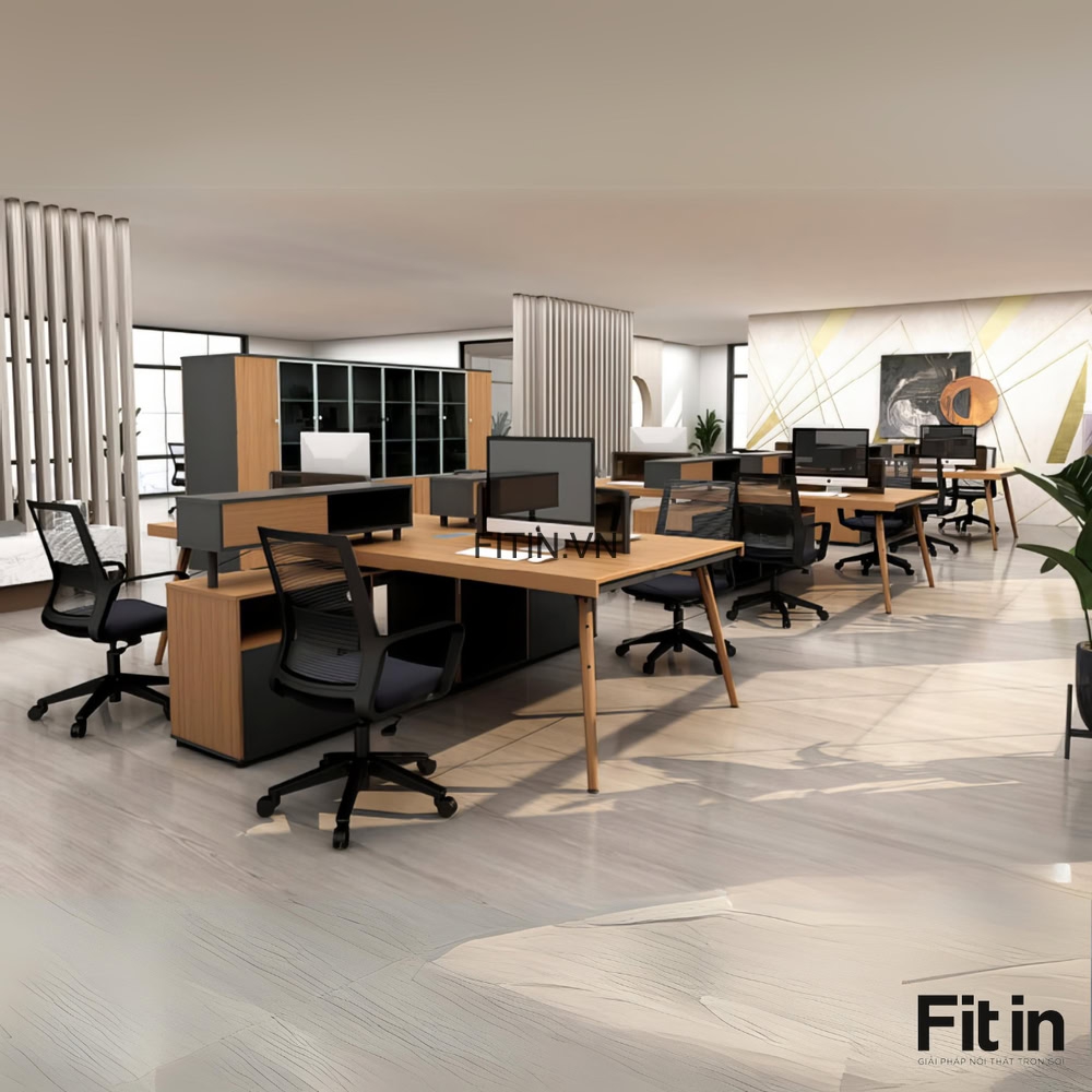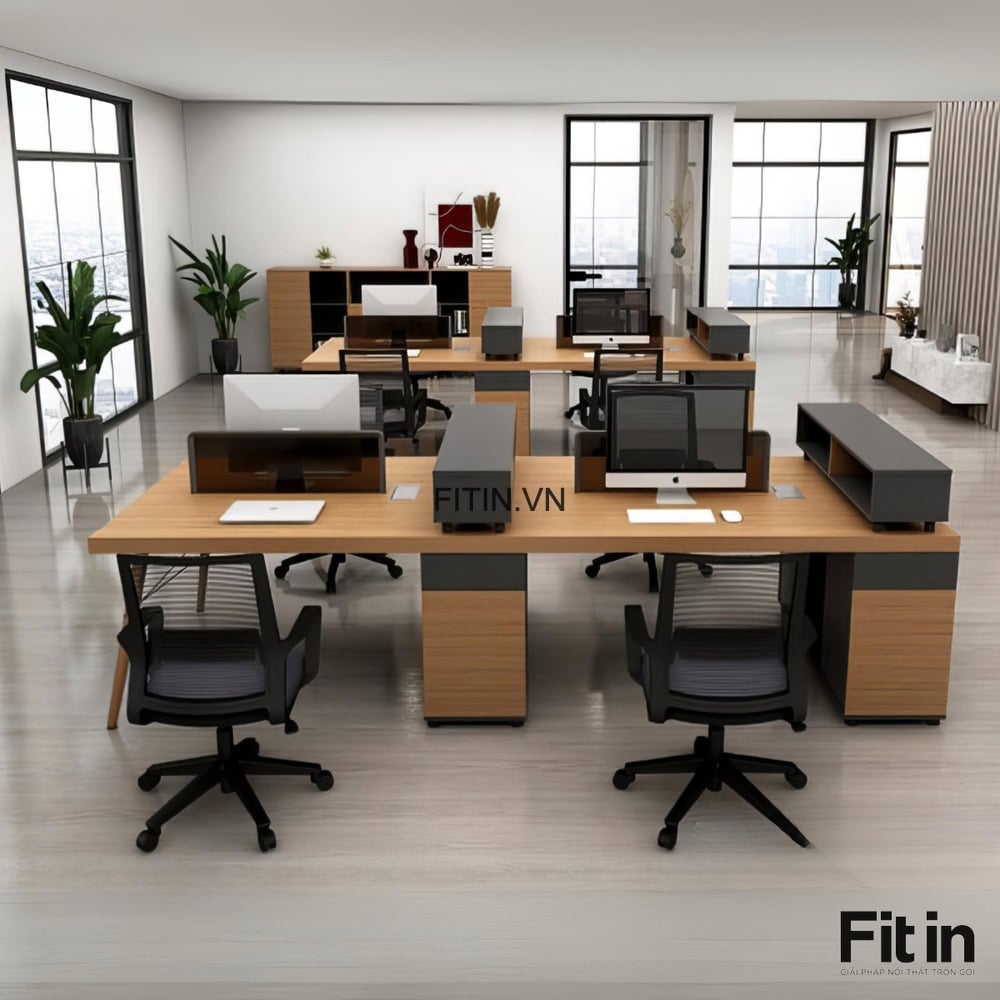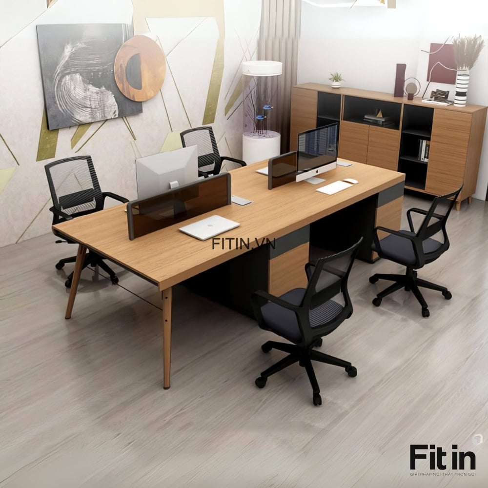 Bàn Làm Việc Nhóm Văn Phòng Gỗ Công Nghiệp Kèm Tủ Đồ