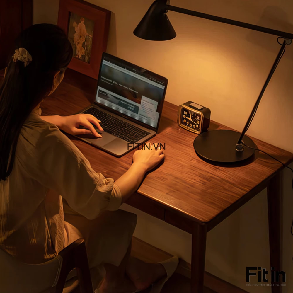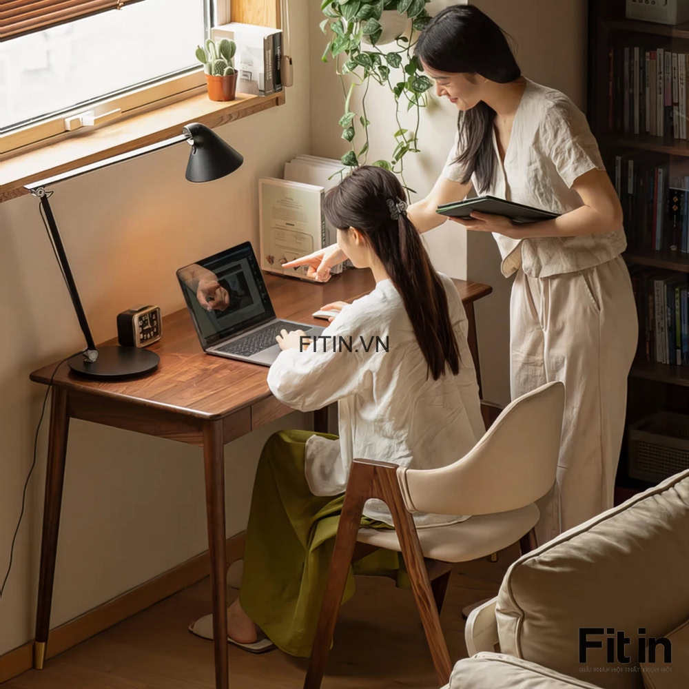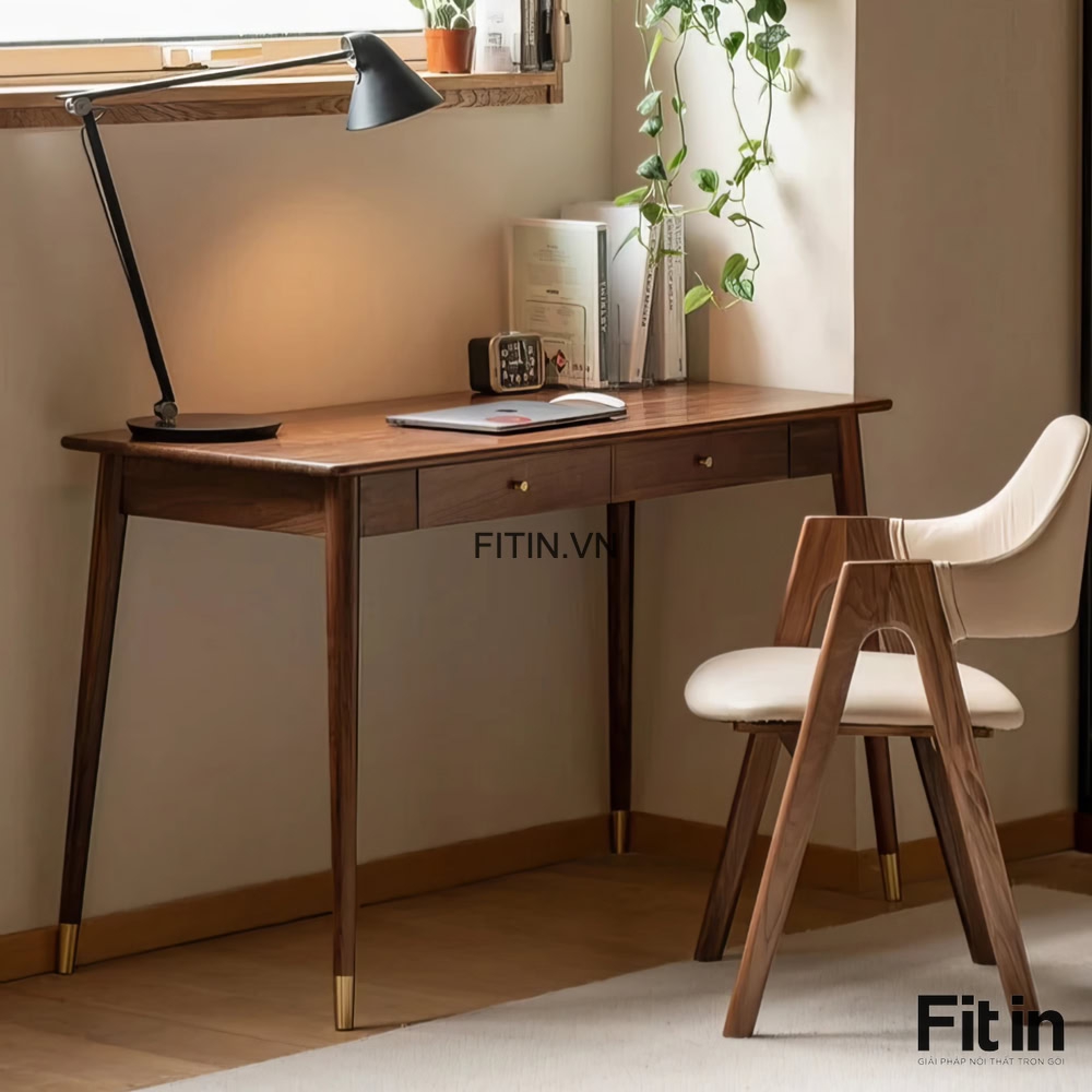 Bàn Làm Việc Phòng Ngủ Gỗ Sồi Sơn Màu Óc Chó Nhỏ Gọn