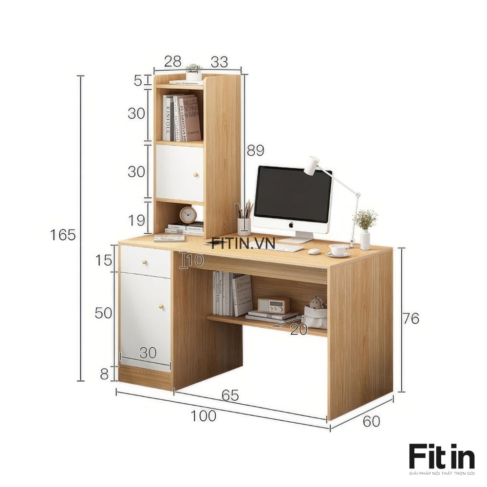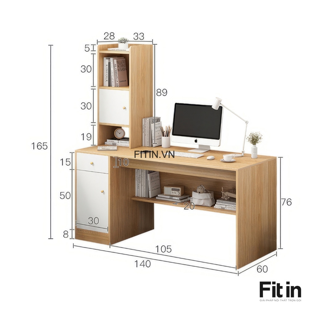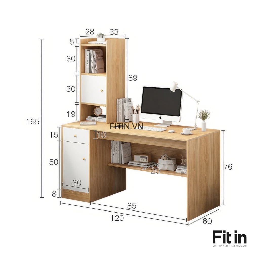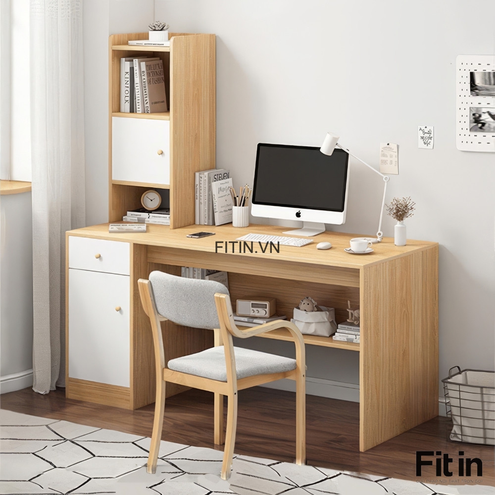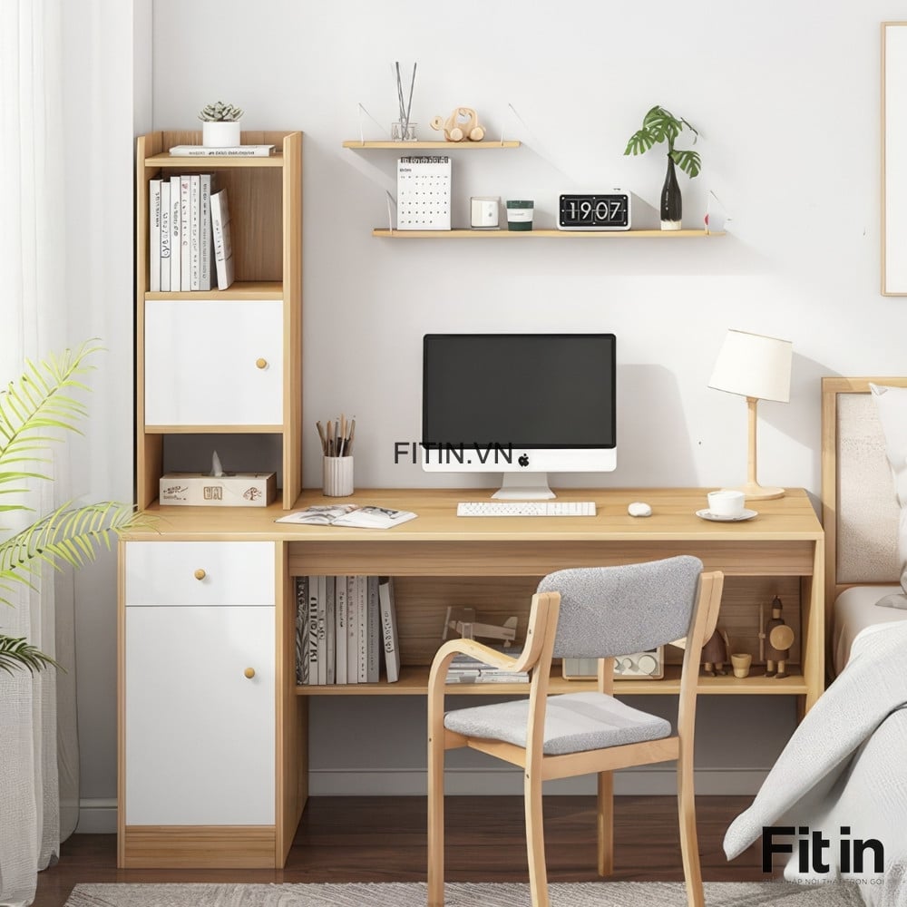 Bàn Làm Việc Tại Nhà Hiện Đại Gỗ MDF Liền Tủ Để Đồ Và Kệ Sách