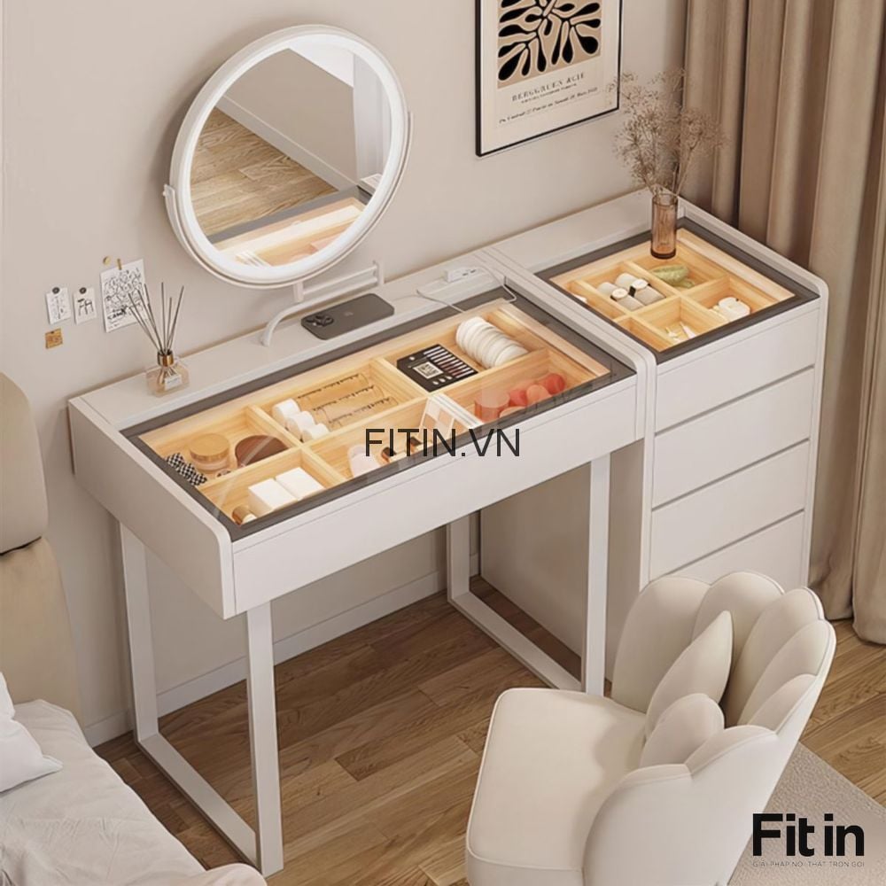 Bàn Trang Điểm Bằng Gỗ Đẹp Cao Cấp Kết Hợp Đèn Led Sang Trọng