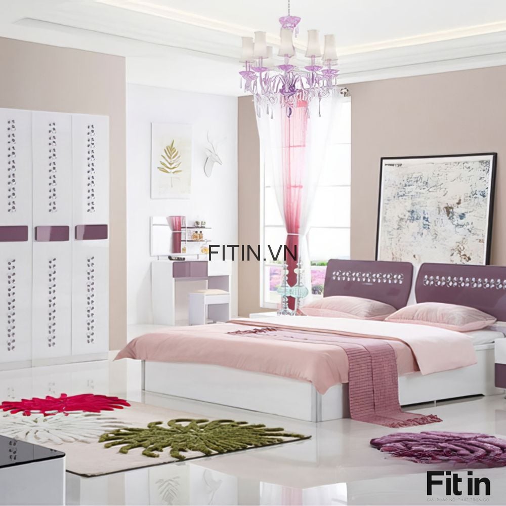 Bàn Trang Điểm Màu Trắng Phối Tím Đẹp Thanh Lịch Hiện Đại