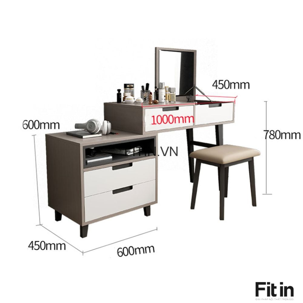 Bàn trang điểm: 100 x 45 x 75m