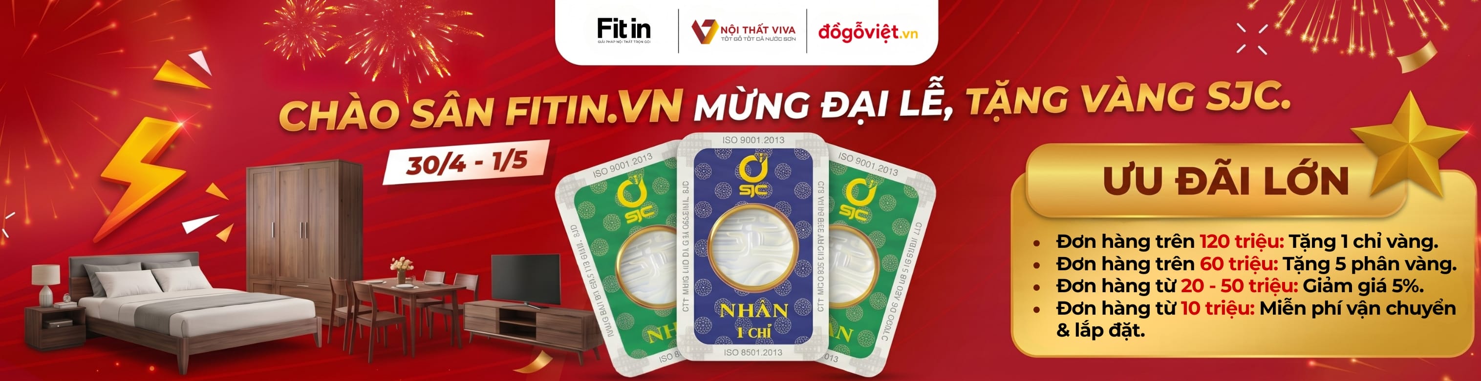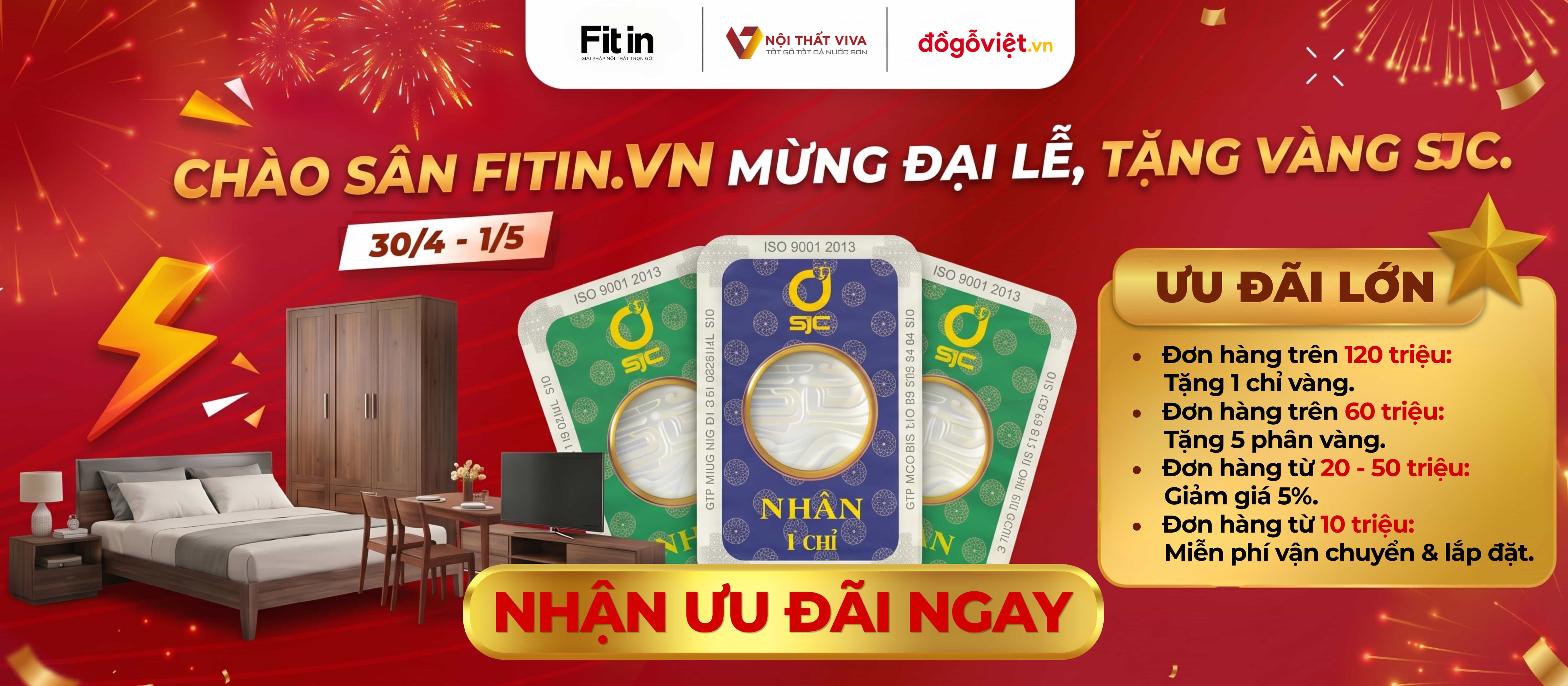 Nhân dịp kỷ niệm Ngày Giải phóng miền Nam 30/4 và Quốc tế Lao động 1/5, Nội thất Viva triển khai chương trình khuyến mãi "Chào sân Fitin.vn - Mừng đại lễ, tặng vàng SJC". Đây chính là “thời điểm vàng” để bạn mua sắm và đặt gia công nội thất chất lượng với mức giá tốt nhất trong năm.