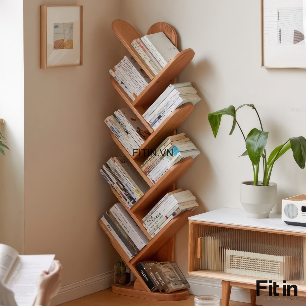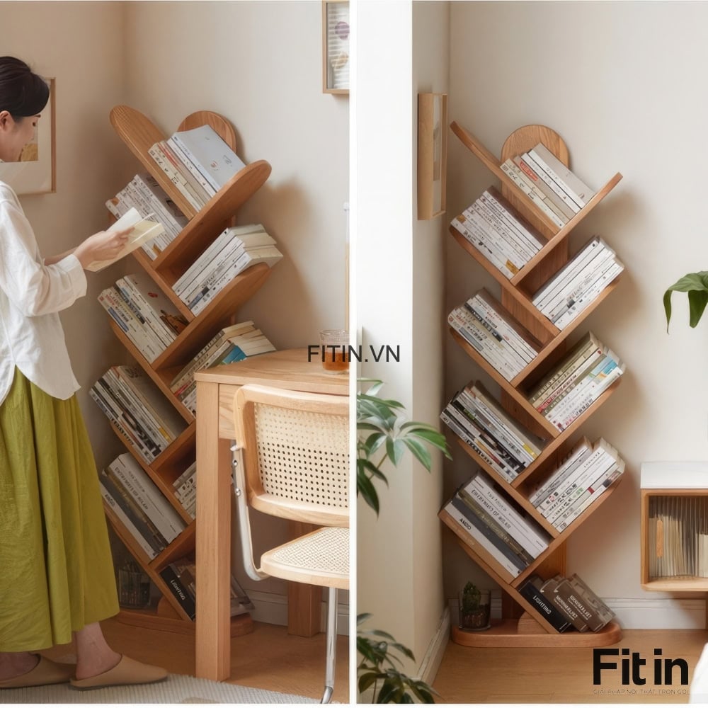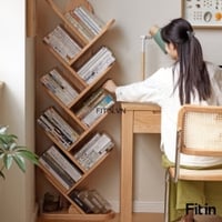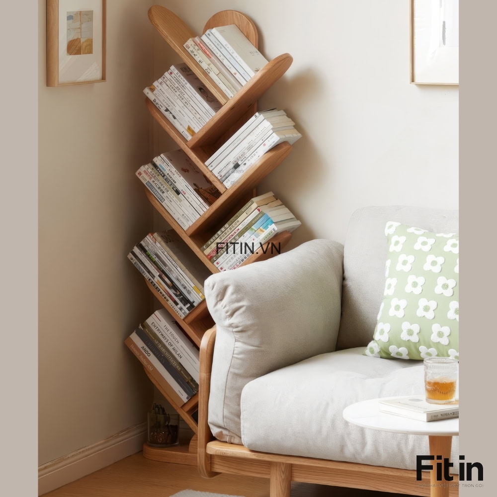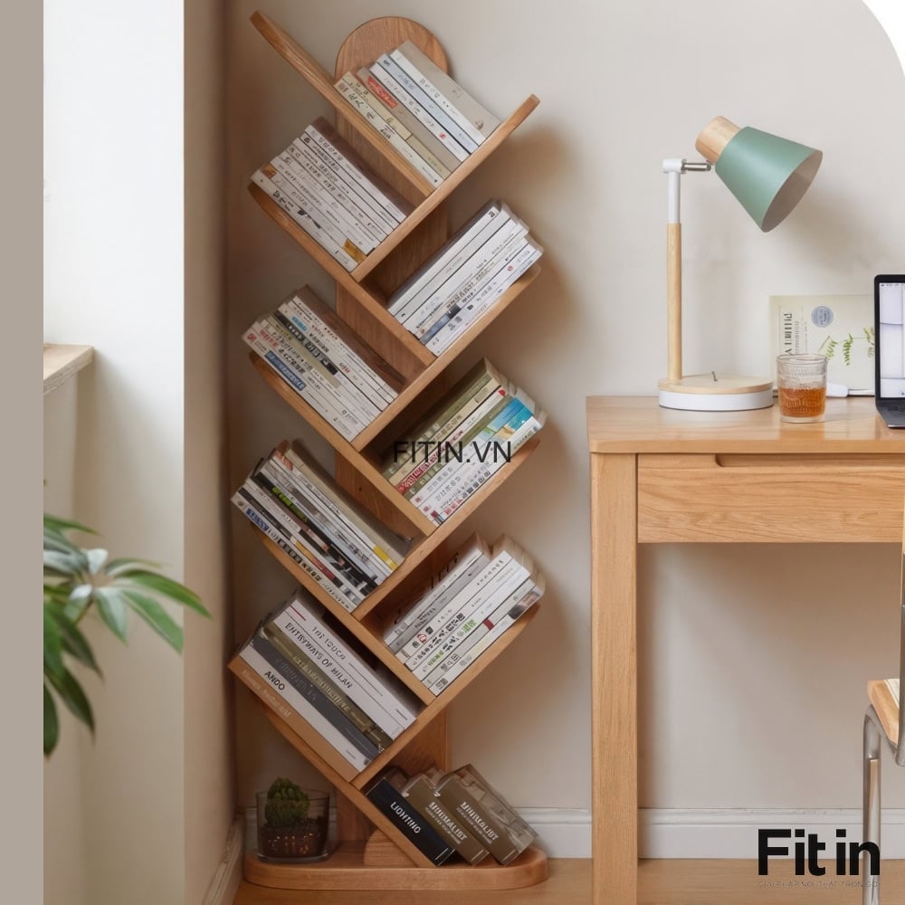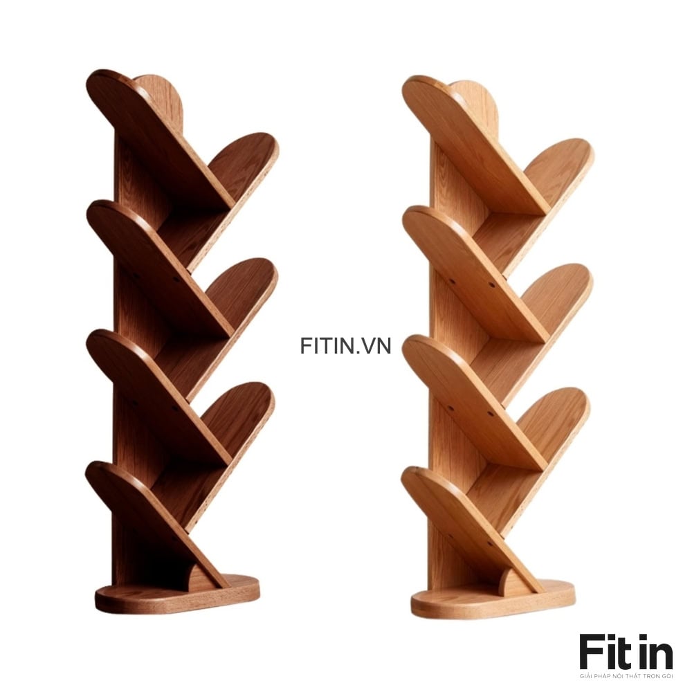 Giá Sách Đứng Hình Xương Cá Gỗ Sồi Tự Nhiên Hiện Đại