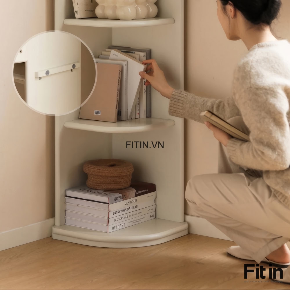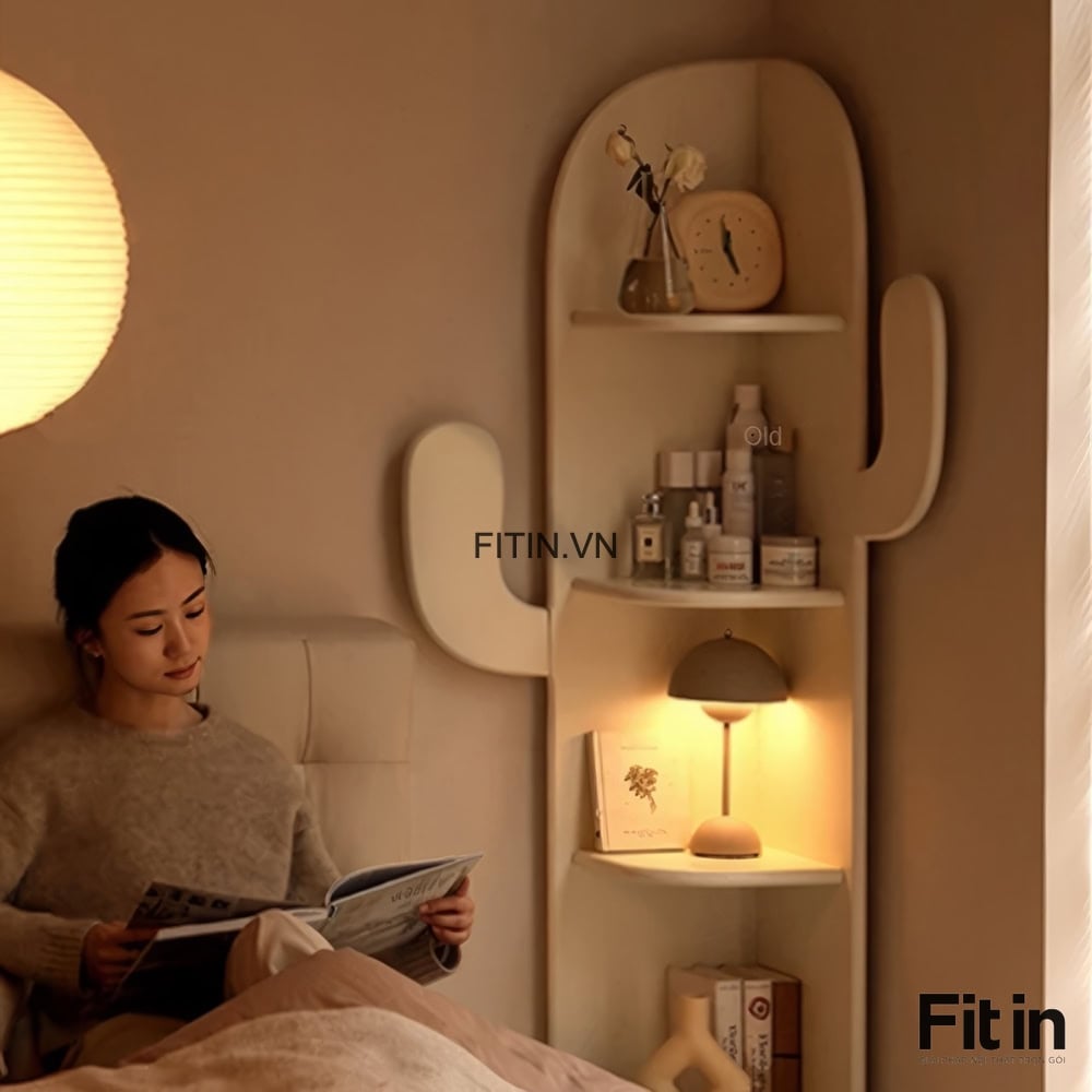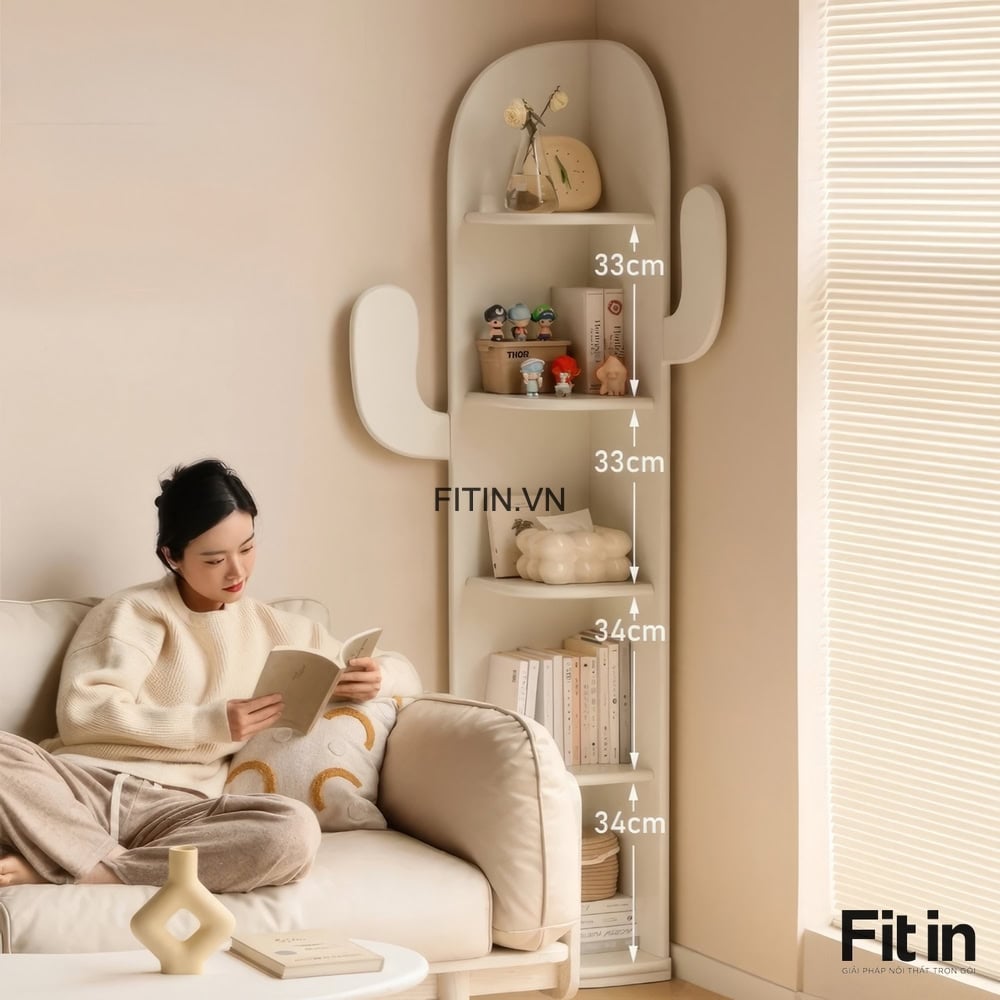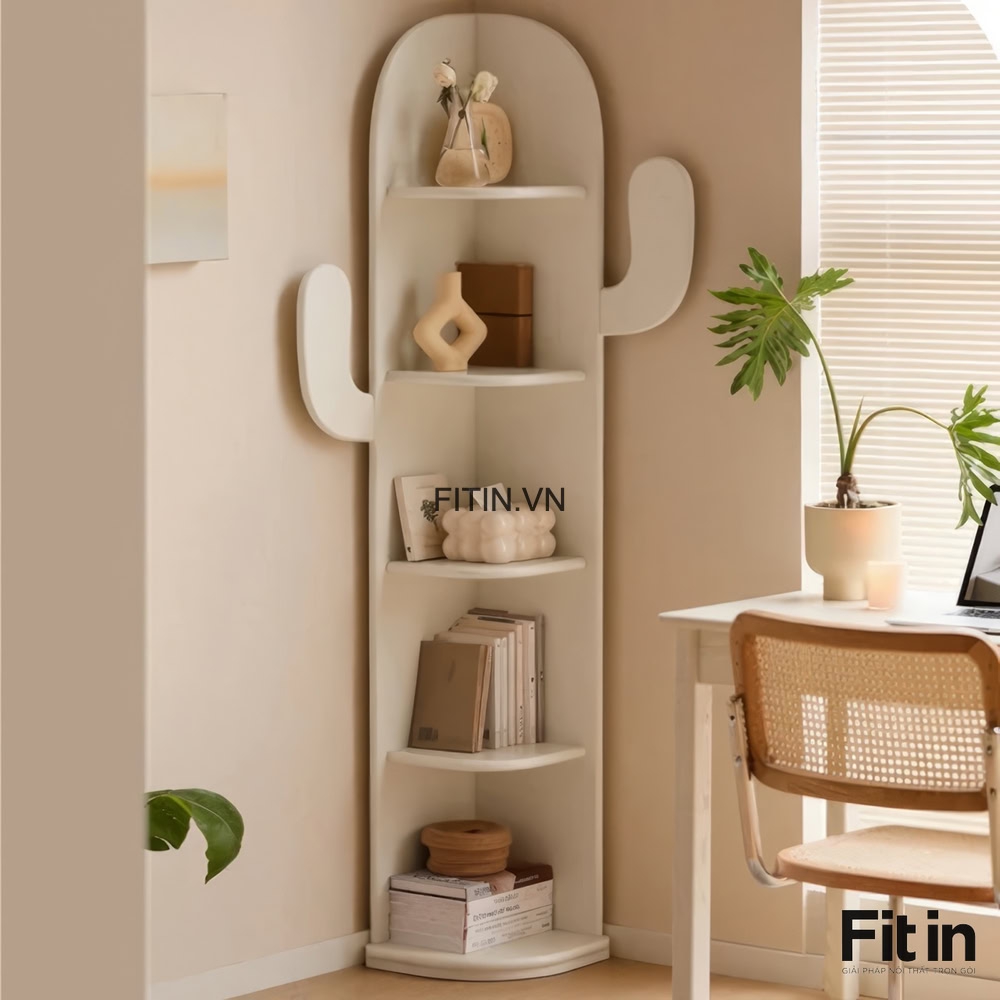 Giá Sách Hình Cây Đặt Góc Tường Gỗ Tự Nhiên Sơn Trắng