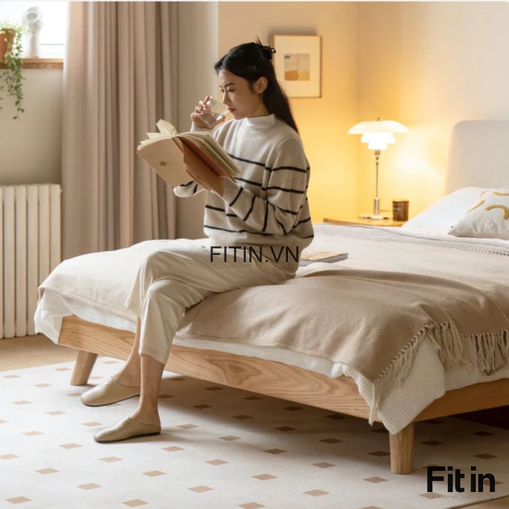 Giường Ngủ Gỗ Tự Nhiên Thiết Kế Chân Cao Tinh Tế