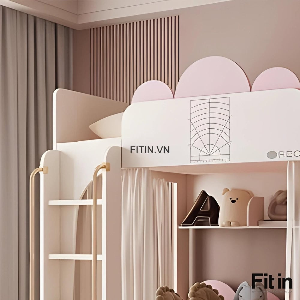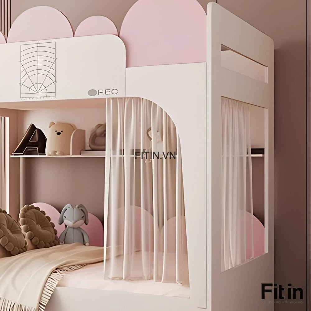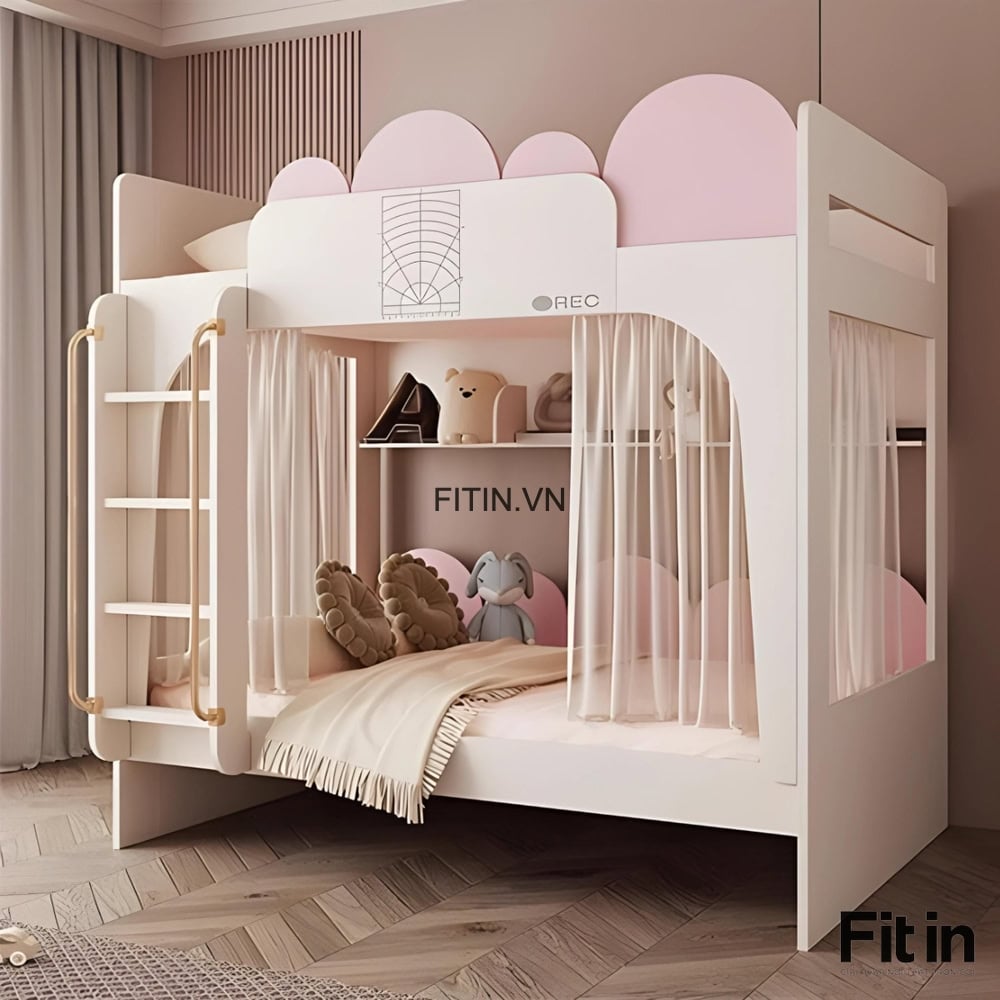 Giường Tầng Cho Bé Gái Gỗ Công Nghiệp Màu Hồng Đẹp Dễ Thương