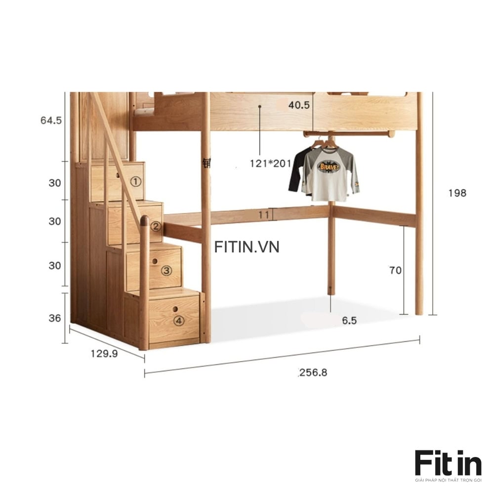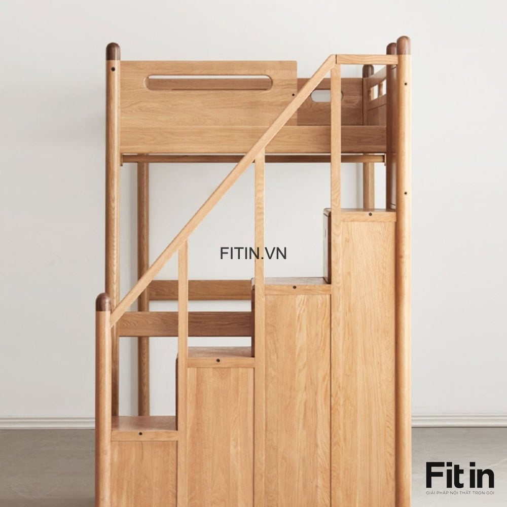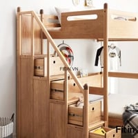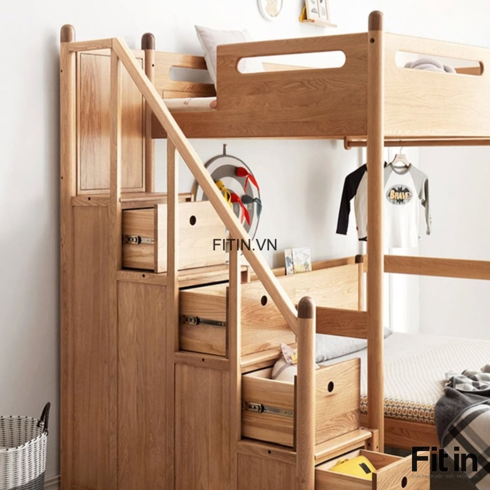 Giường Tầng Đẹp Kèm Bạn Học Cho Bé Gỗ Sồi Đẹp Hiện Đại