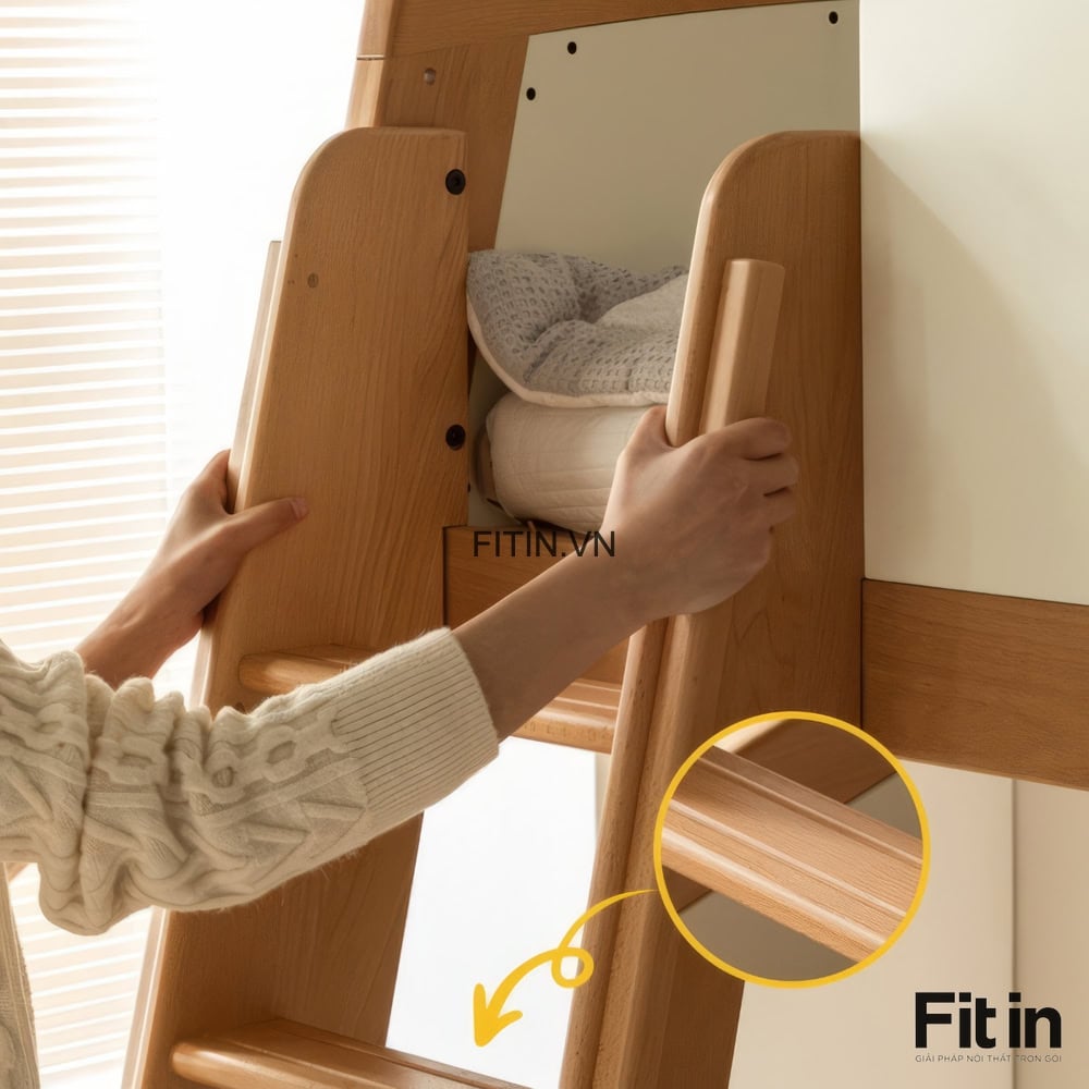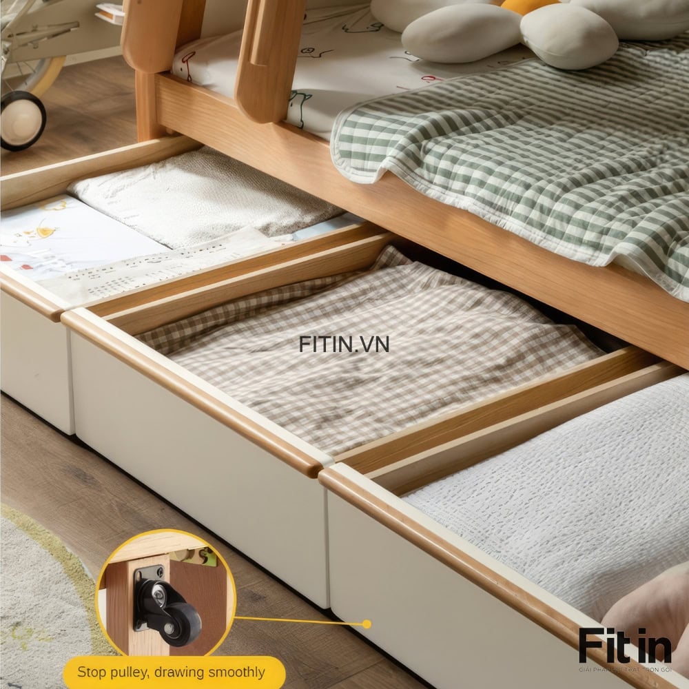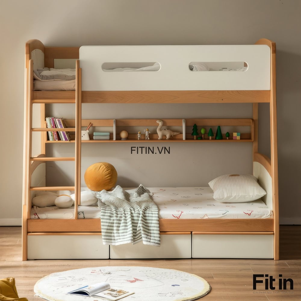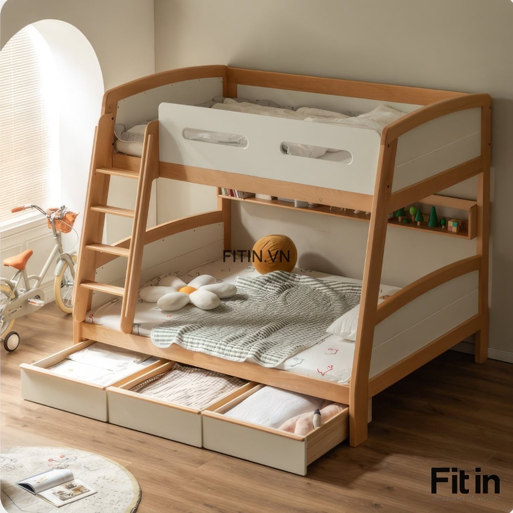 Giường Tầng Gỗ Tự Nhiên Có 3 Hộc Kéo Để Đồ Tiện Lợi Chất Lượng