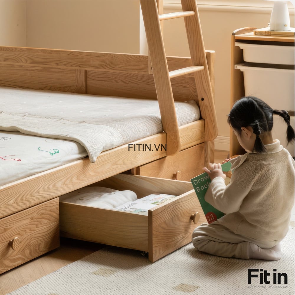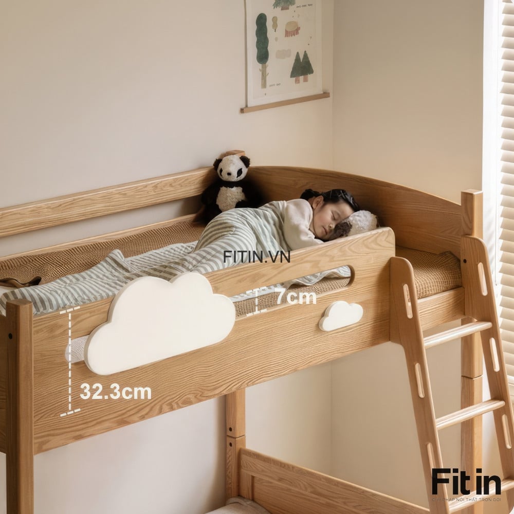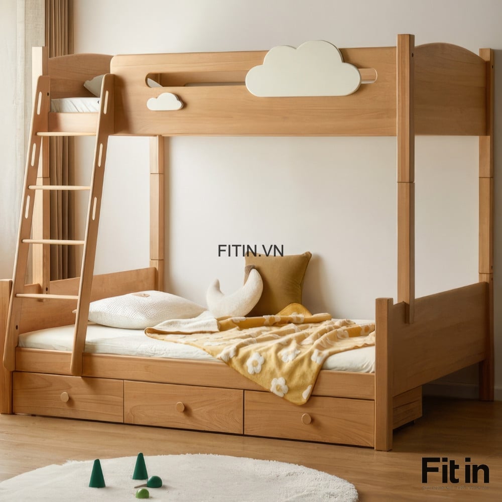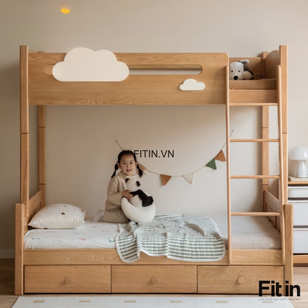 Giường Tầng Trẻ Em Gỗ Sồi Màu Tự Nhiên Chất Lượng Hiện Đại