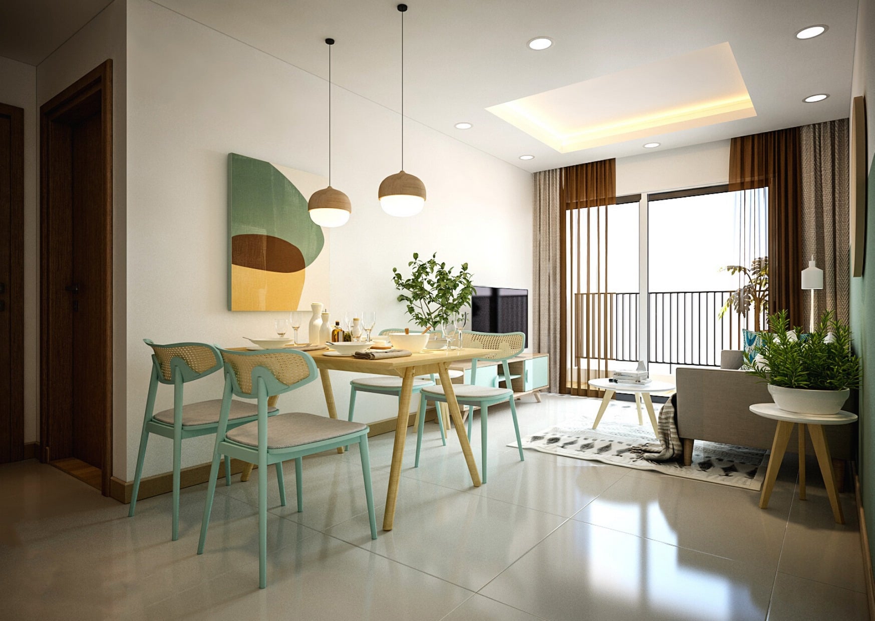 Những món đồ nội thất như ghế sofa xanh mềm mại, ghế mây cổ điển vintage, ghế Gubi Bettle nhung với màu xanh lạ mắt, một tấm thảm ấm áp làm tăng thêm chiều sâu cho căn phòng cùng những bức tranh treo nghệ thuật… Tất cả đều là những ý tưởng hay ho, sáng tạo mà ai nhìn vào cũng phải tấm tắc.