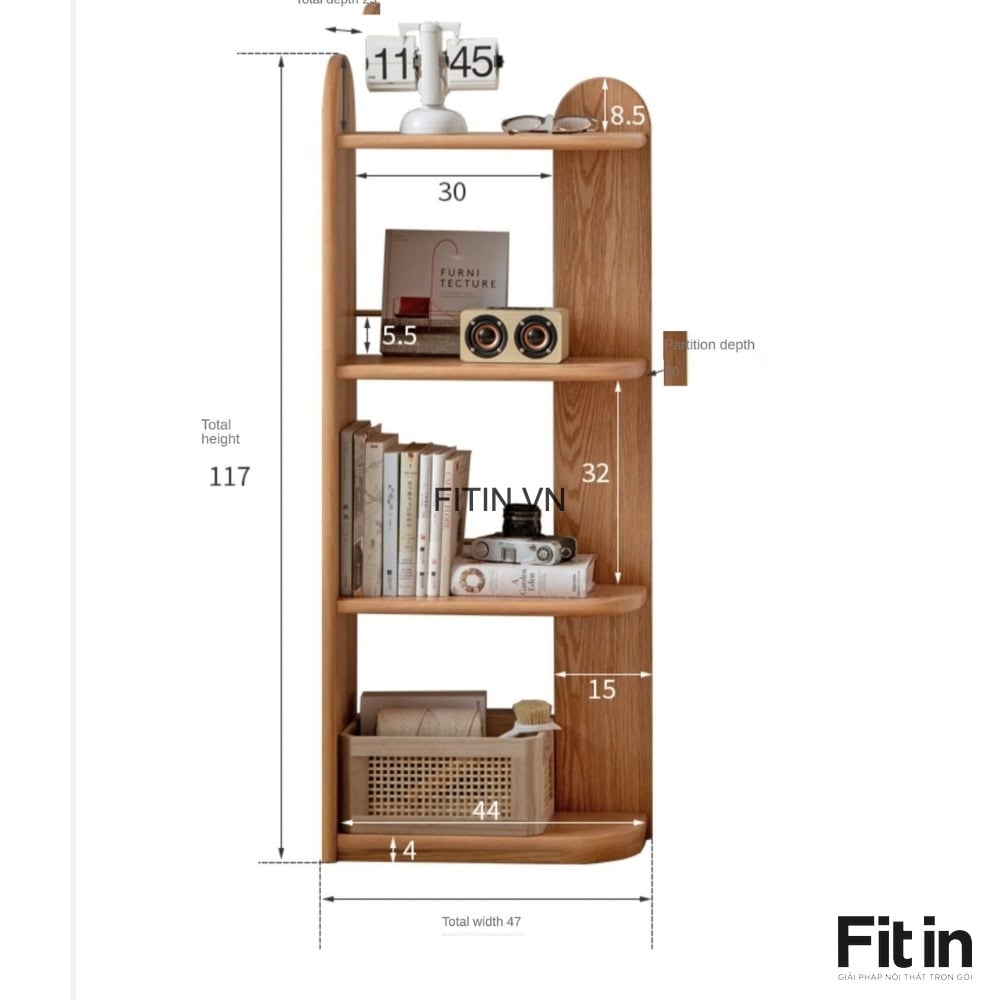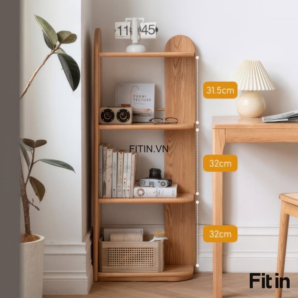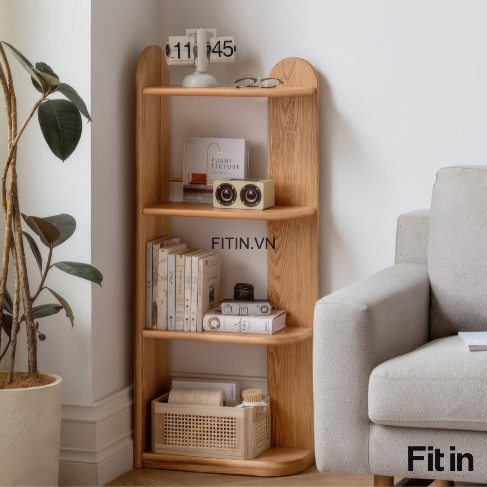 Kệ Để Sách Góc Tường Gỗ Sồi Thiết Kế Nhỏ Gọn Đa Năng