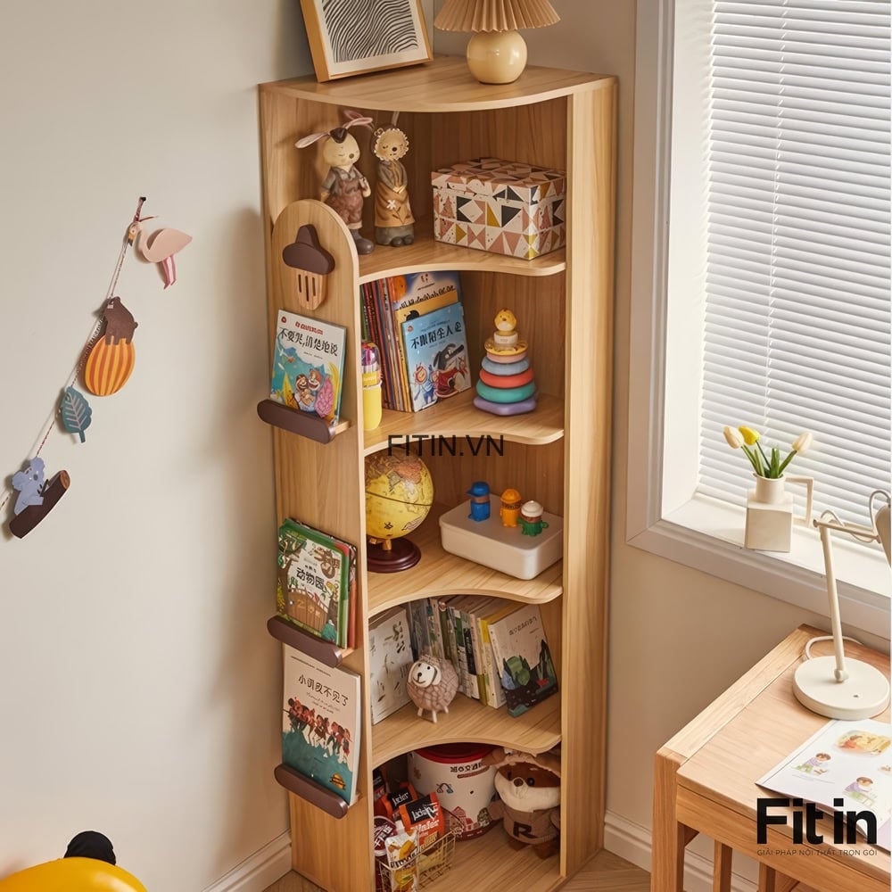 Kệ Đựng Sách Mini Đặt Góc Tường Gỗ Công Nghiệp Hiện Đại