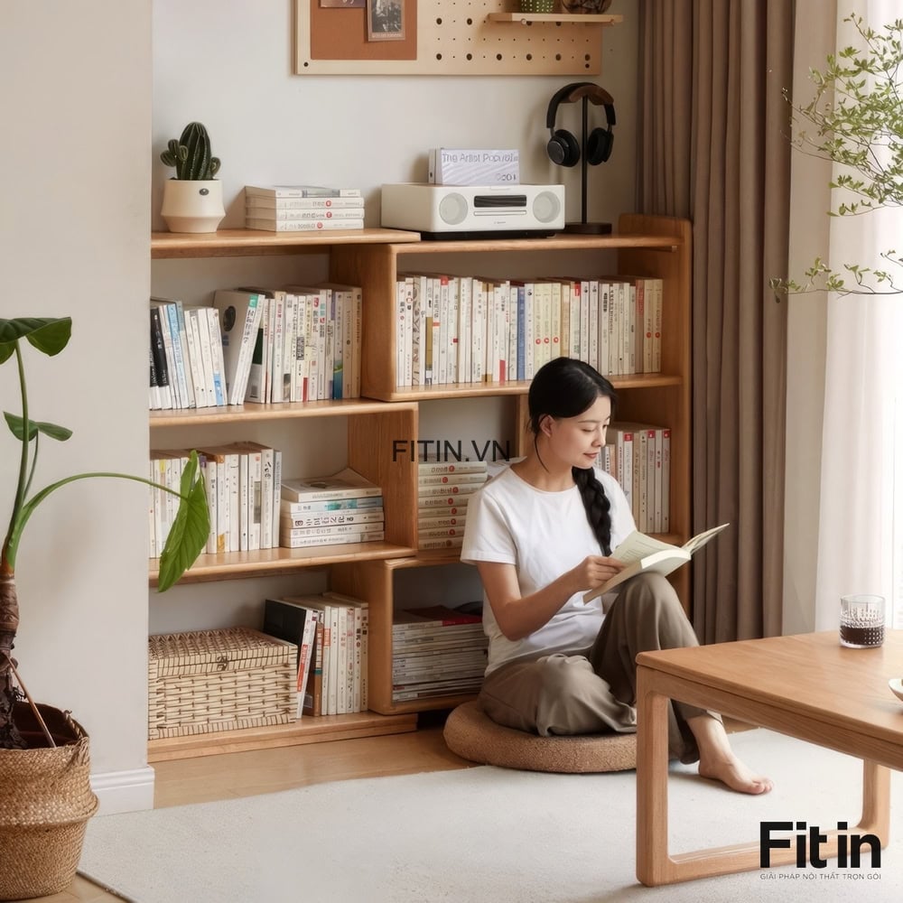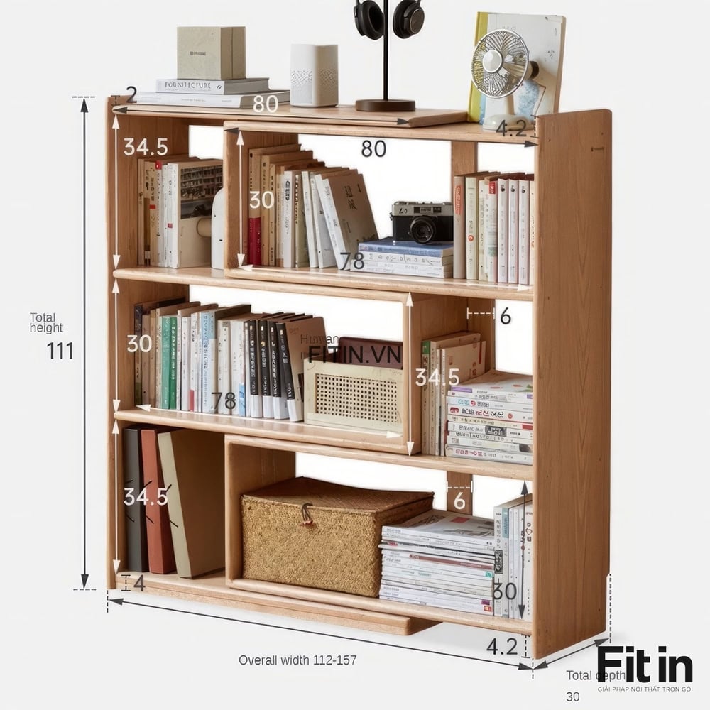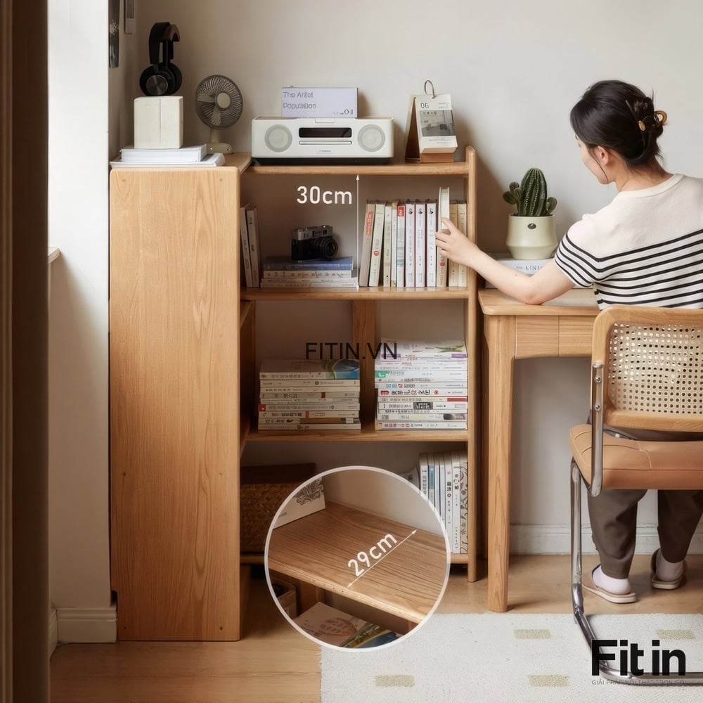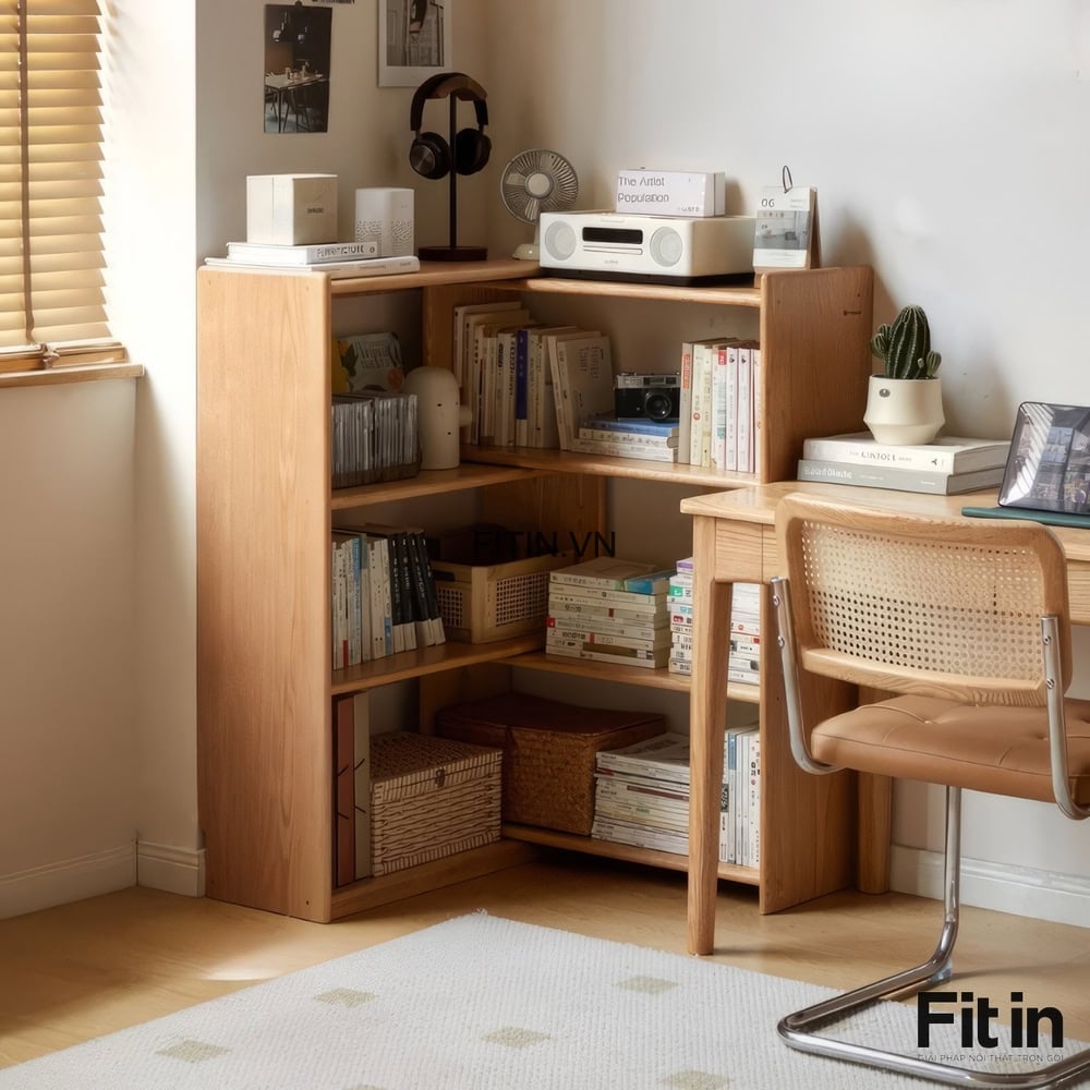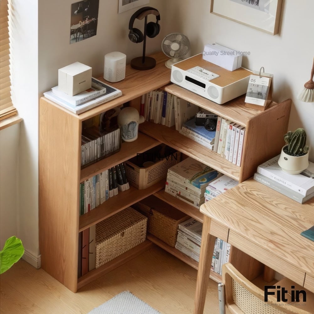 Kệ Sách Chữ L Gỗ Sồi Tự Nhiên Kiểu Kéo Rút Thông Minh