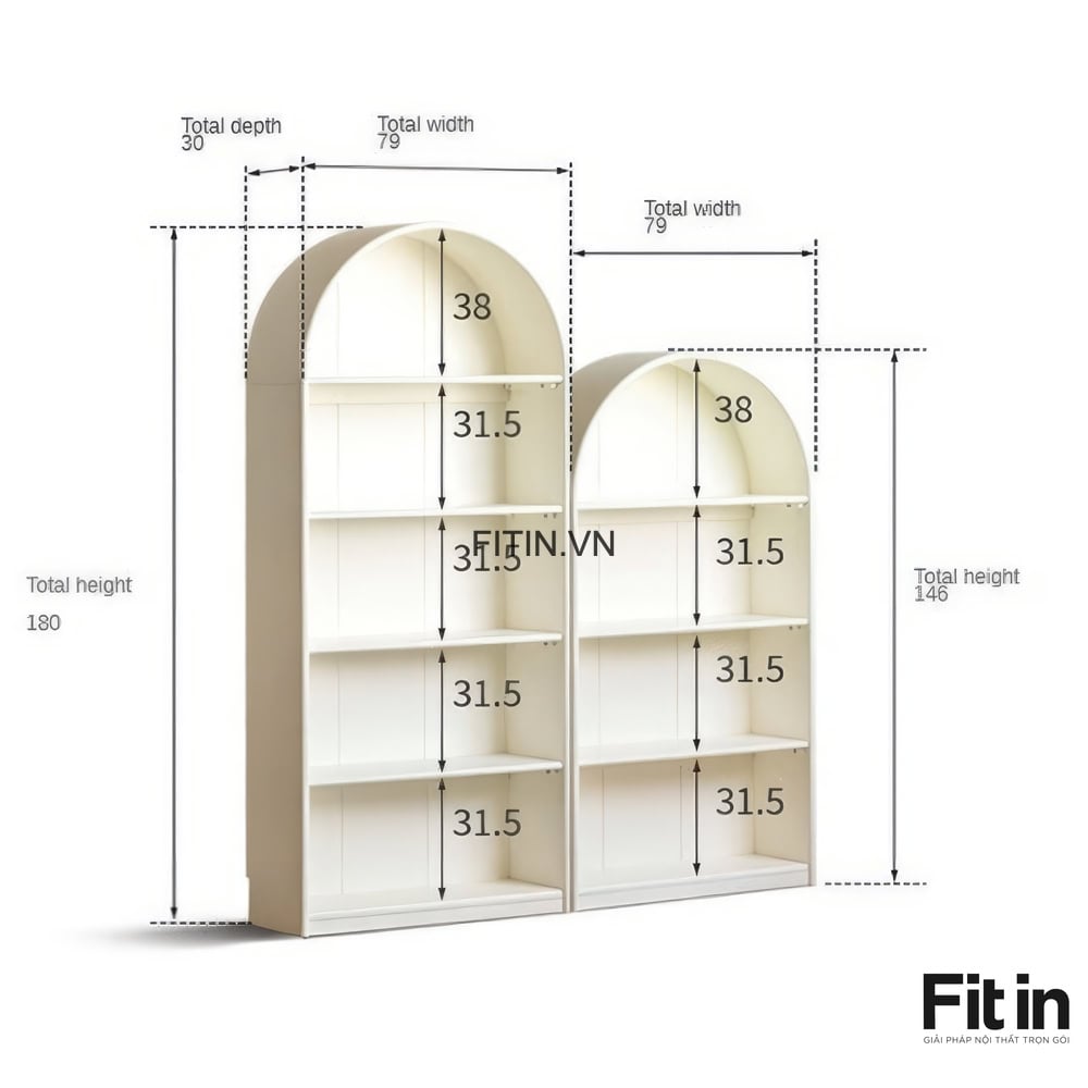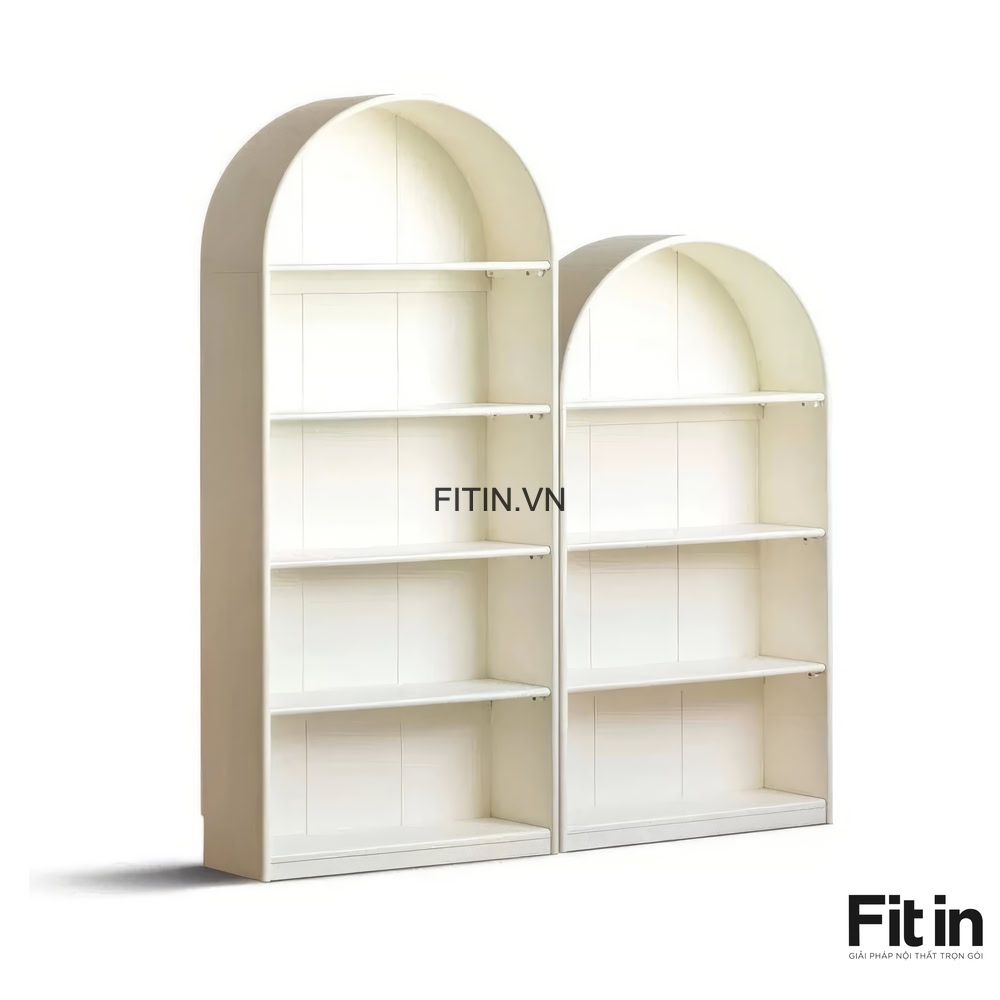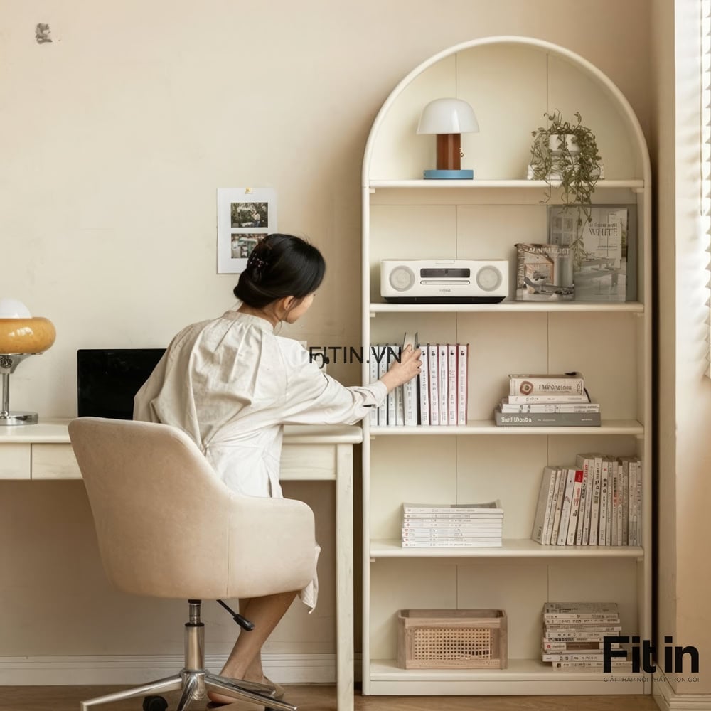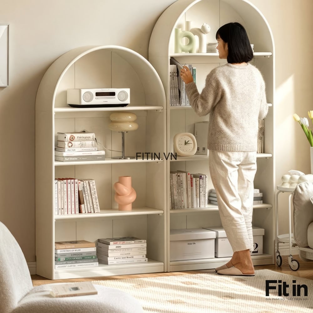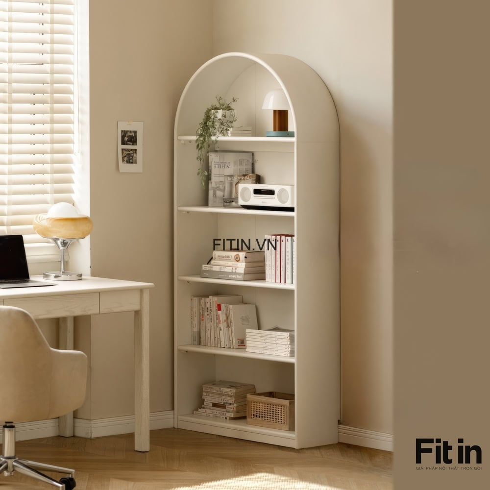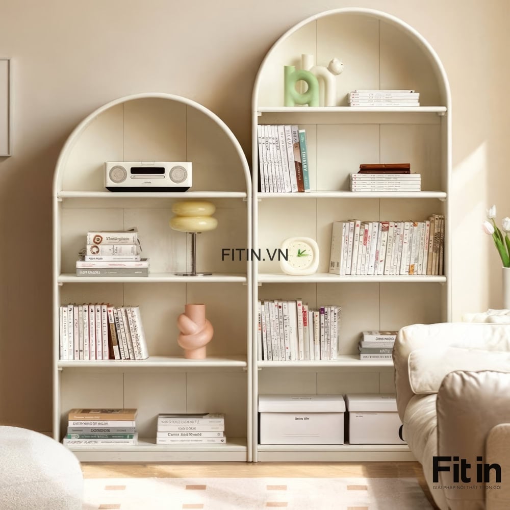 Kệ Sách Decor Trang Trí Phòng Gỗ Sồi Sơn Trắng Hiện Đại