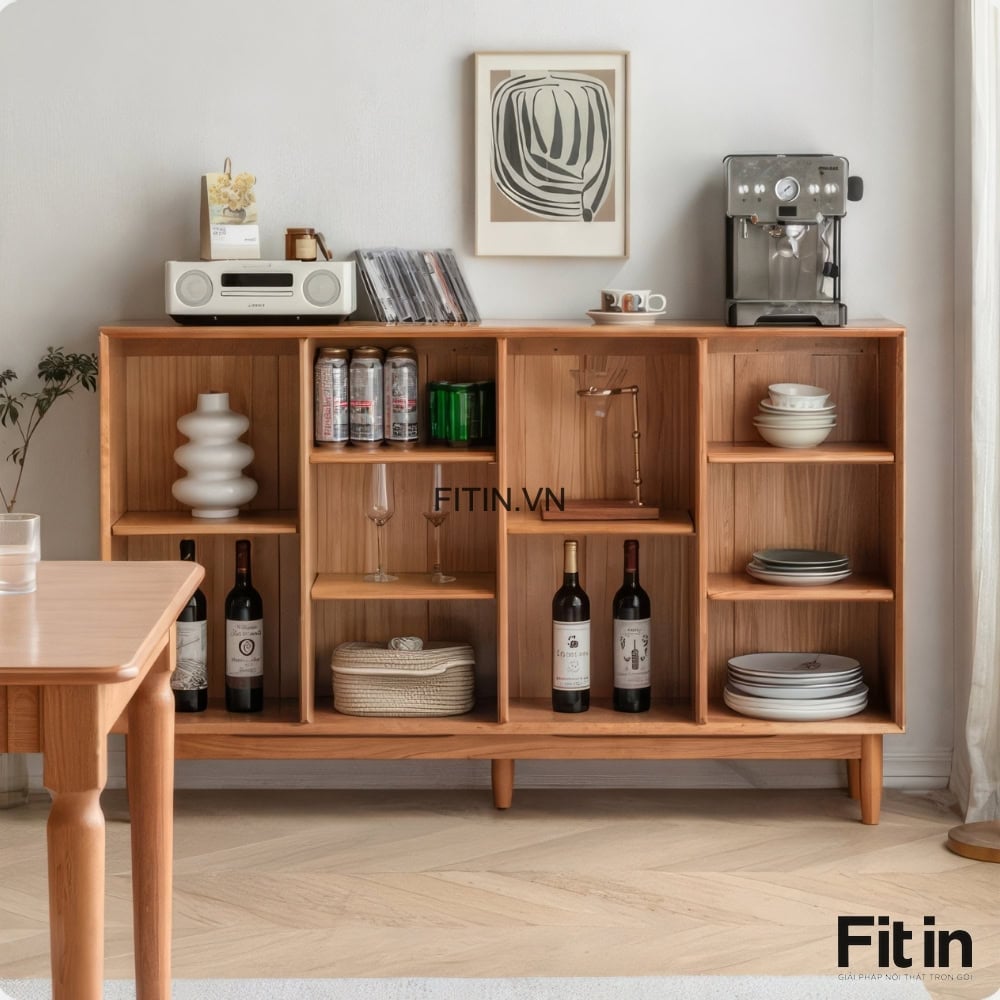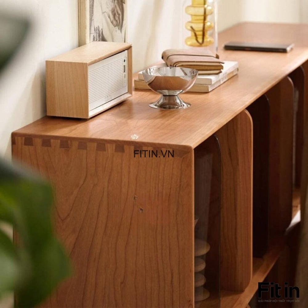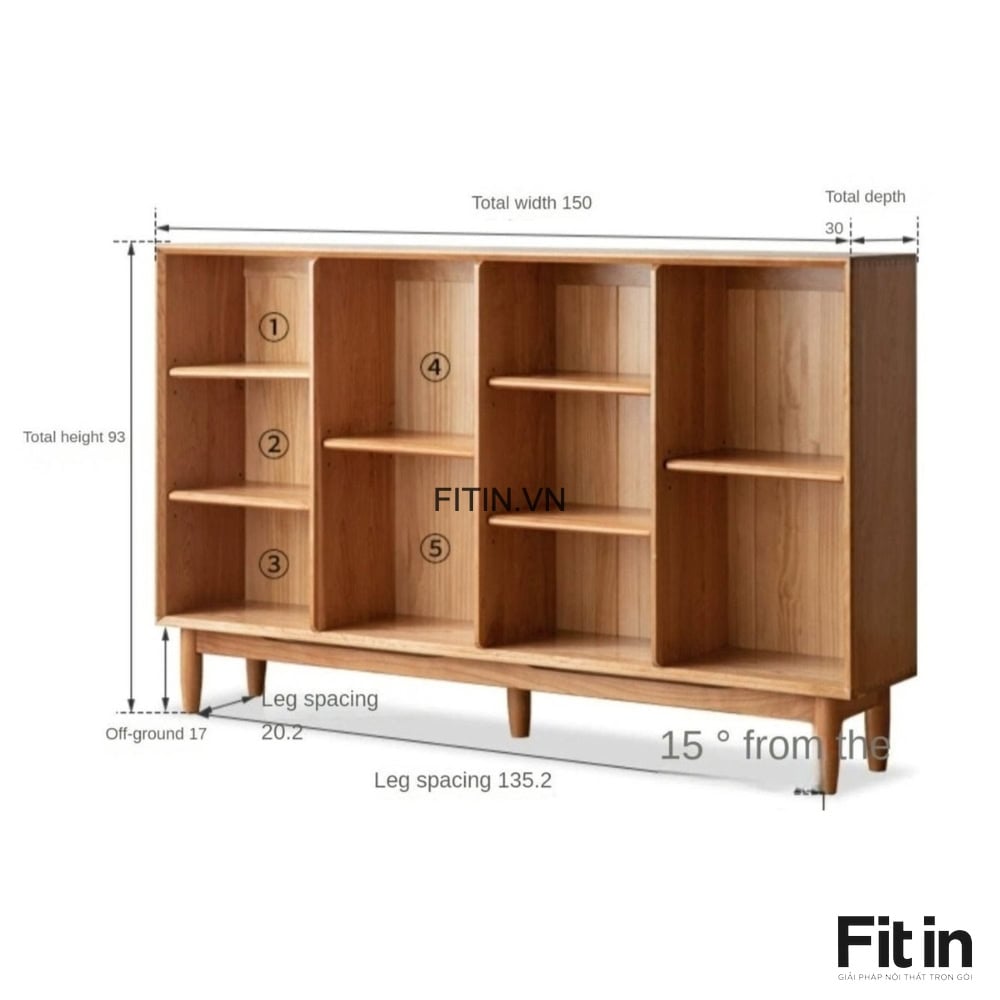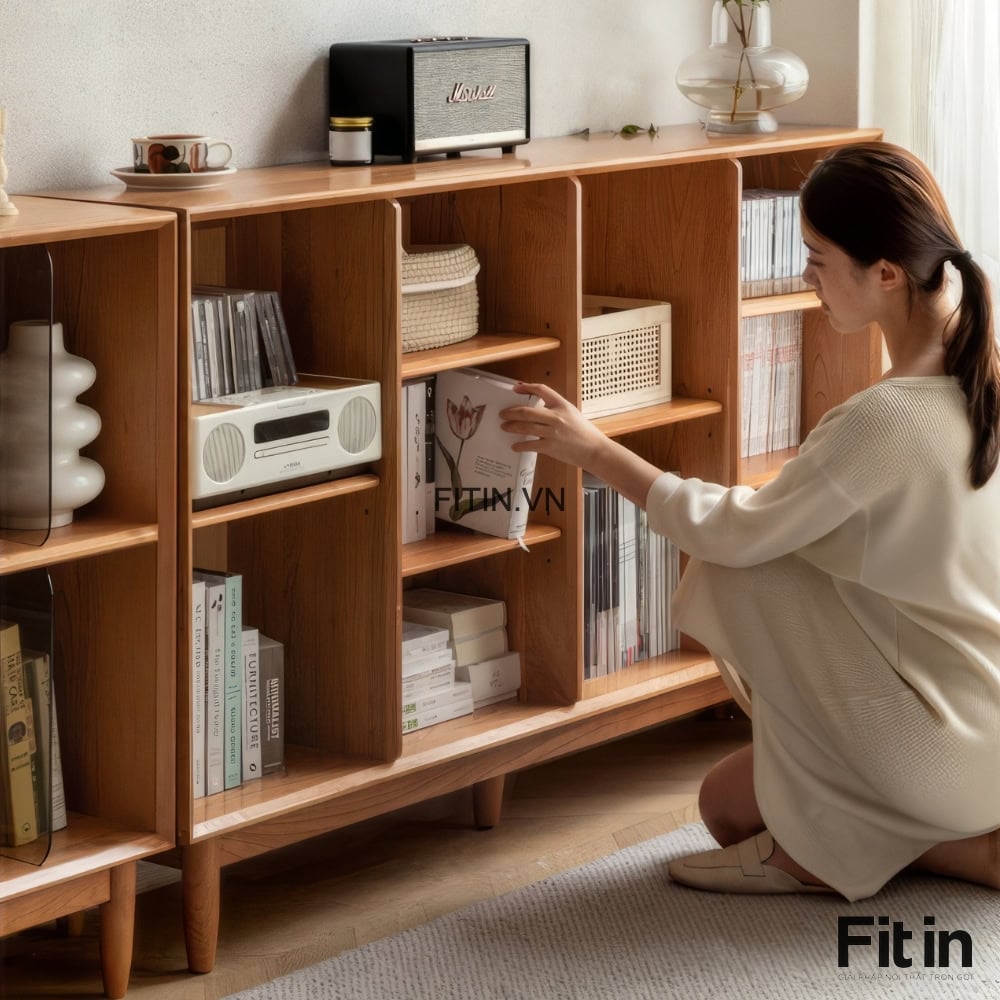 Kệ Sách Đẹp Phòng Khách Dáng Thấp Kiểu Chân Cao Gỗ Sồi
