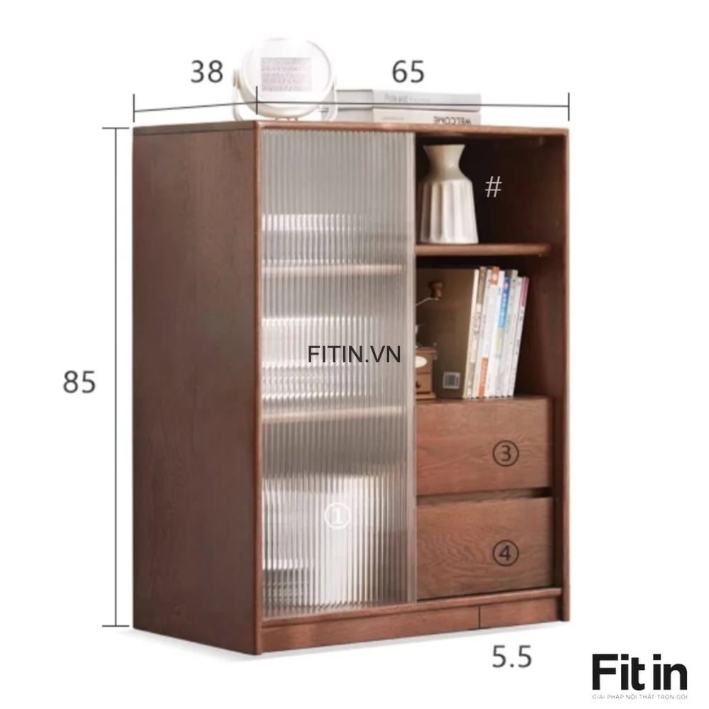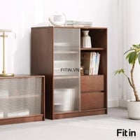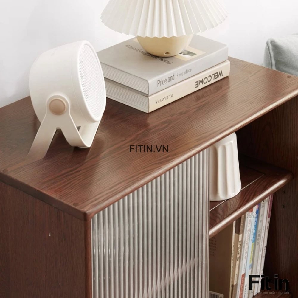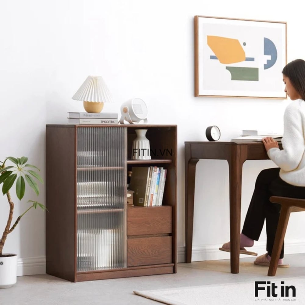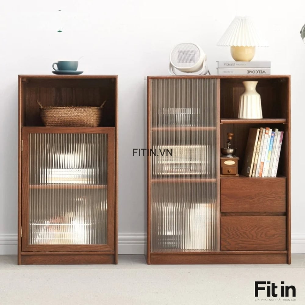Kệ Sách Hiện Đại Gỗ Sồi Cánh Kính Sọc Kiểu Lùa Chắc Chắn
