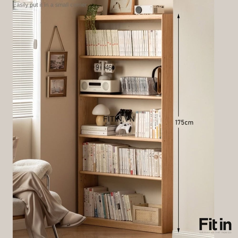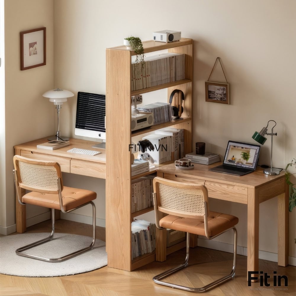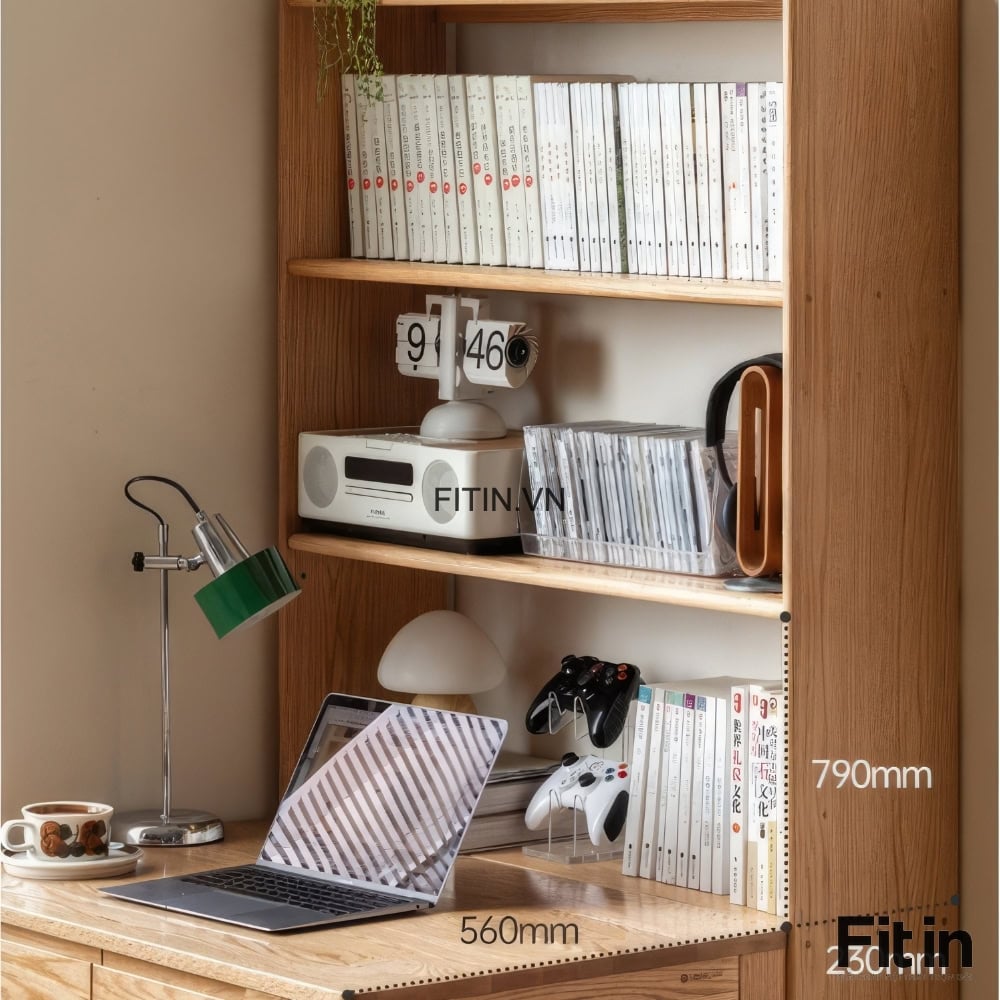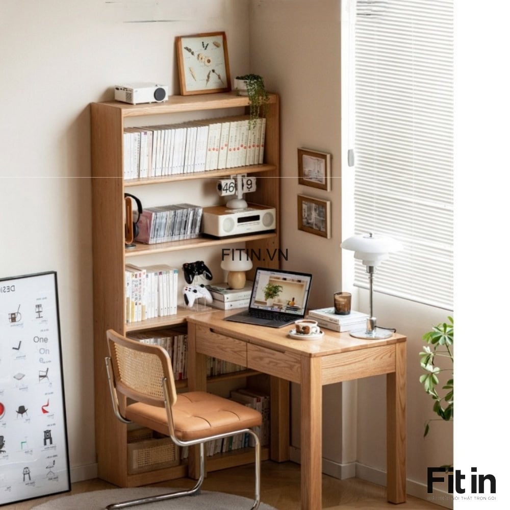 Kệ Sách Nhỏ Gỗ Sồi Tự Nhiên Cạnh Bàn Làm Việc Hiện Đại