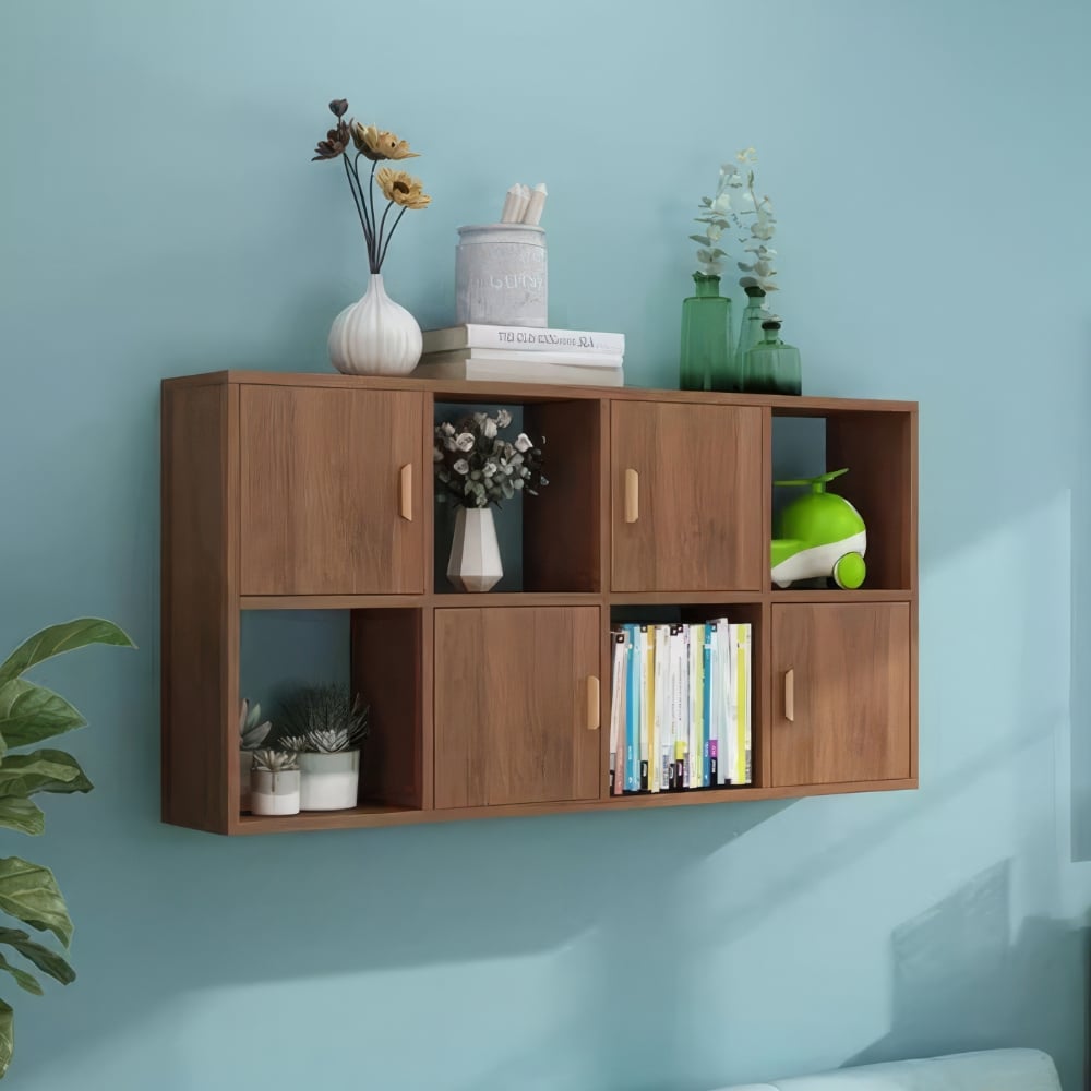 Về bố cục, kệ sách treo tường, giá sách treo tường đẹp nhất khi được sắp xếp theo nguyên tắc bất đối xứng có chủ đích: các ô kệ ở độ cao và kích thước khác nhau tạo nhịp điệu thẩm mỹ tự nhiên, không đơn điệu mà cũng không gây loạn thị giác.