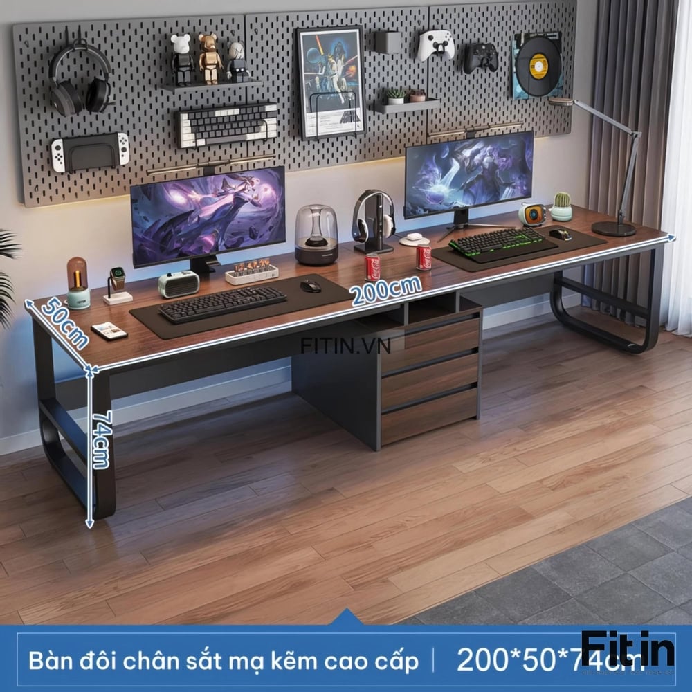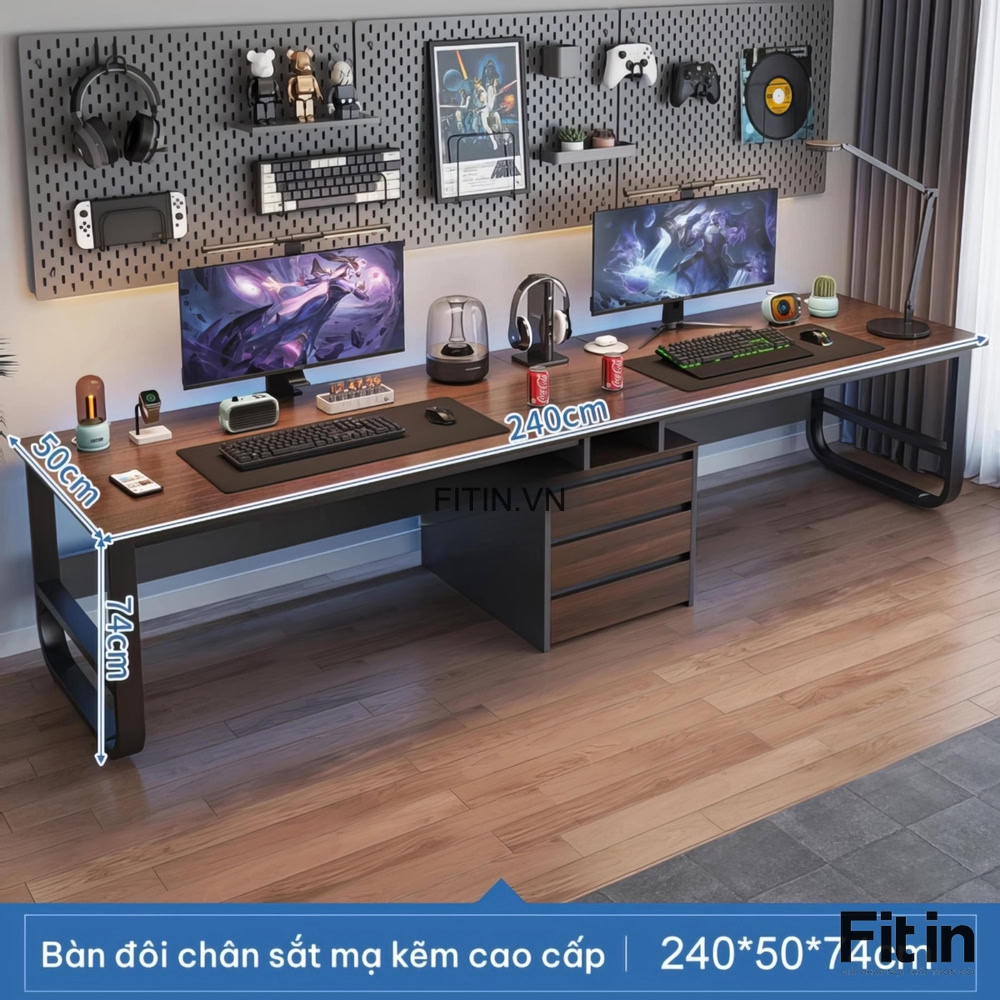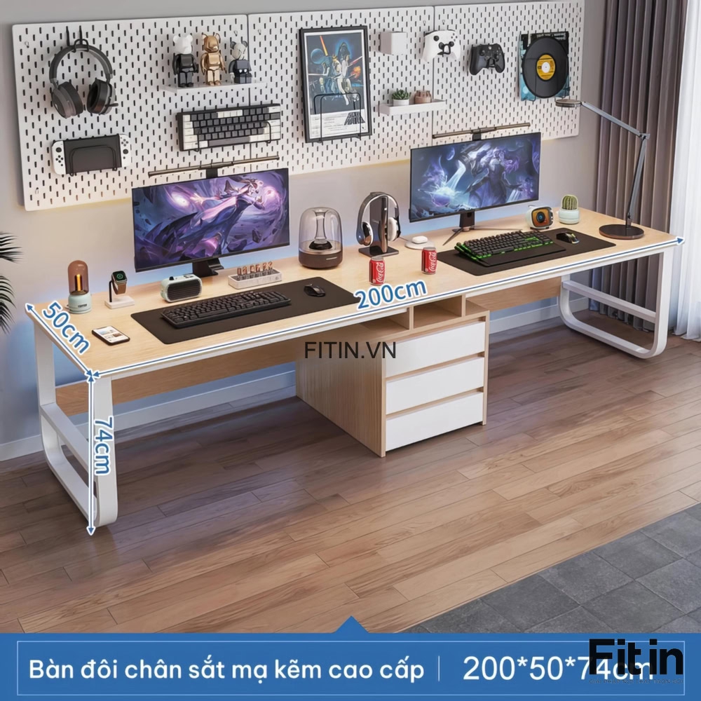 Mẫu Bàn Làm Việc Chân Sắt Mặt Gỗ Công Nghiệp Kiểu Đôi