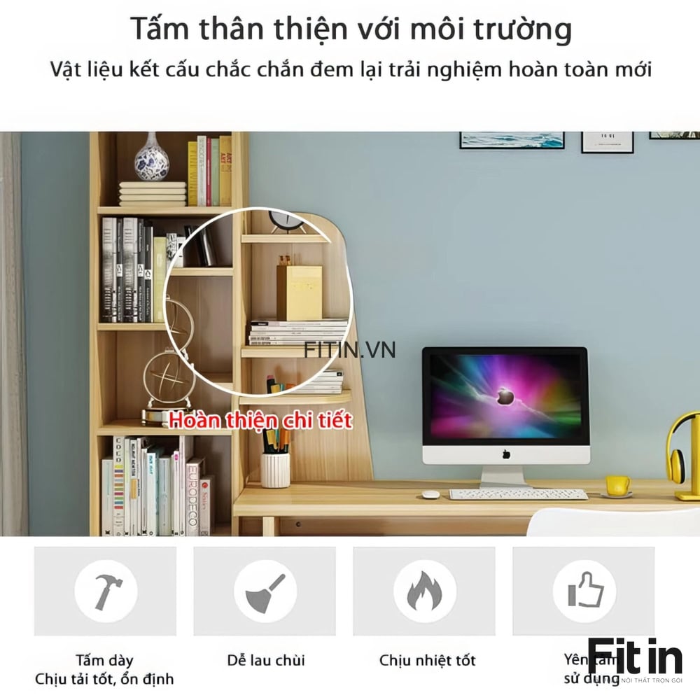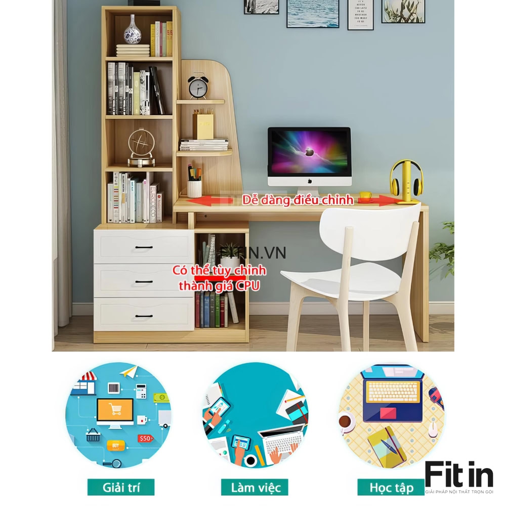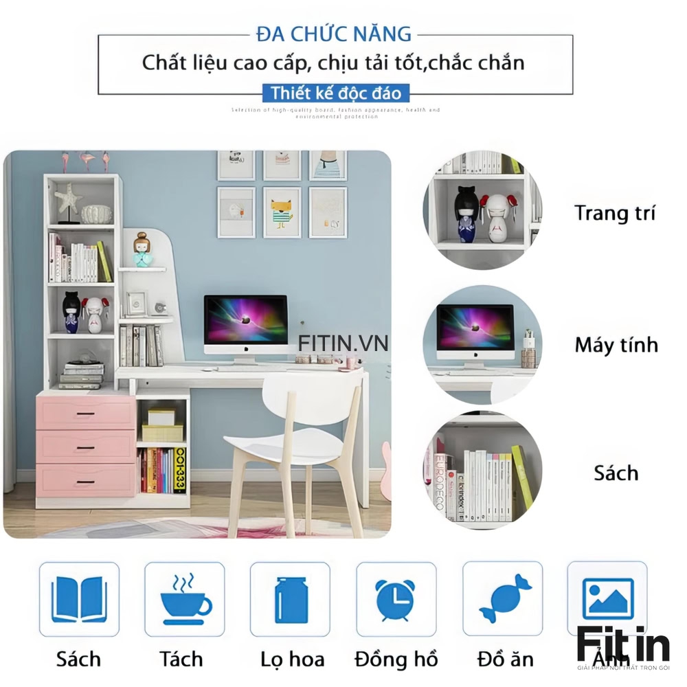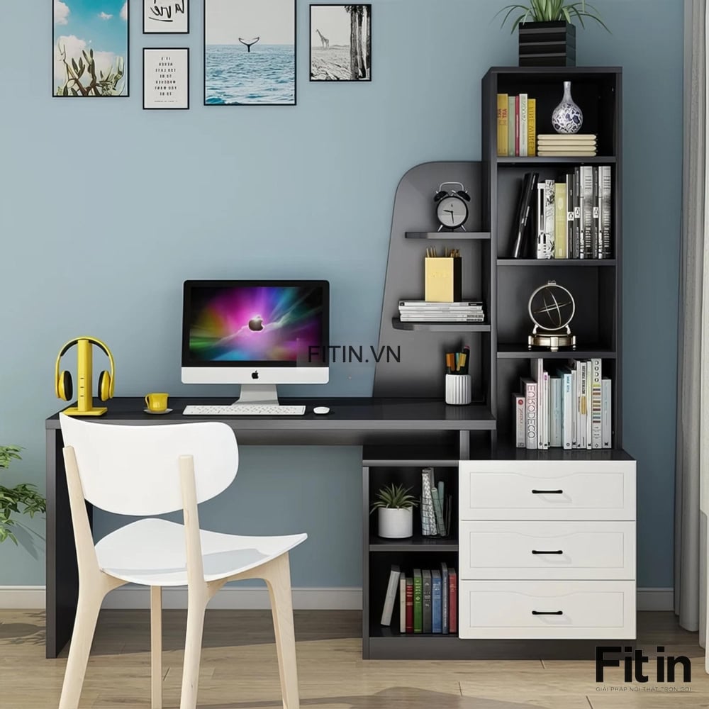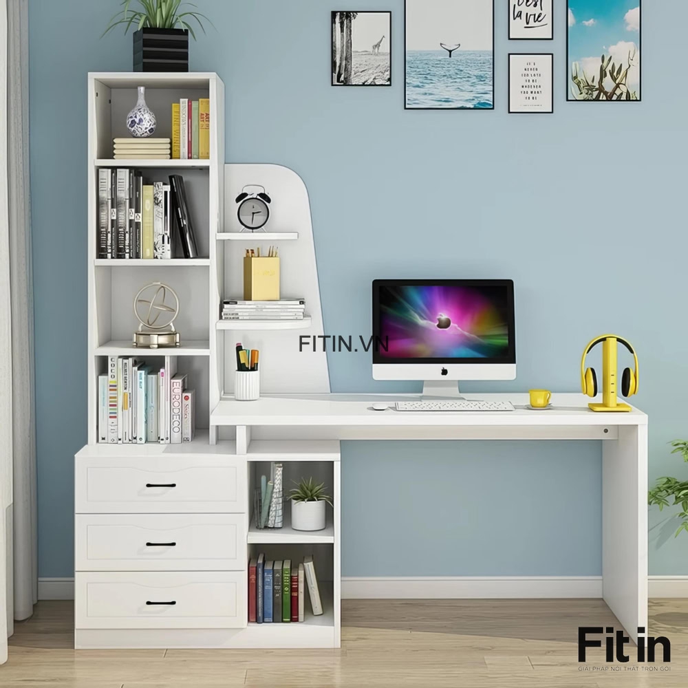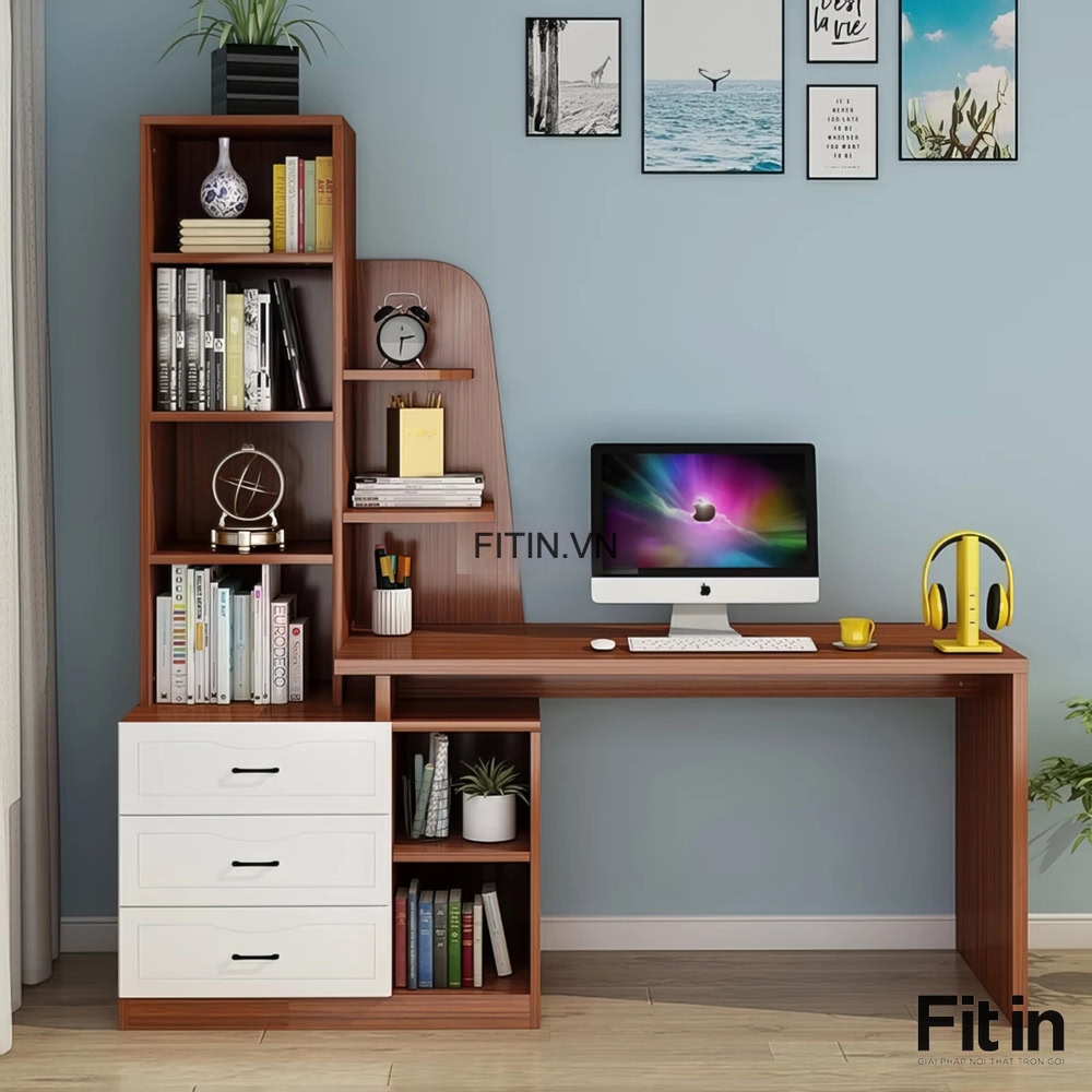 Mẫu Bàn Làm Việc Gỗ MDF Kèm Kệ Sách Và Hộc Tủ Tiện Ích