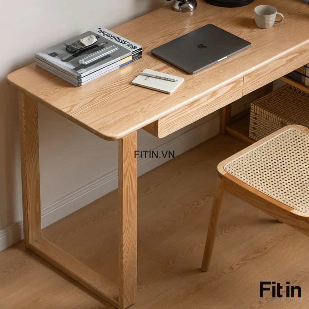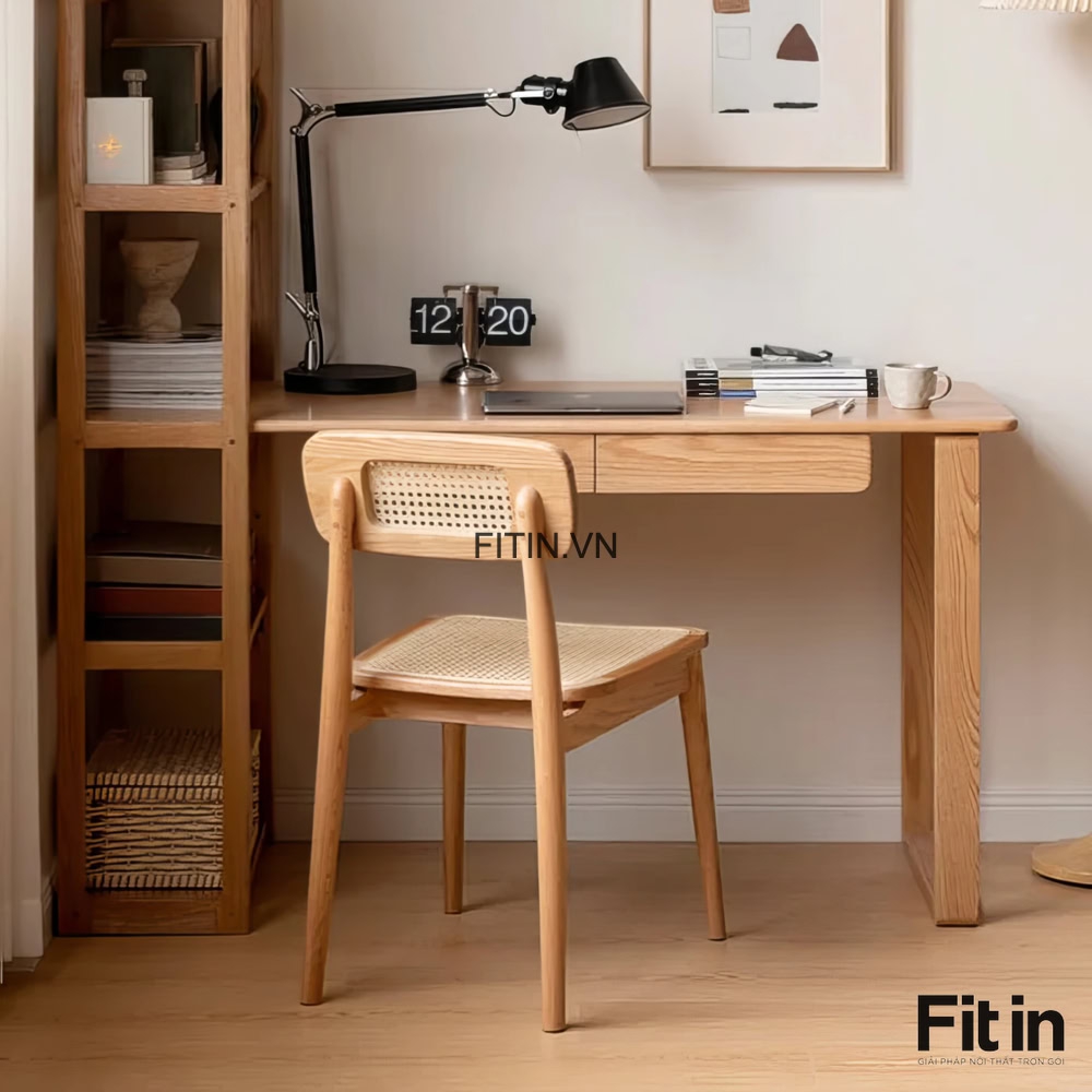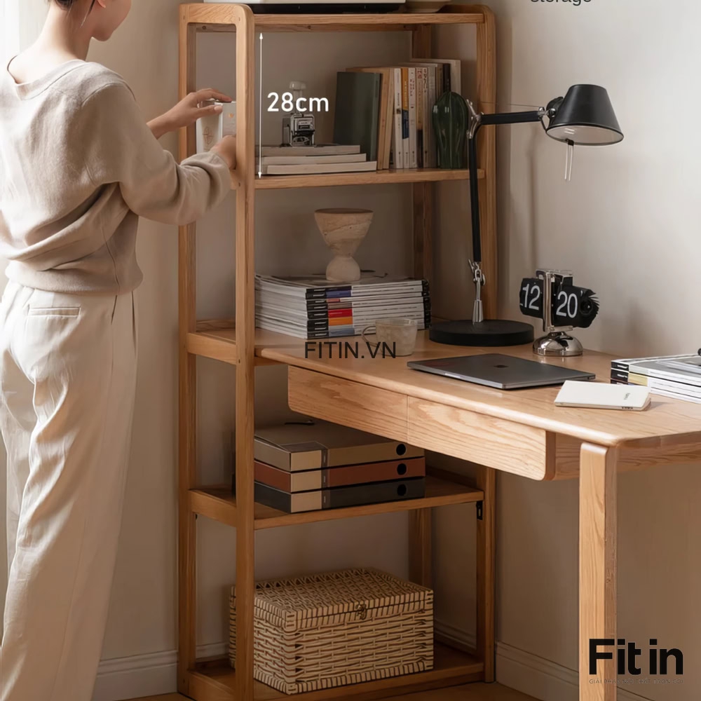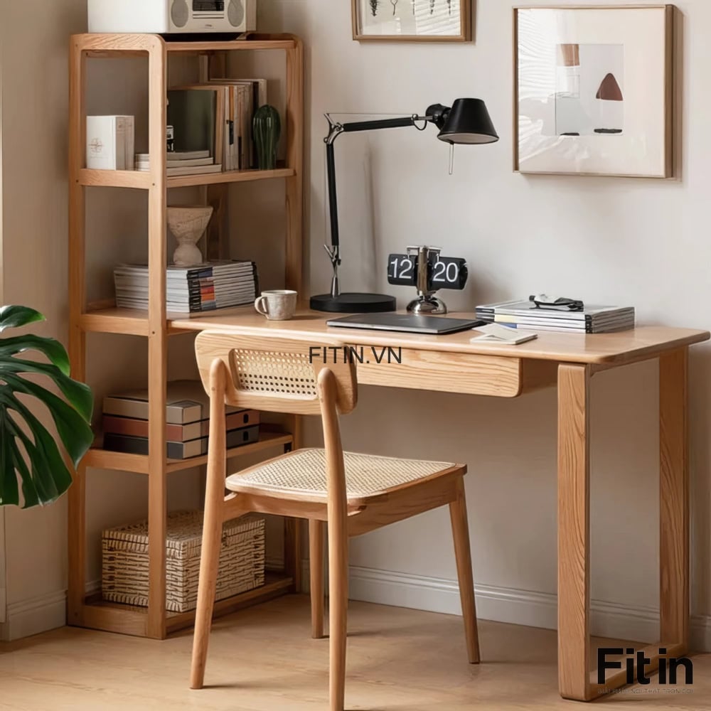 Mẫu Bàn Làm Việc Liền Giá Sách Gỗ Sồi Hiện Đại Tối Ưu