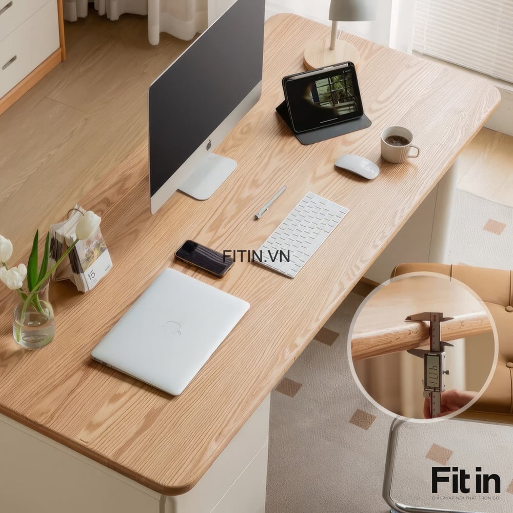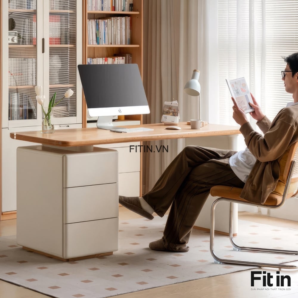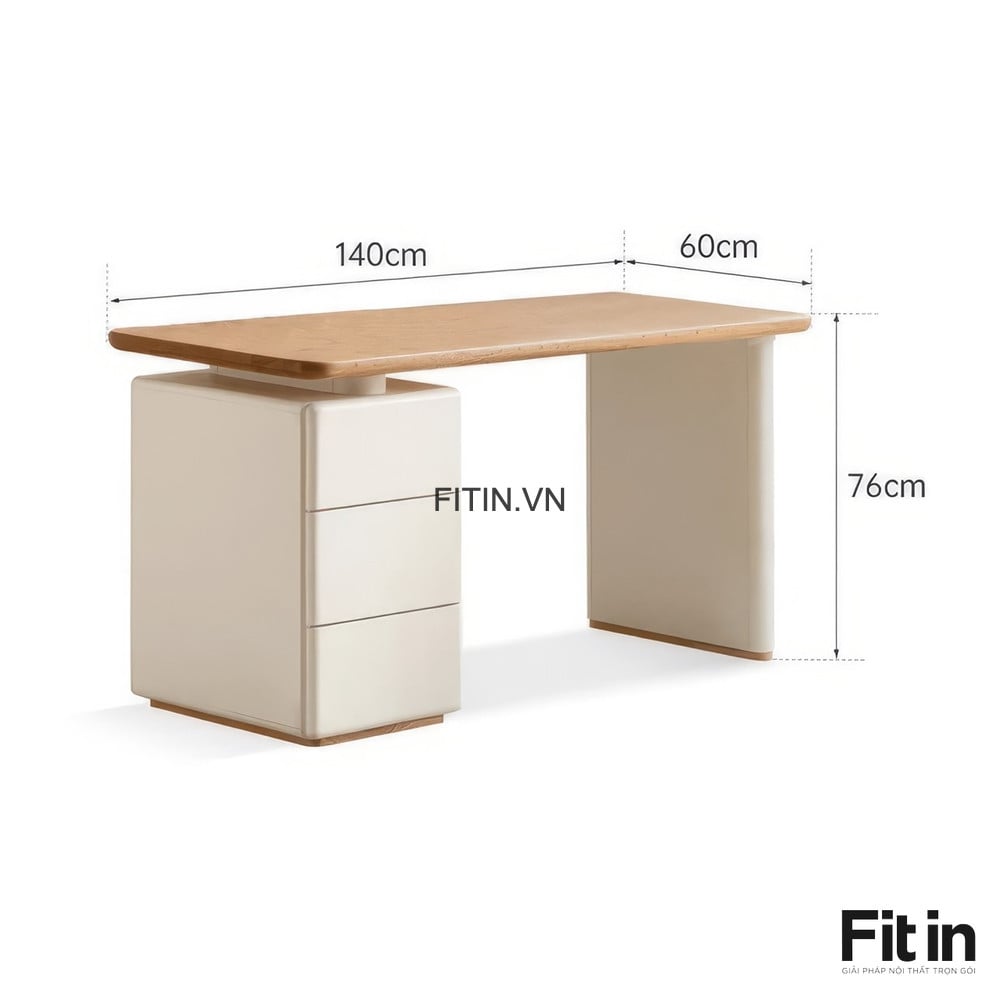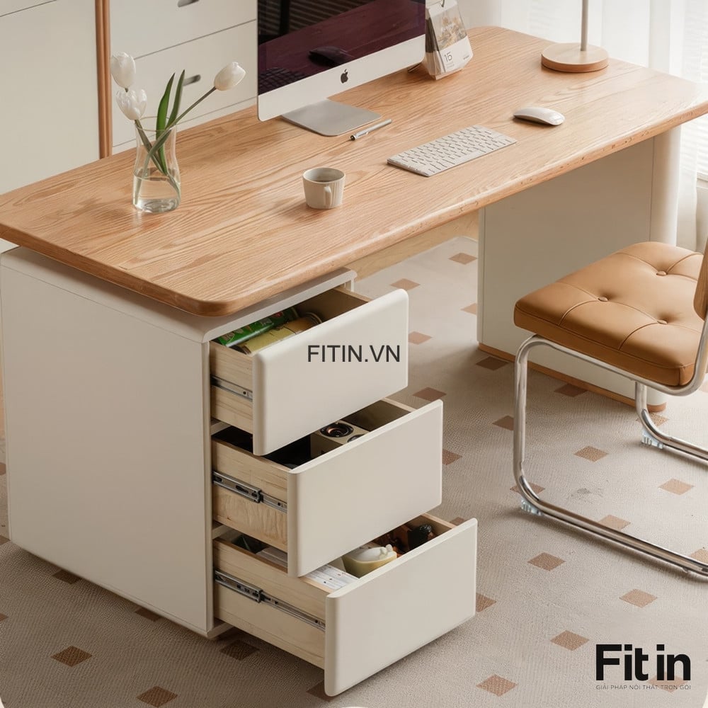 Mẫu Bàn Làm Việc Màu Trắng Gỗ Sồi Kèm Hộc Tủ Hiện Đại