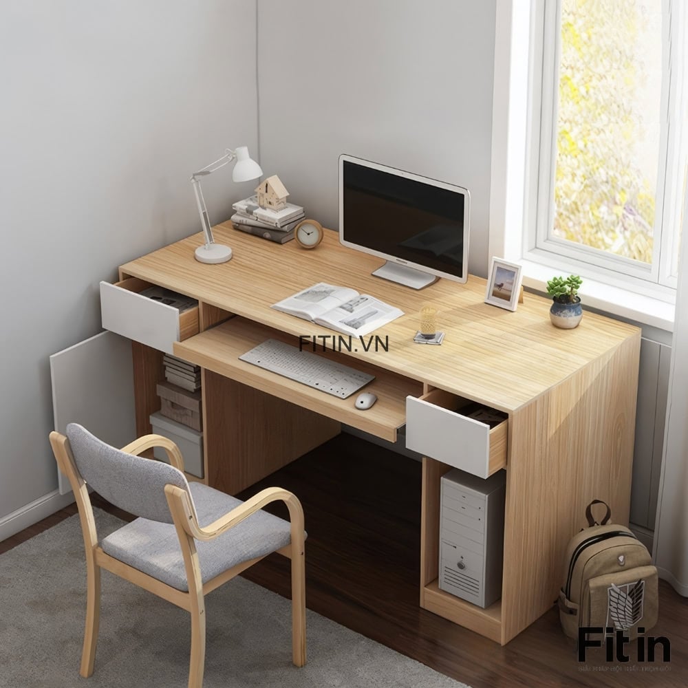 Mẫu Bàn Làm Việc MDF Phủ Melamine Kèm Hộc Tủ Hiện Đại
