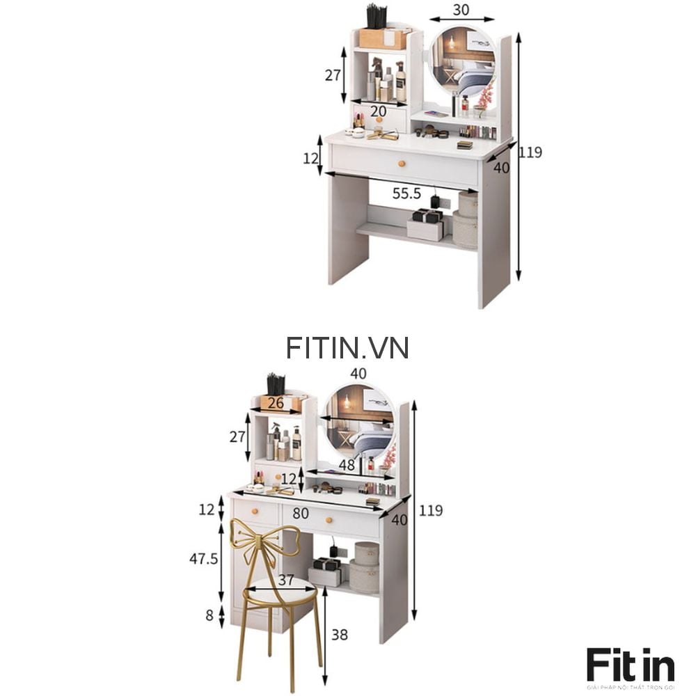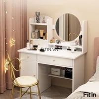 Mẫu Bàn Trang Điểm Gỗ Hiện Đại Thiết Kế Gương Tròn Đẹp Mắt