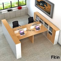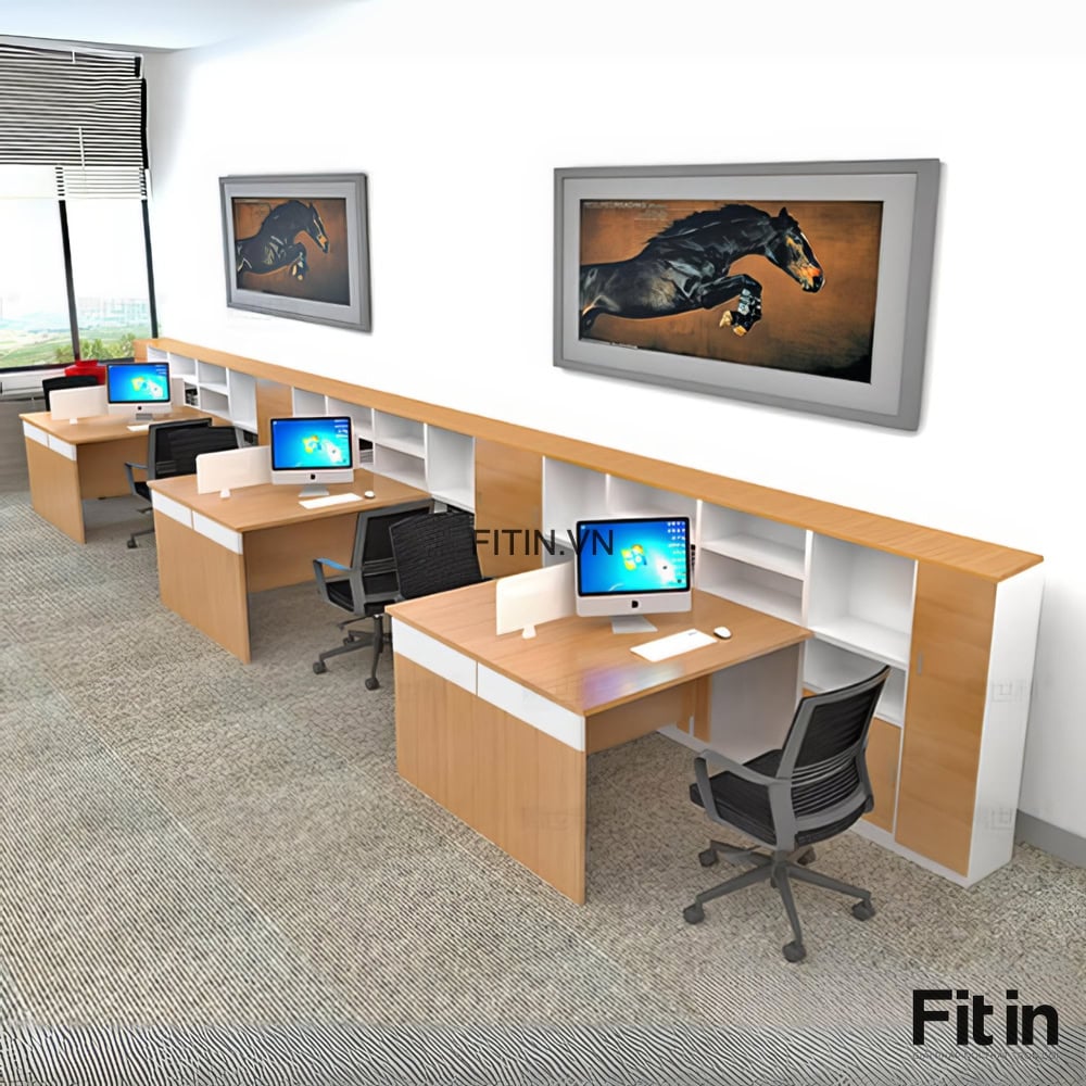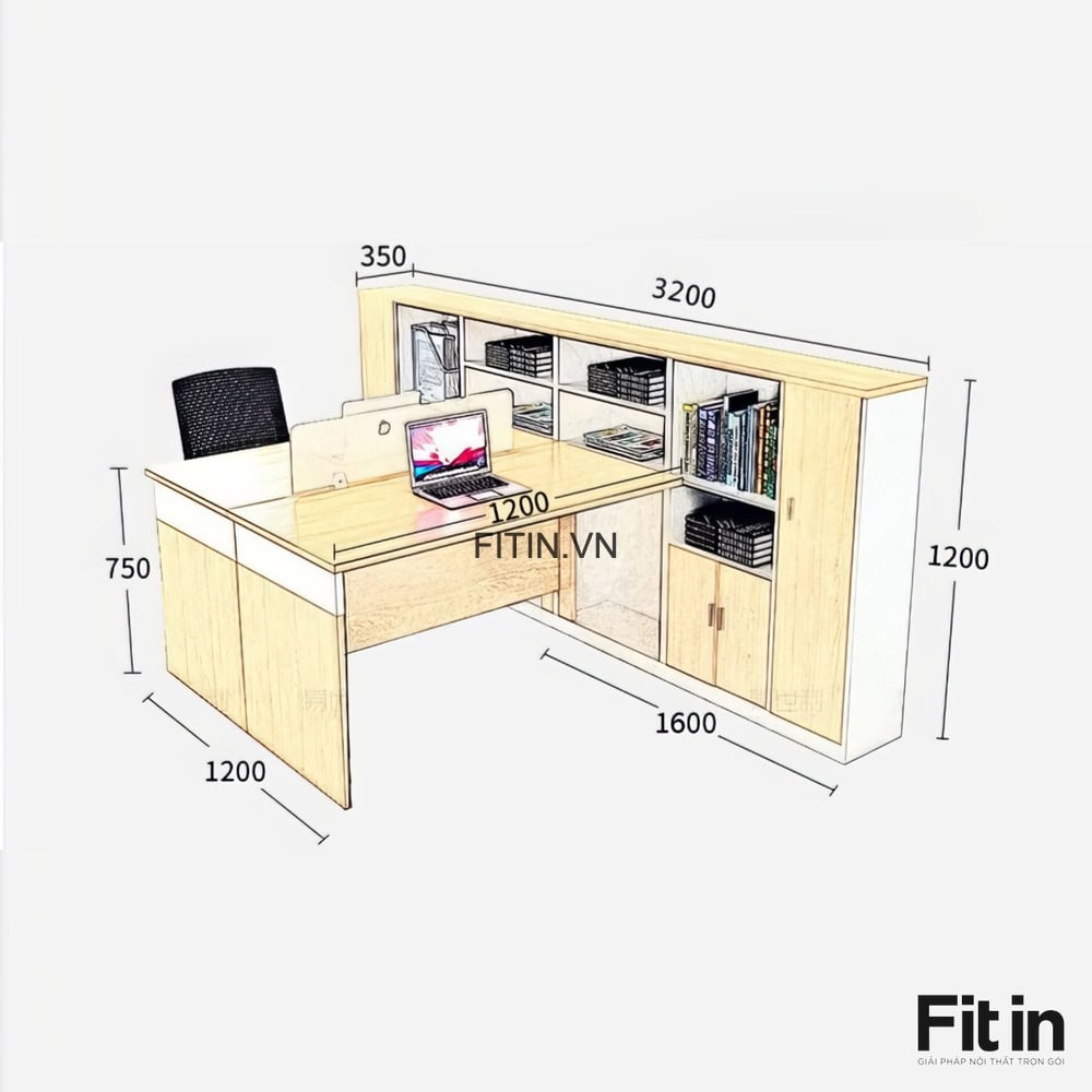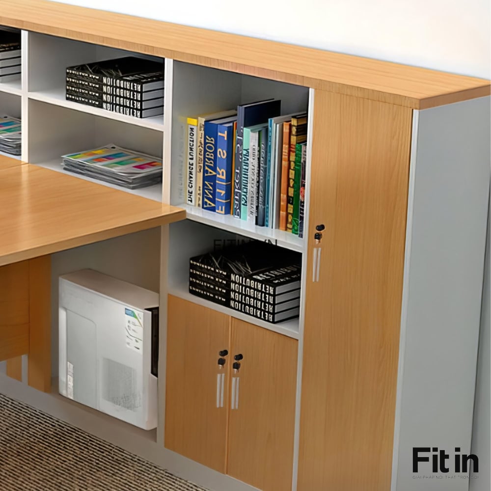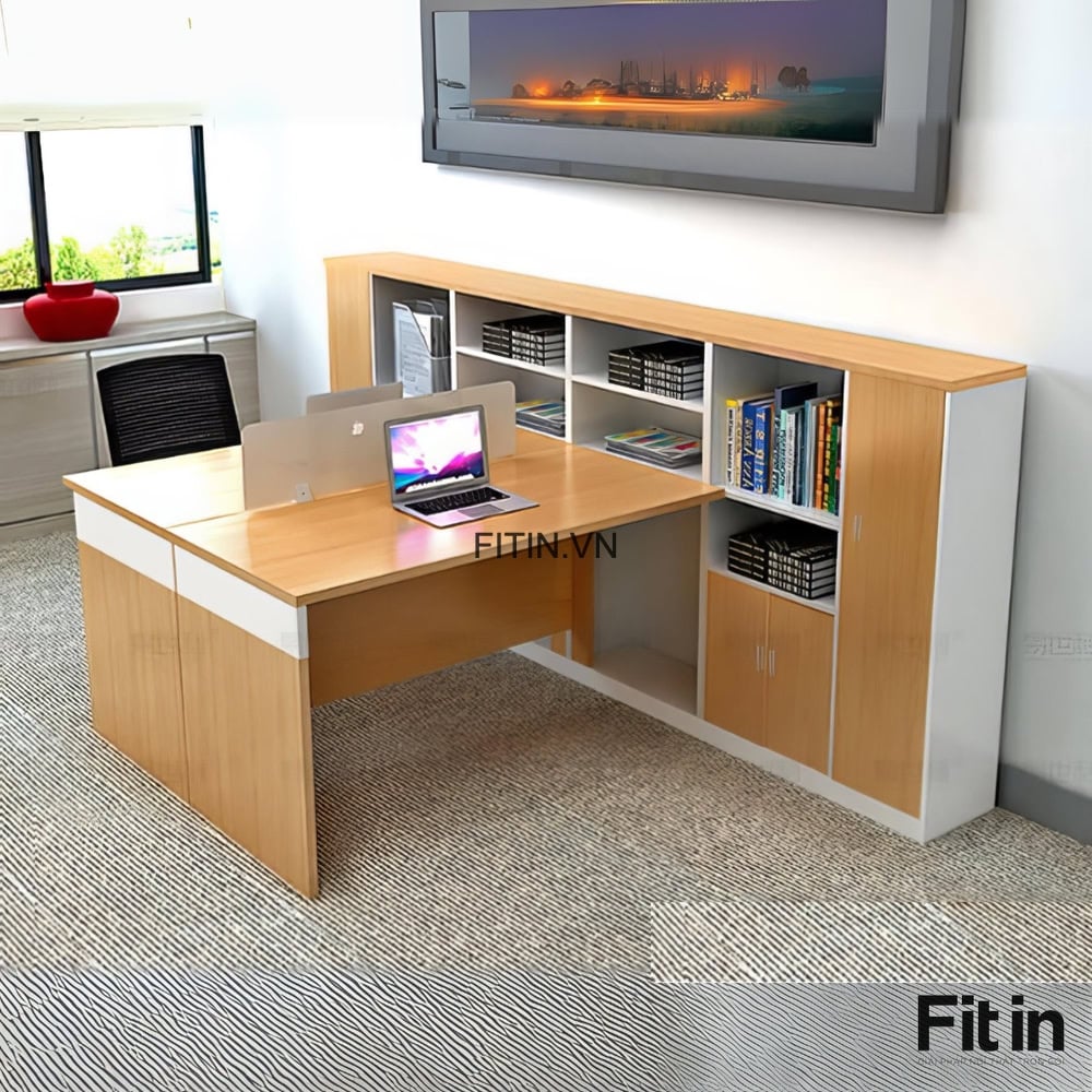 Mẫu Bàn Văn Phòng Làm Việc Gỗ Công Nghiệp Kèm Tủ Sách