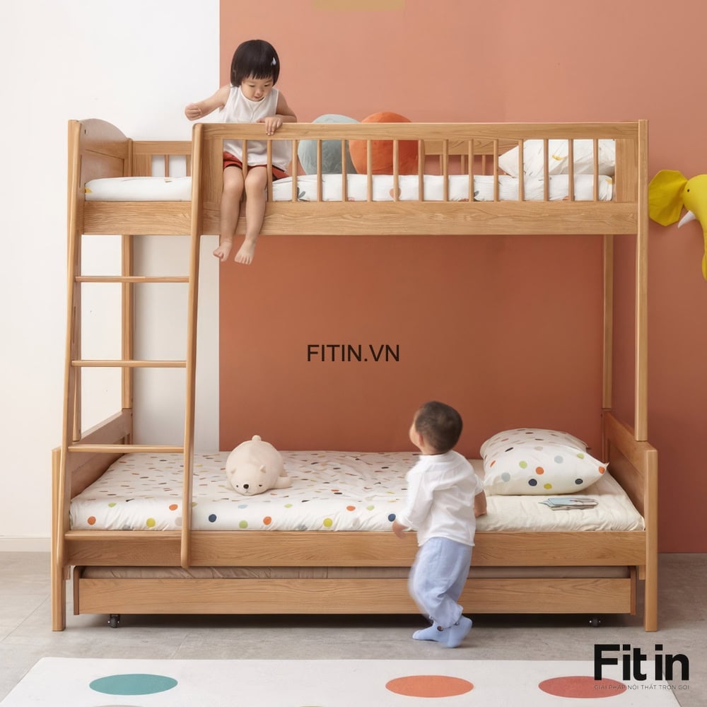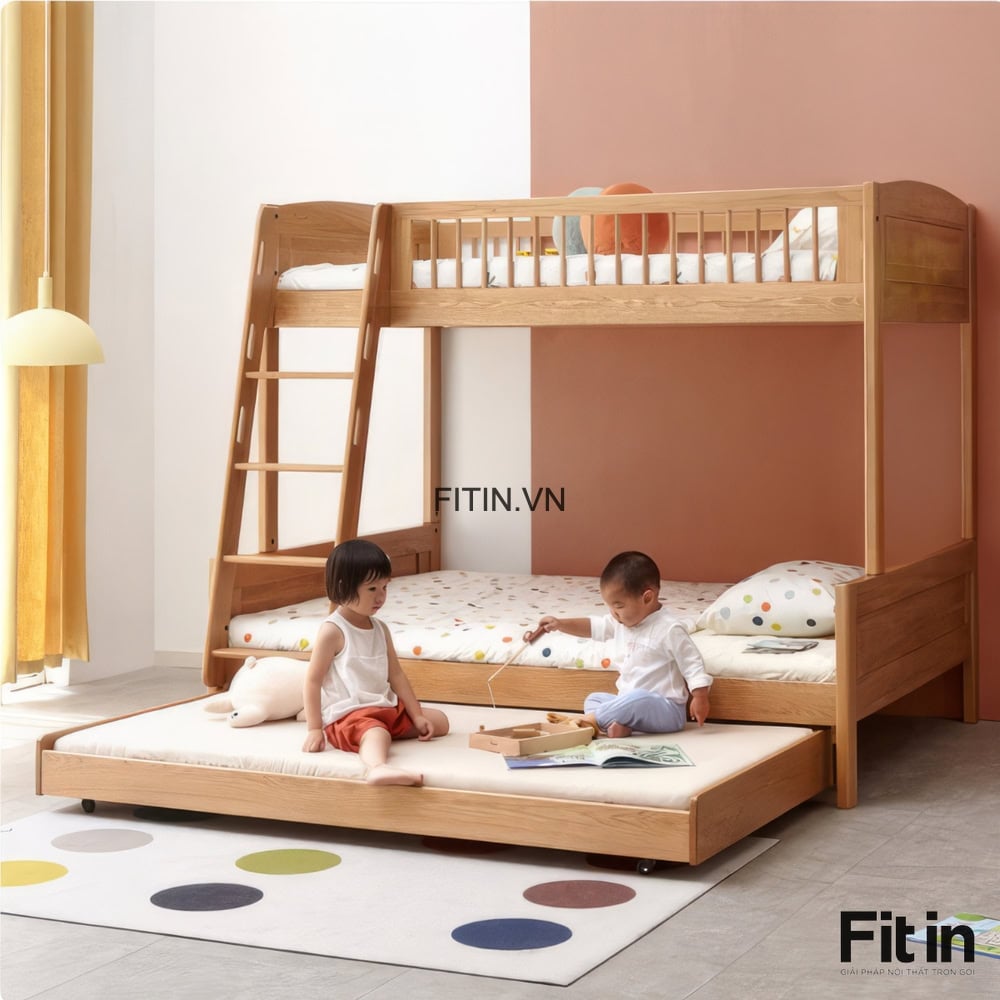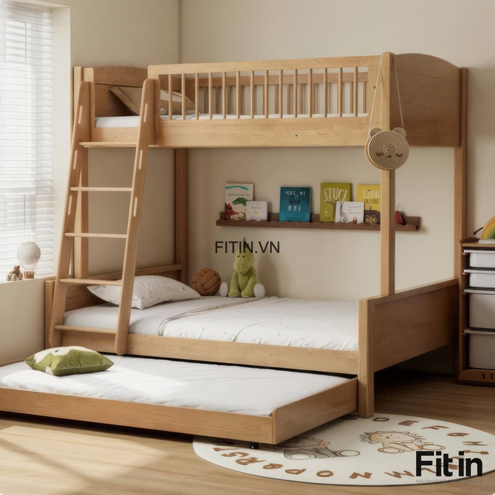 Mẫu Giường Tầng 3 Giường Gỗ Sồi Cao Cấp Tối Ưu Không Gian