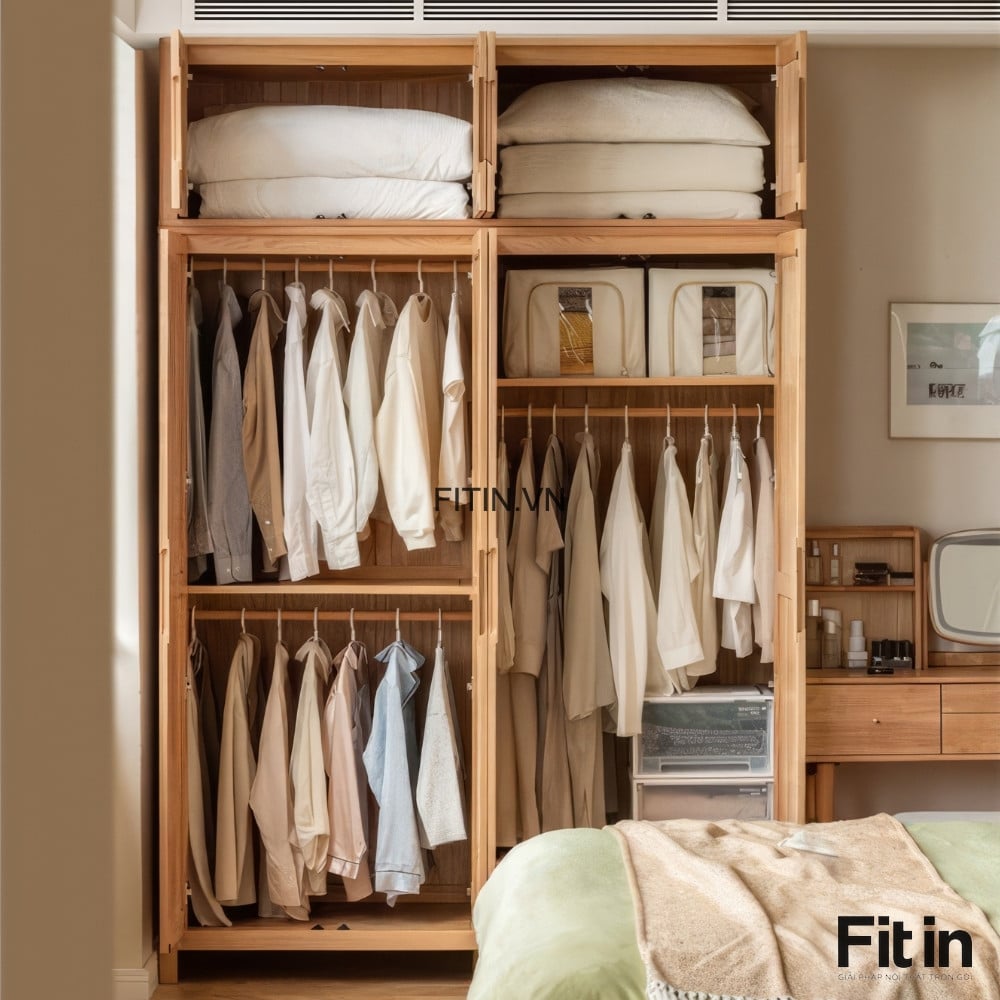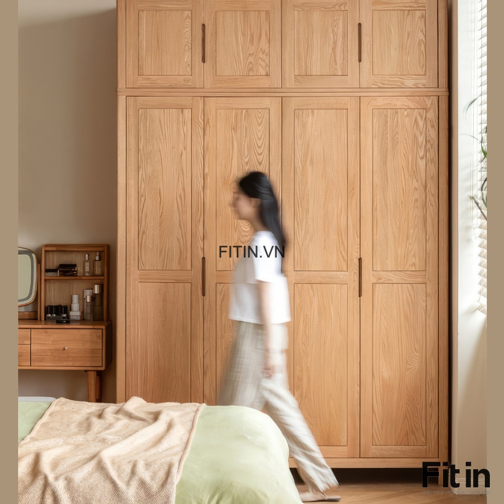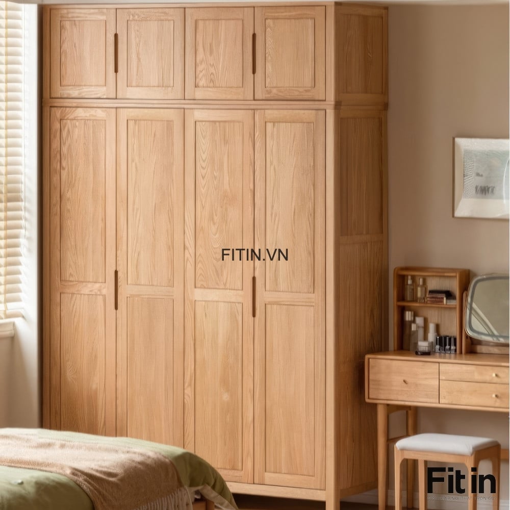 Mẫu Tủ Áo Đẹp Gỗ Sồi Màu Tự Nhiên Kiểu Chân Cao Hiện Đại