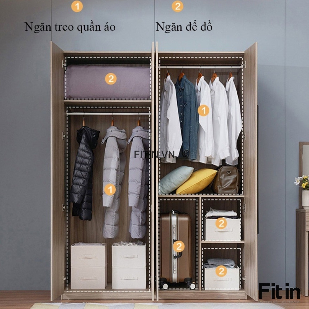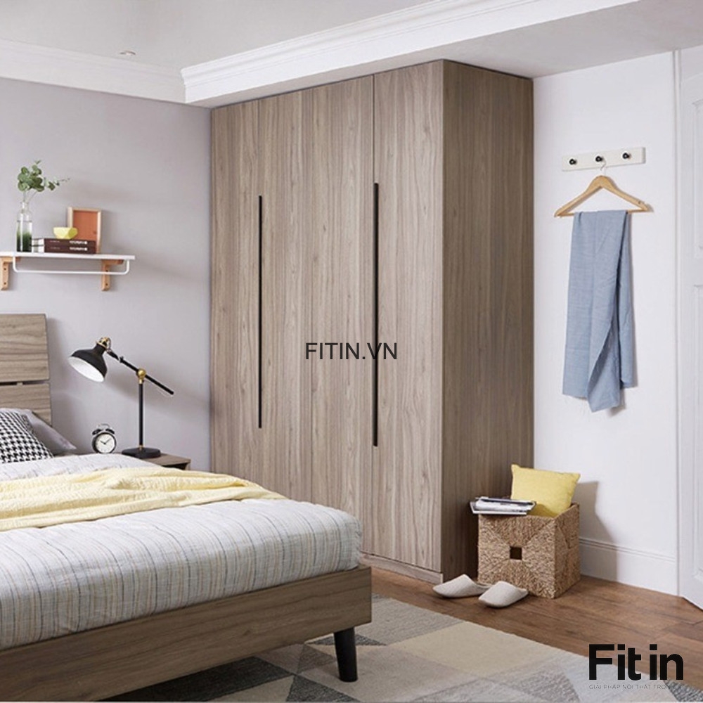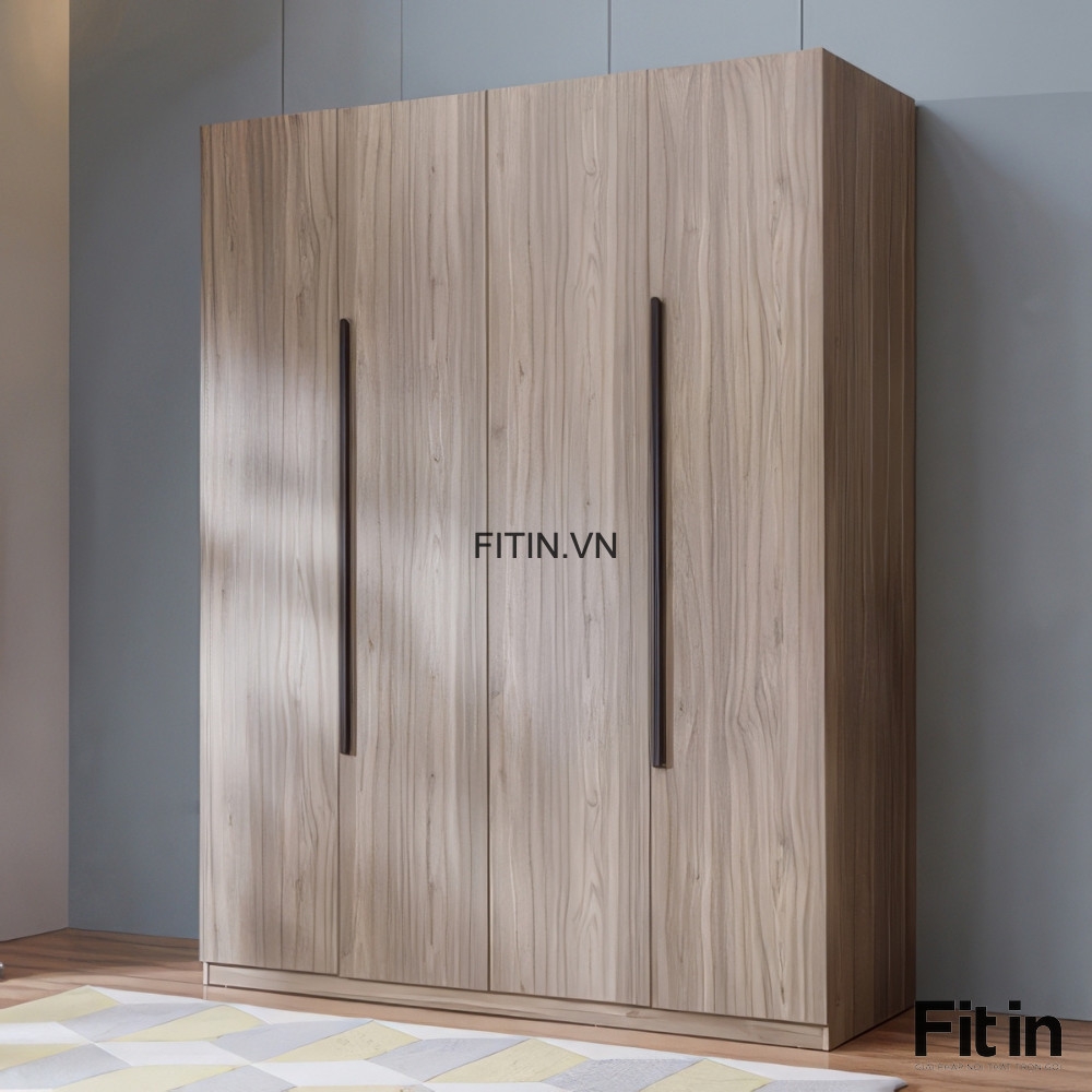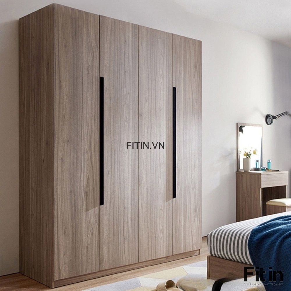 Mẫu Tủ Áo Gỗ Công Nghiệp 4 Cánh Màu Xám Vân Gỗ Hiện Đại