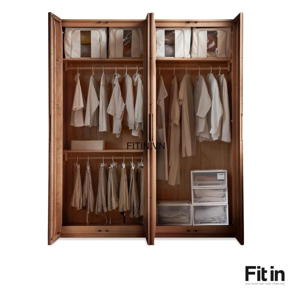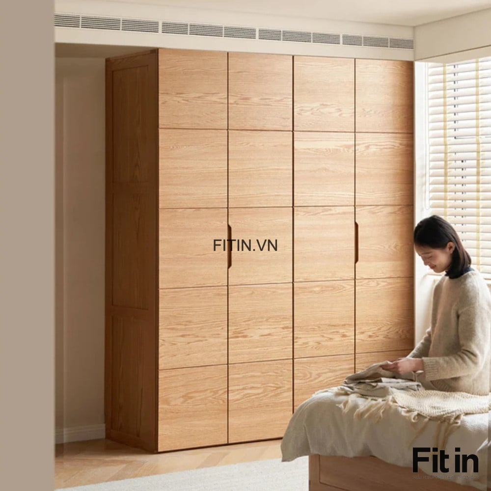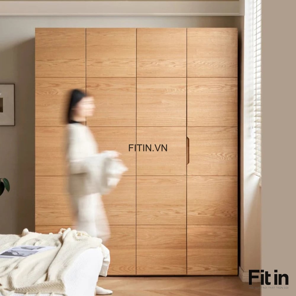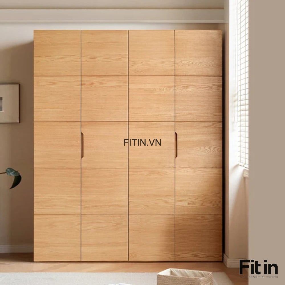 Mẫu Tủ Áo Gỗ Tự Nhiên 4 Cánh Chạy Chỉ Màu Tự Nhiên Đẹp