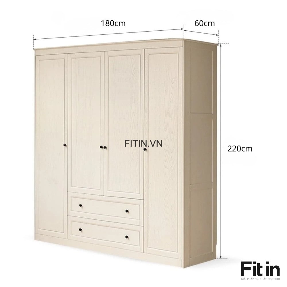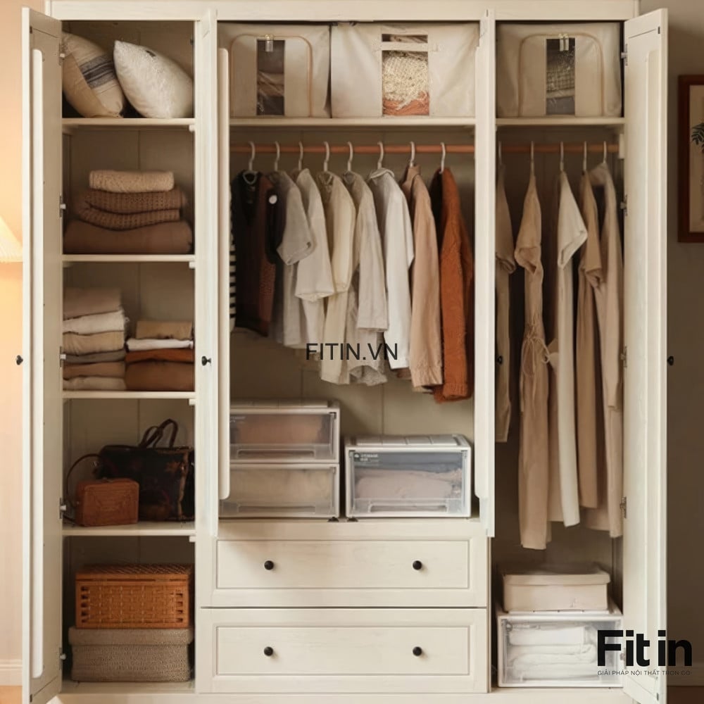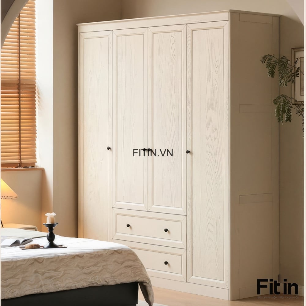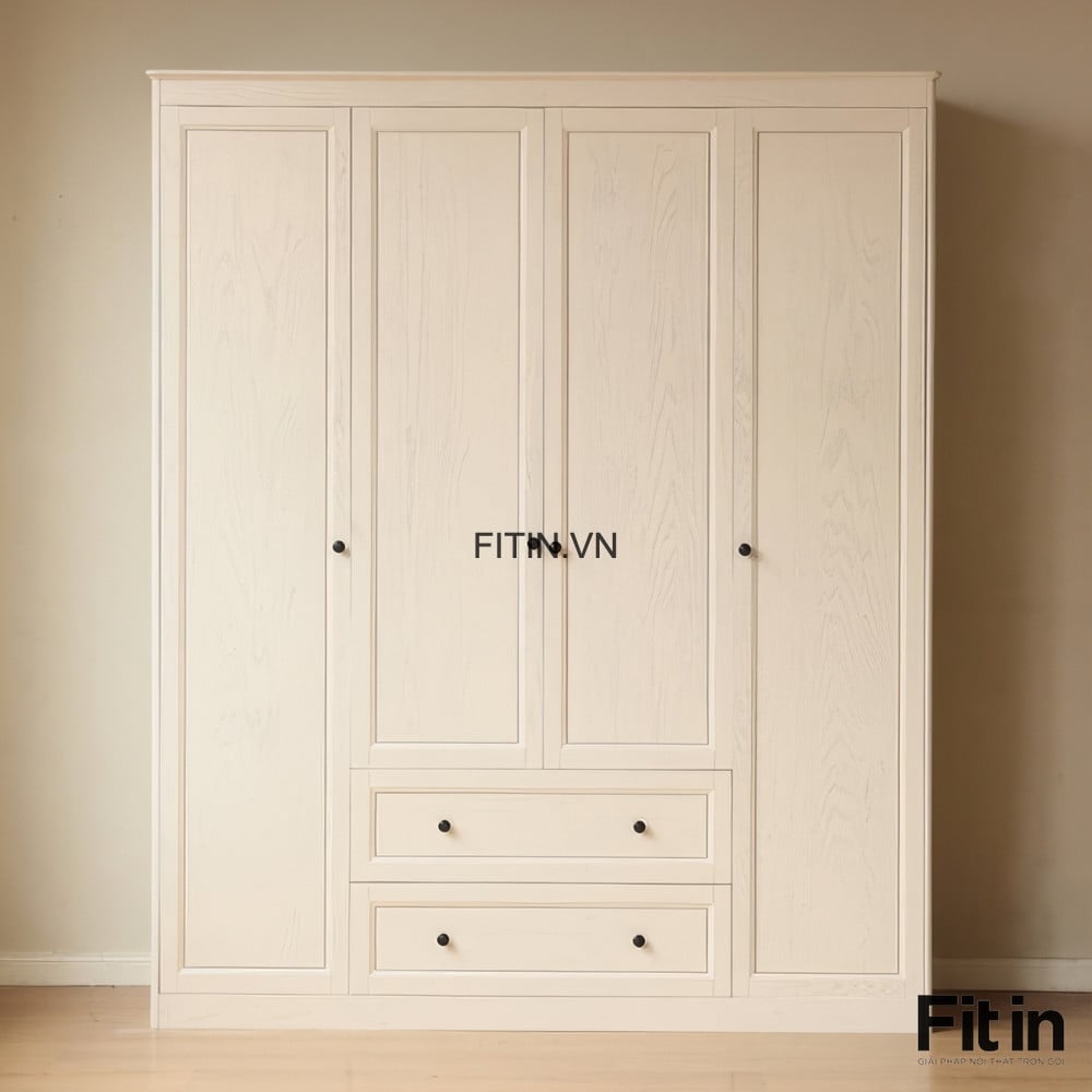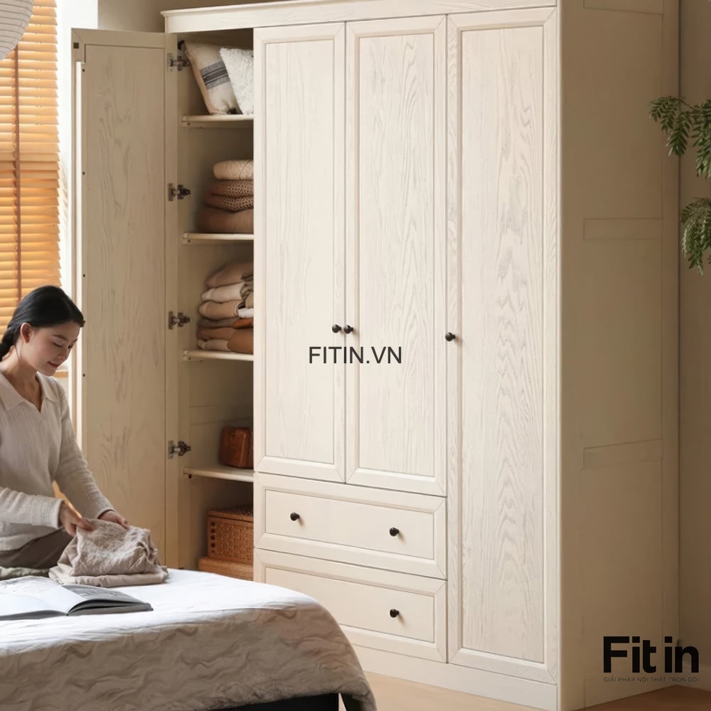 Mẫu Tủ Quần Áo Đẹp Gỗ Sồi Sơn Trắng Phong Cách Sang Trọng