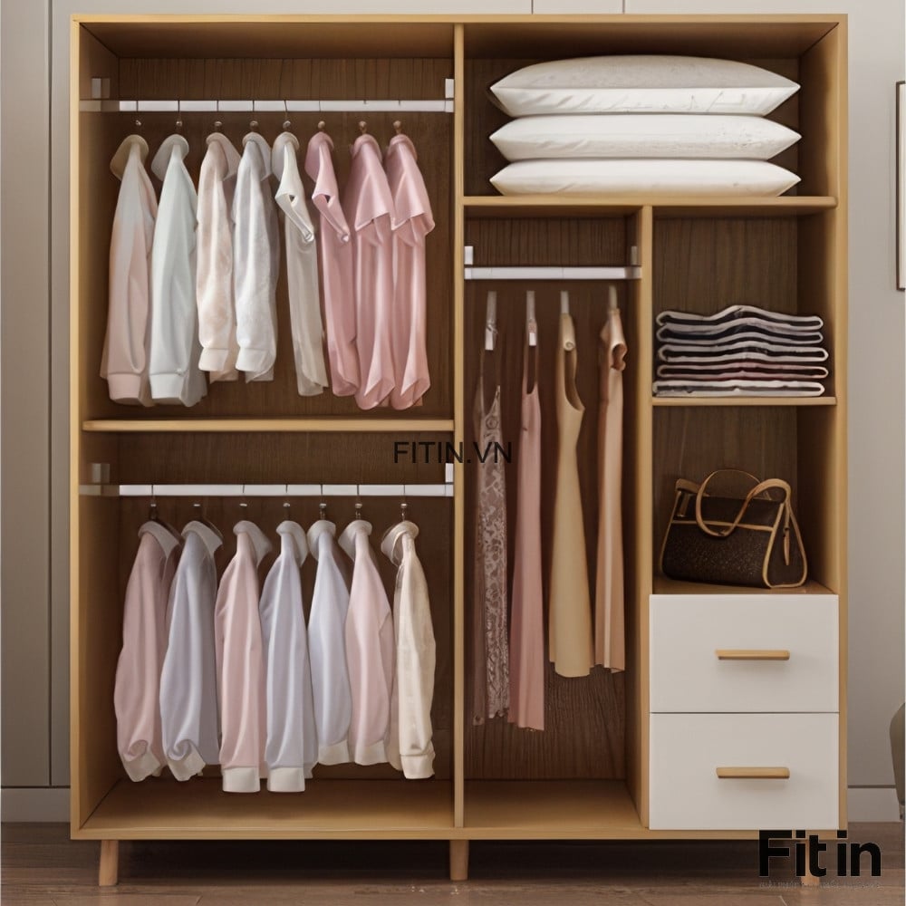 Mẫu Tủ Quần Áo Gỗ Công Nghiệp 4 Cánh Kiểu Chân Cao Đẹp