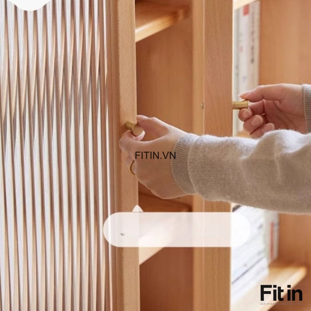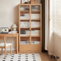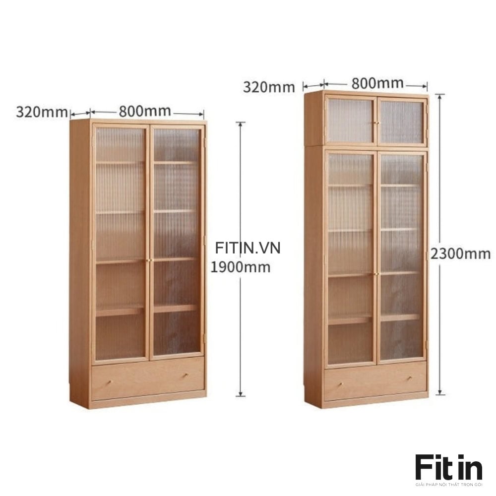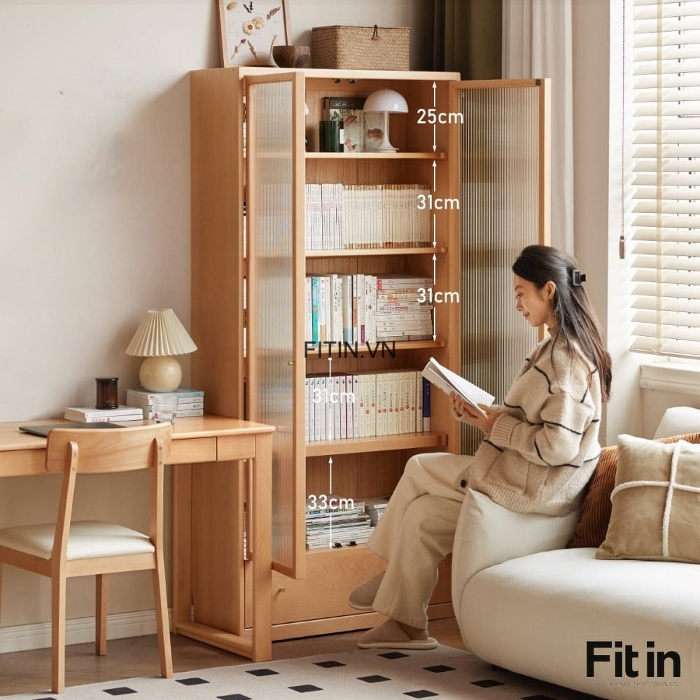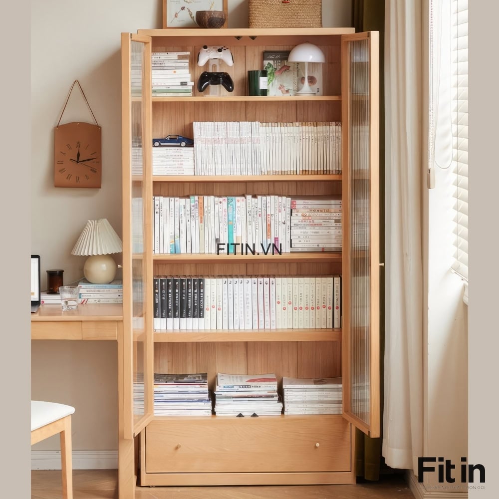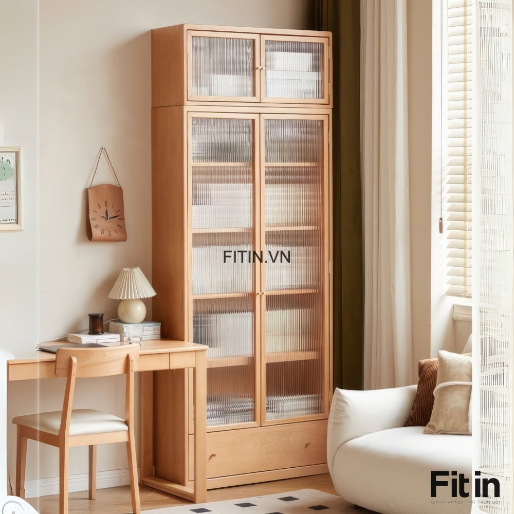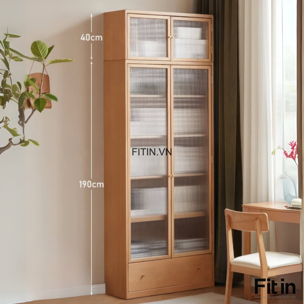 Mẫu Tủ Sách Và Hồ Sơ Gỗ Sồi Tự Nhiên Cánh Kính Sọc Hiện Đại
